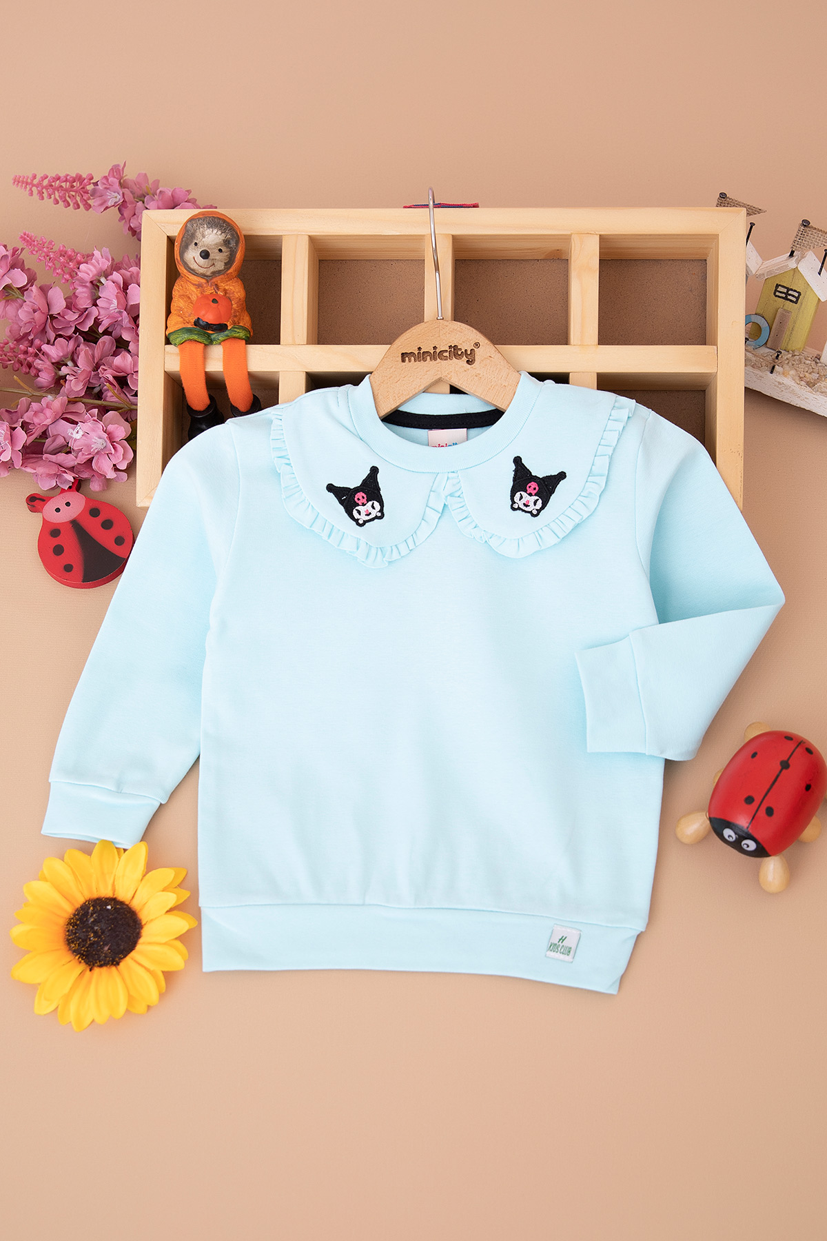 Kız Çocuk Yakası Kromi Nakışlı Sweat (2-10 Yaş)