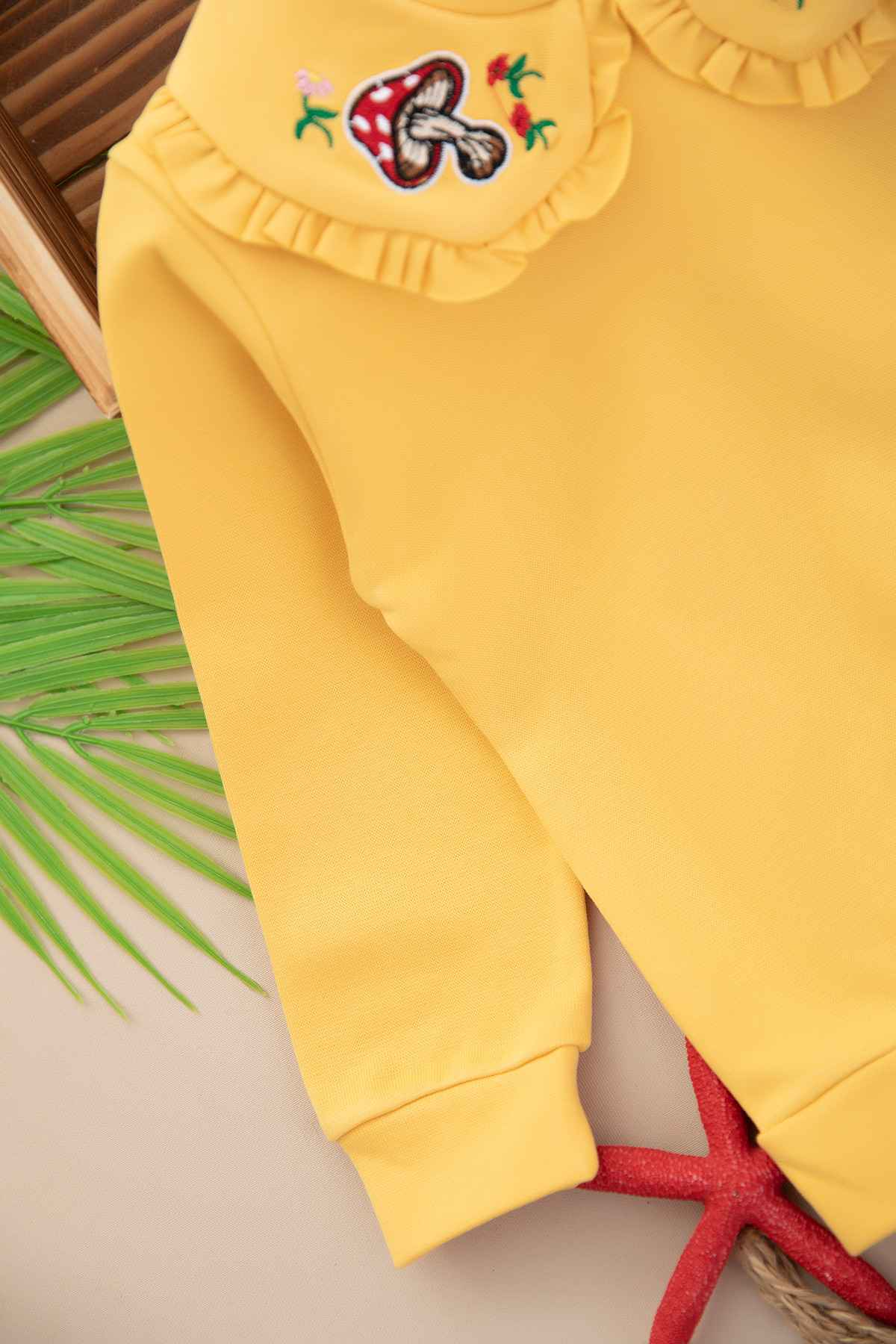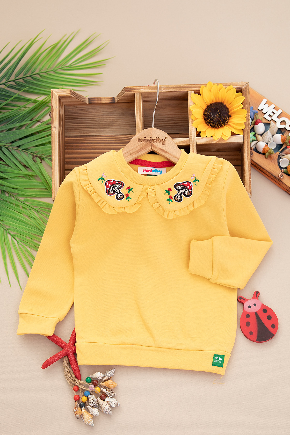 Kız Çocuk Yakası Mantar Nakışlı Sweat (2-10 Yaş)
