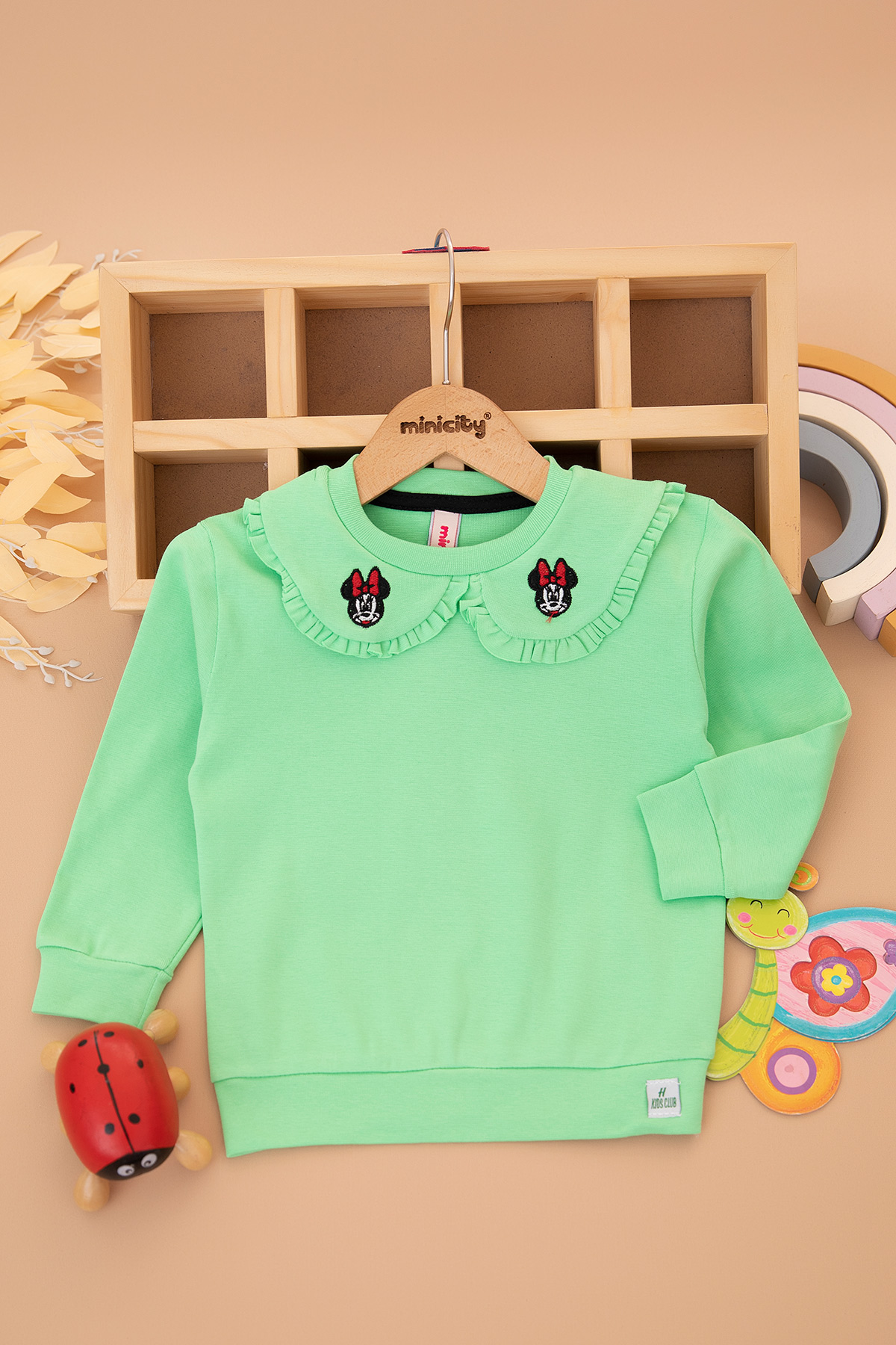 Kız Çocuk Yakası Mickey Nakışlı Sweat (2-10 Yaş)