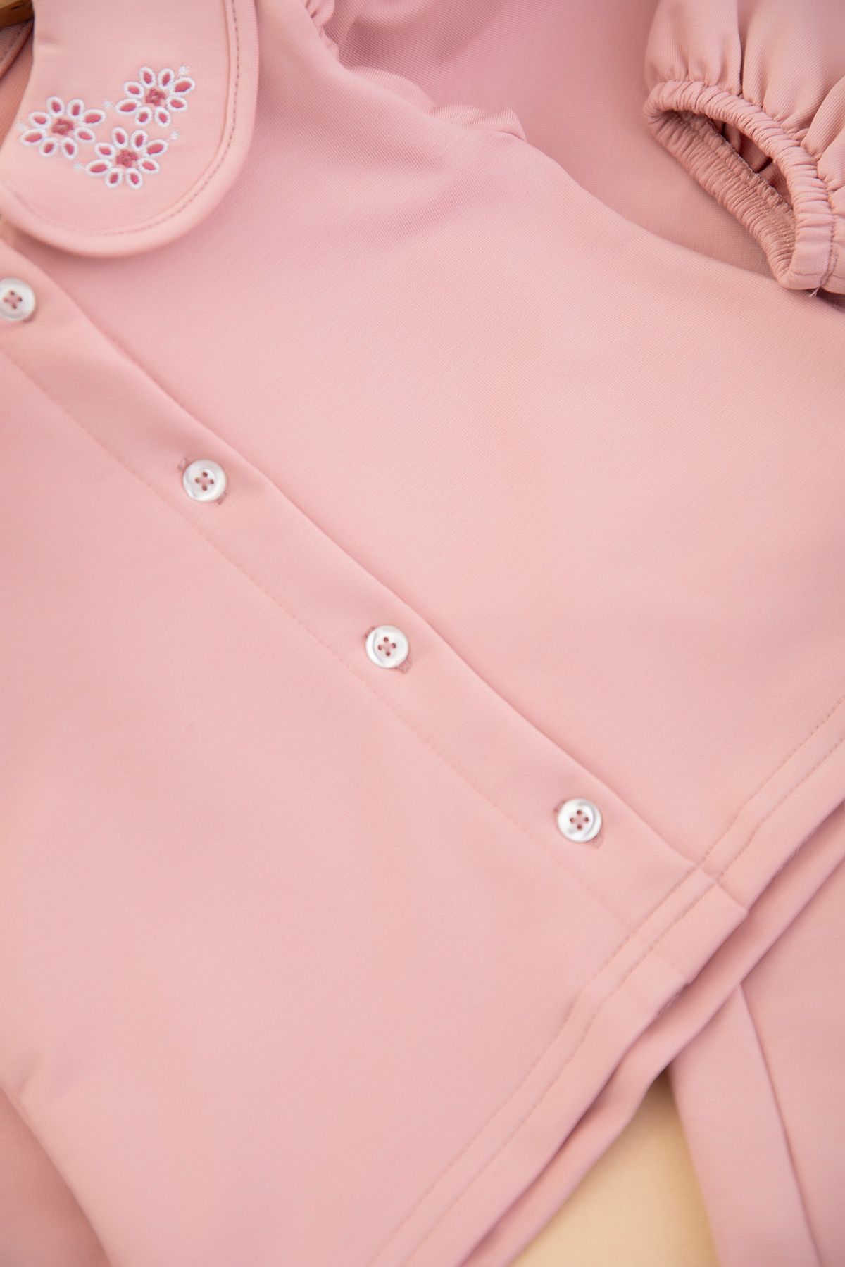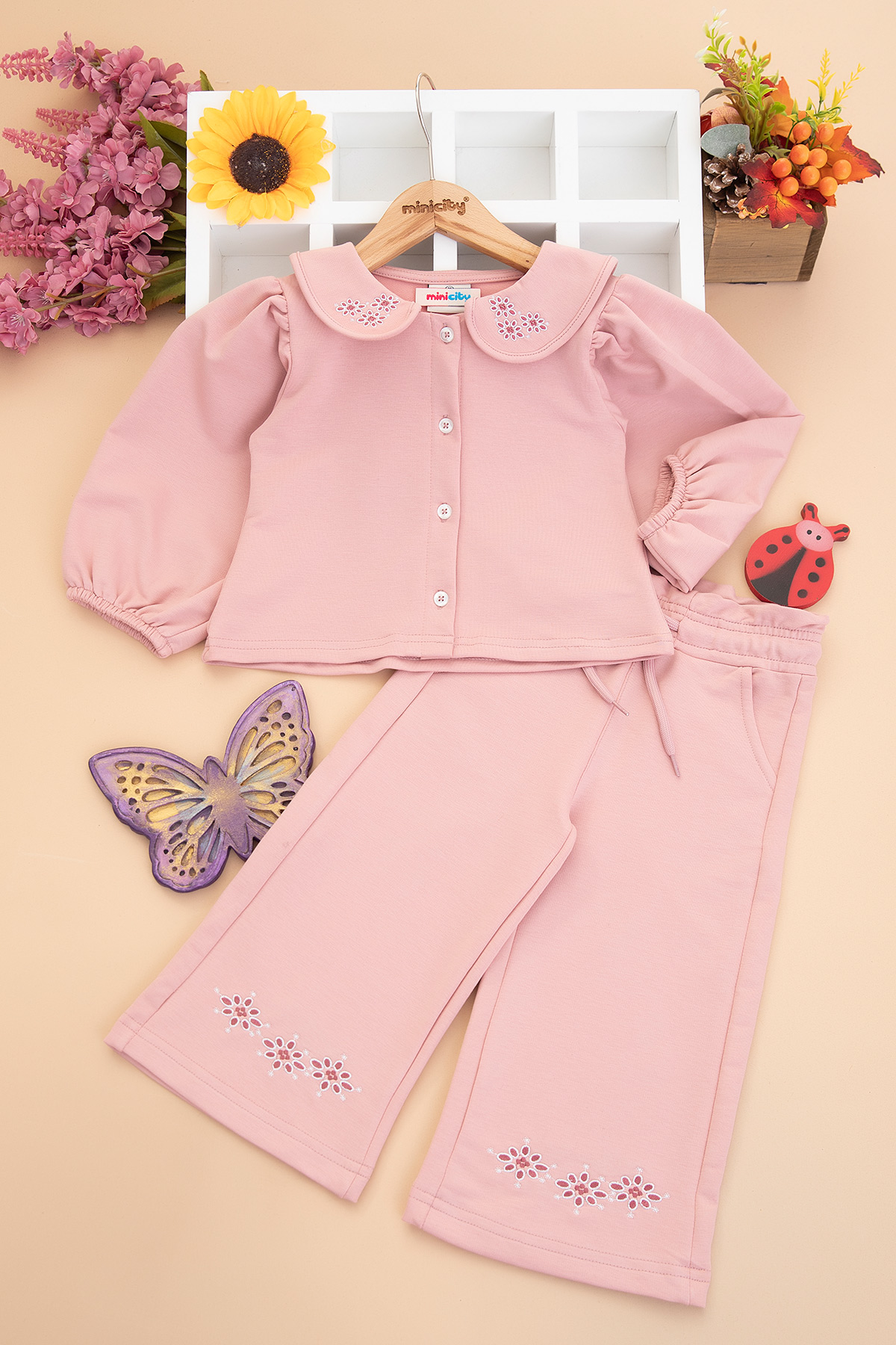 Kız Çocuk Yakası Nakışlı Düğmeli Takım - (2 - 8 Yaş)