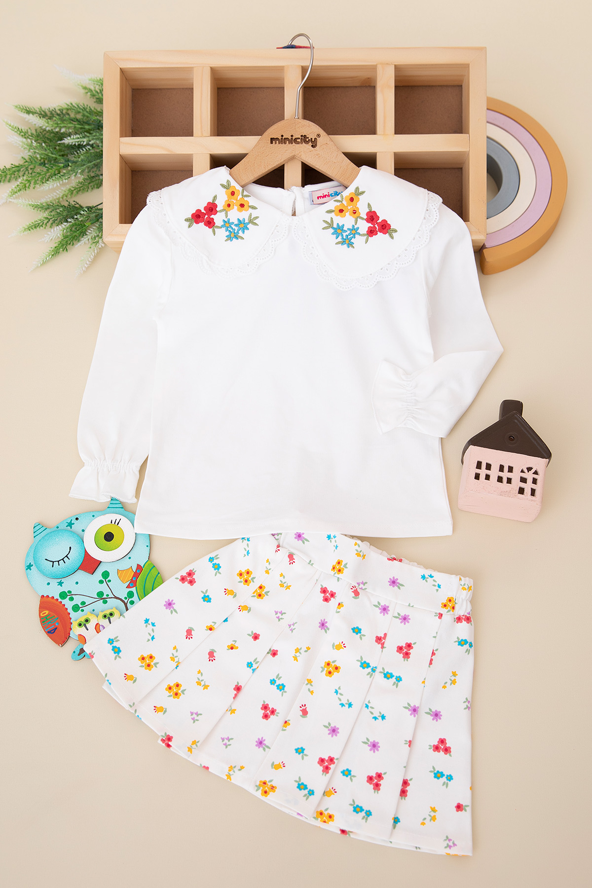 Kız Çocuk Yakası Nakışlı Etekli Takım - (2-8 Yaş)