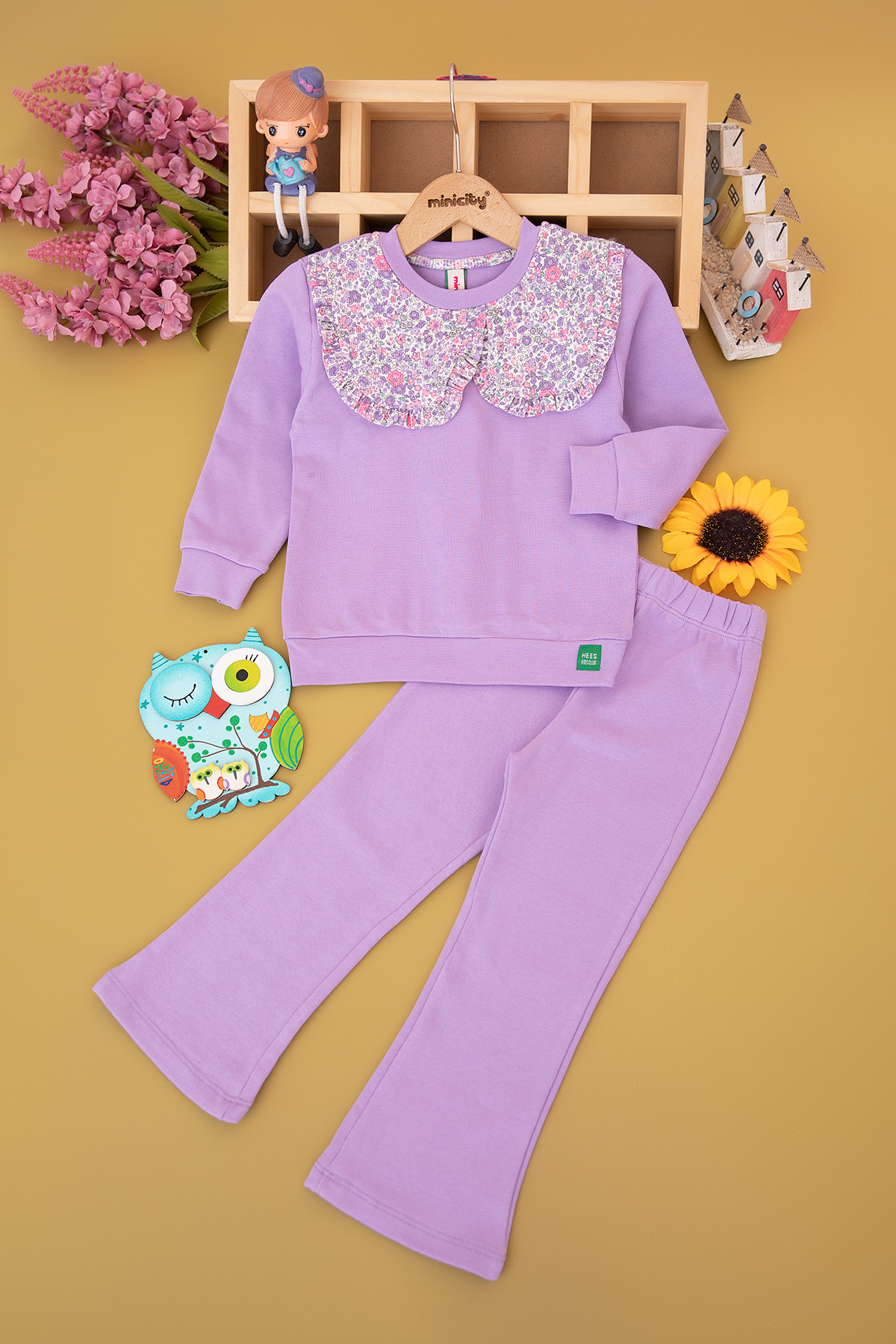 Kız Çocuk Yakası Nakışlı Fiyonklu Takım (2-7 Yaş)
