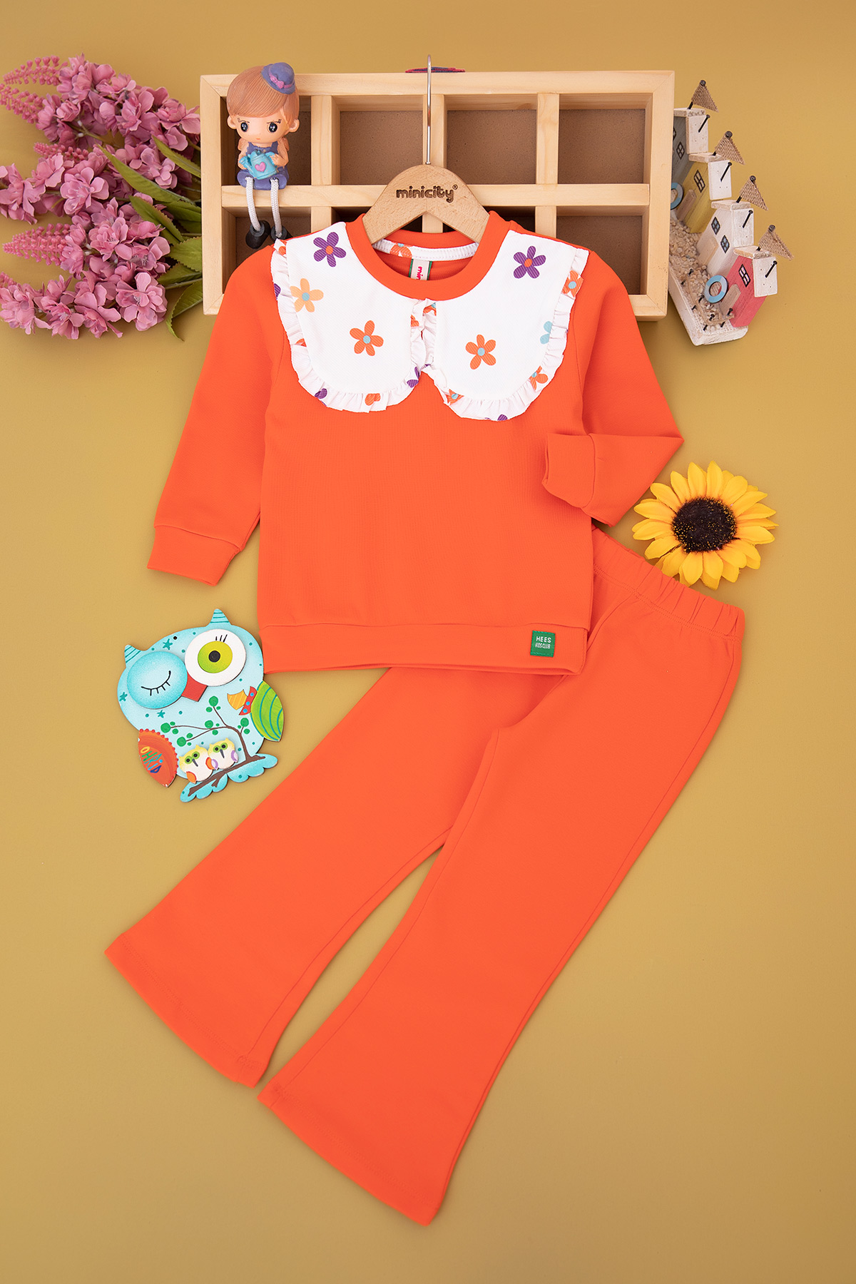 Kız Çocuk Yakası Nakışlı Fiyonklu Takım (2-7 Yaş)