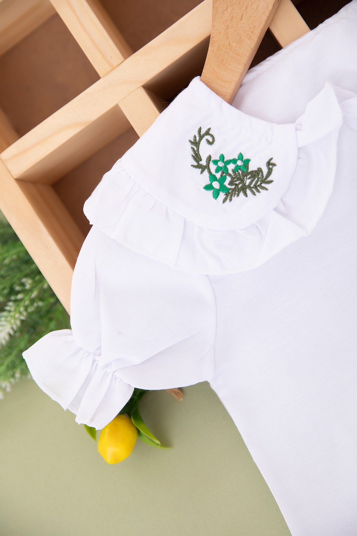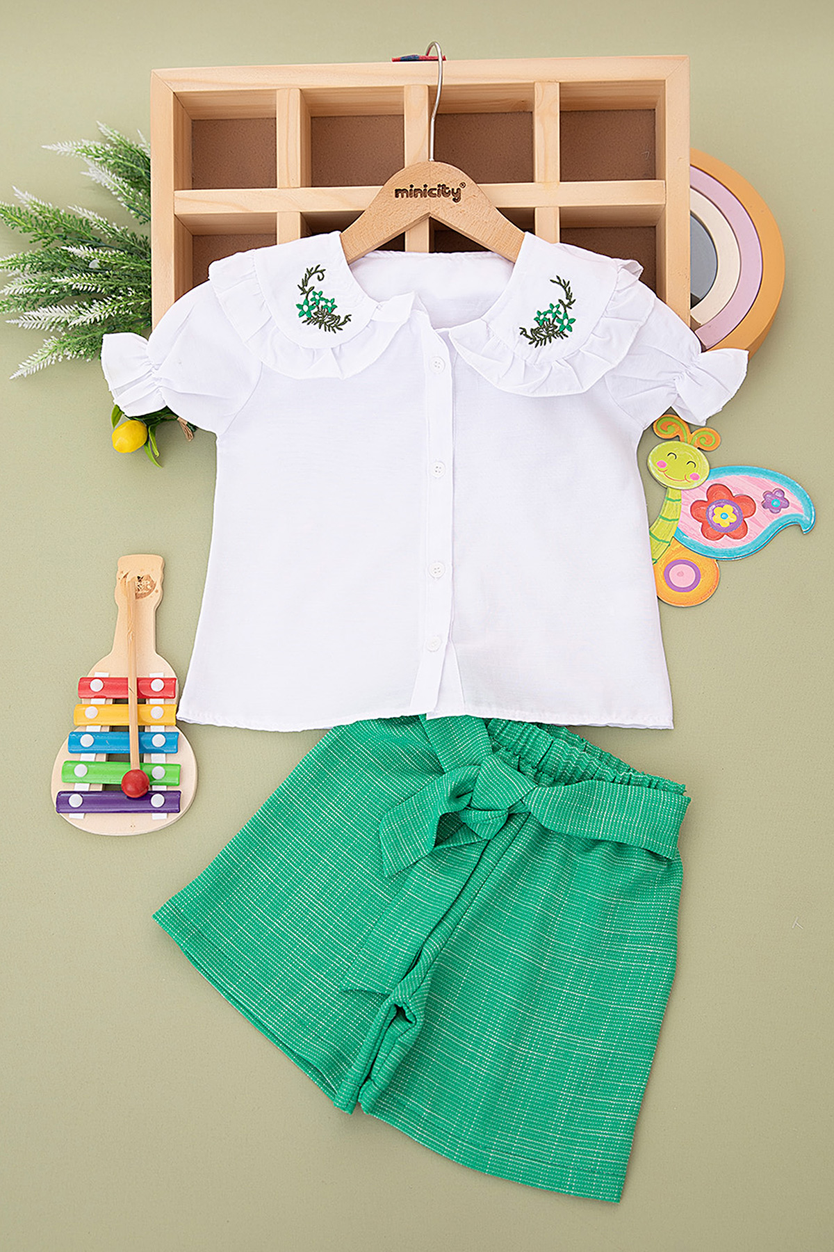 Kız Çocuk Yakası Nakışlı Gömlek Şort Takım (3-10 Yaş)