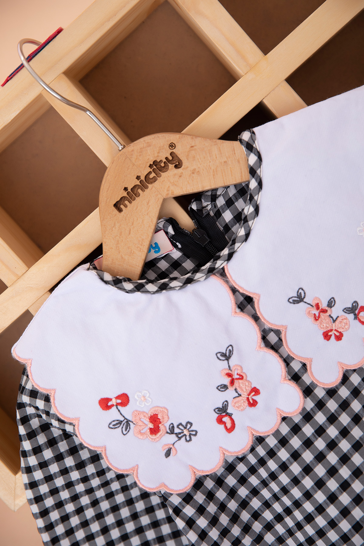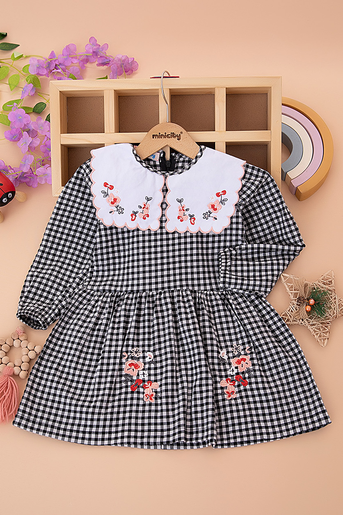 Kız Çocuk Yakası Nakışlı Kareli Elbise - 103 (2-8 Yaş)