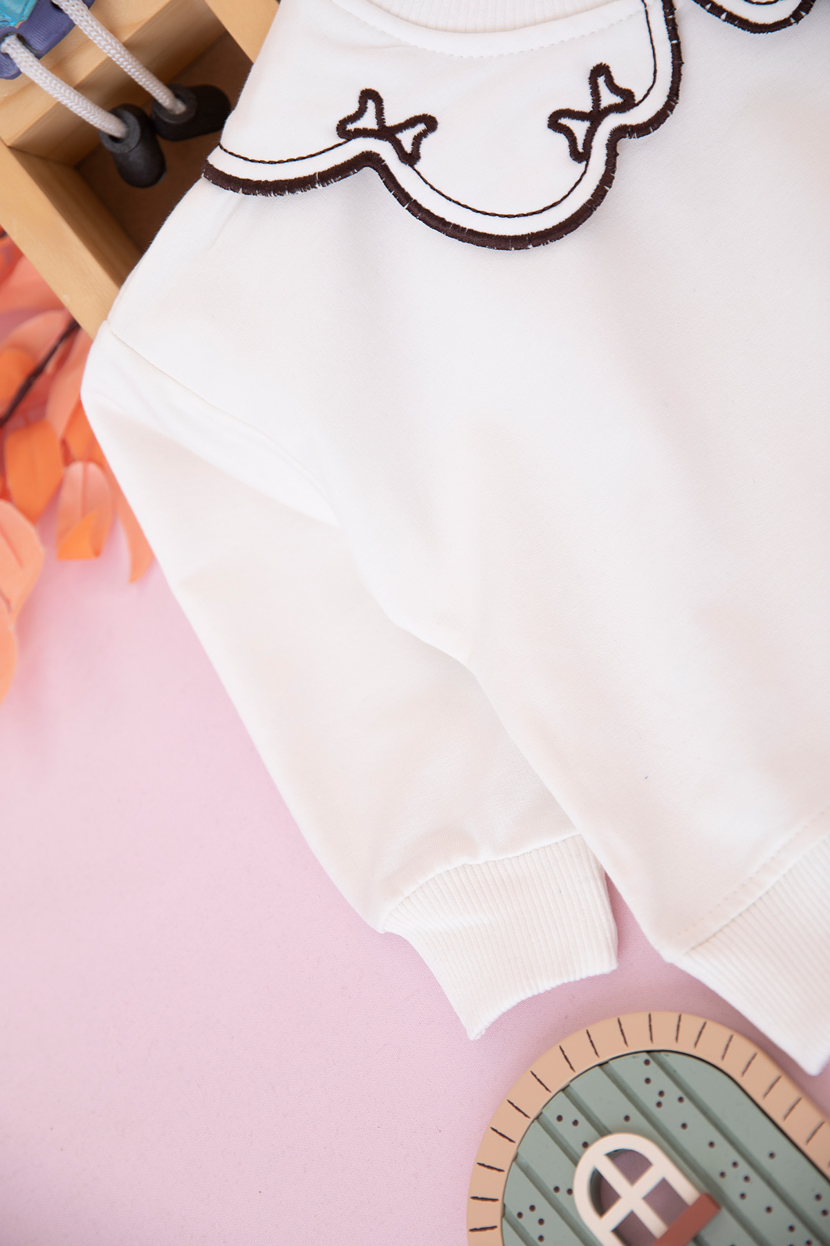 Kız Çocuk Yakası Nakışlı Kot Pantolon Takım - 2685 (3-7 Yaş)
