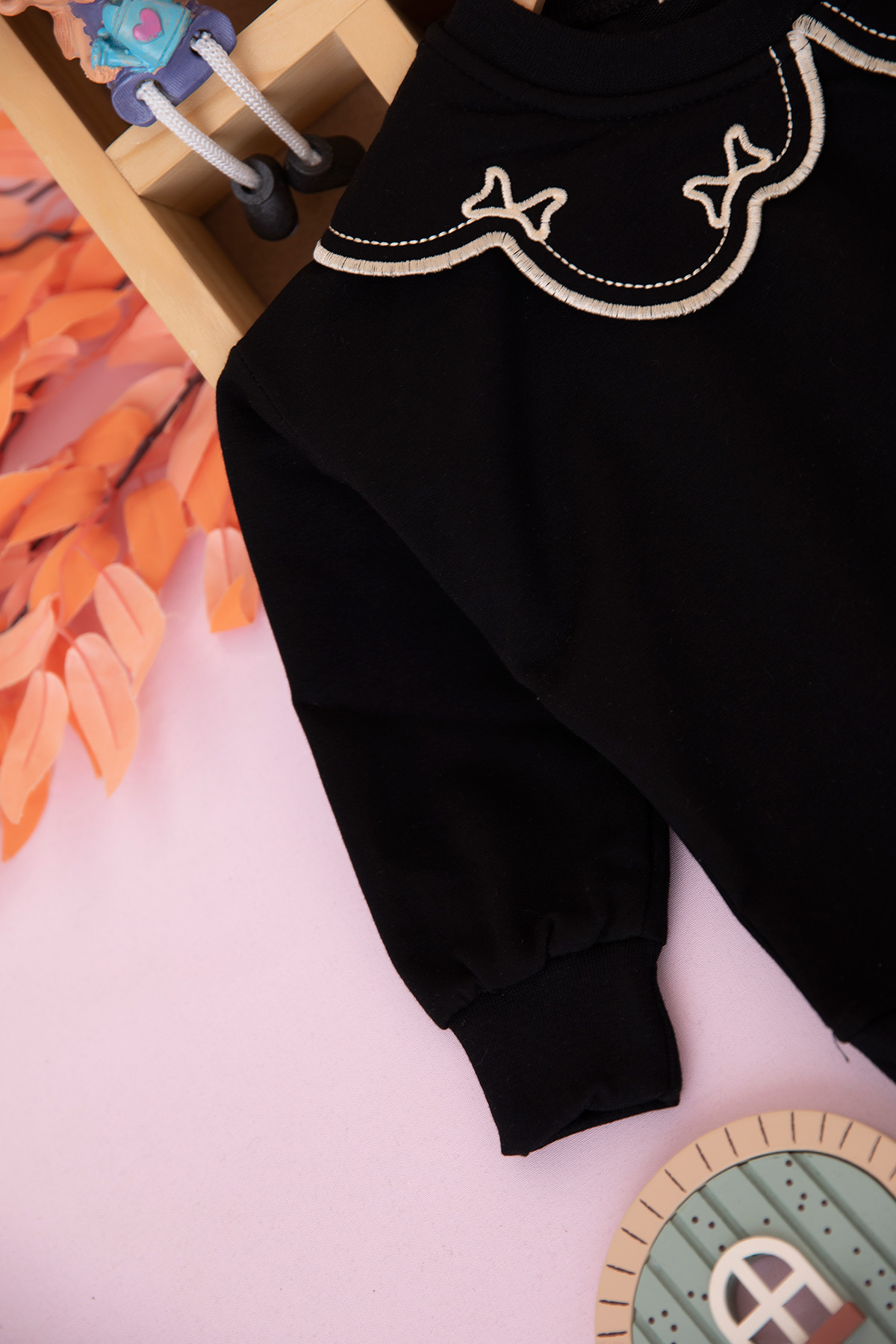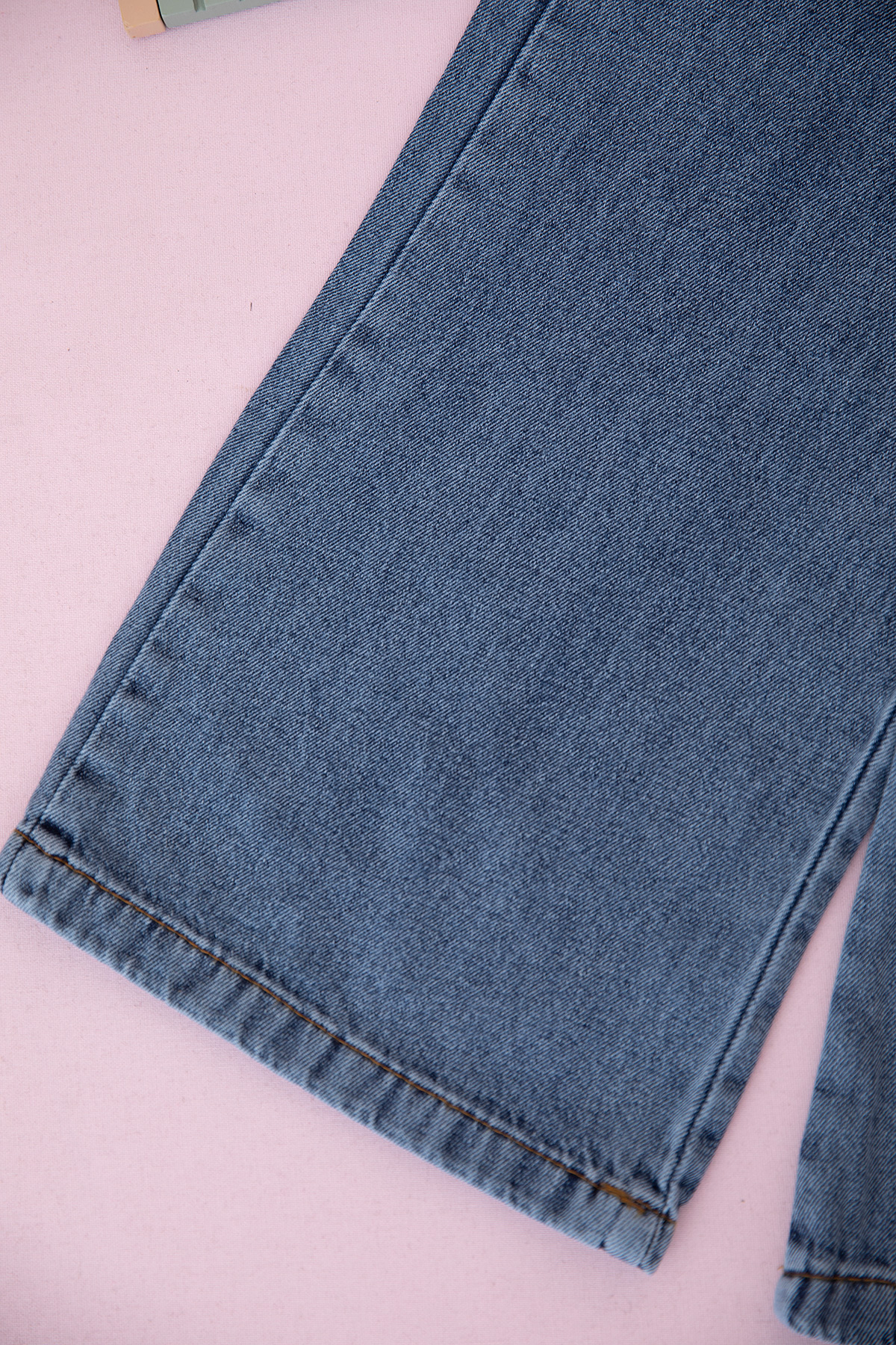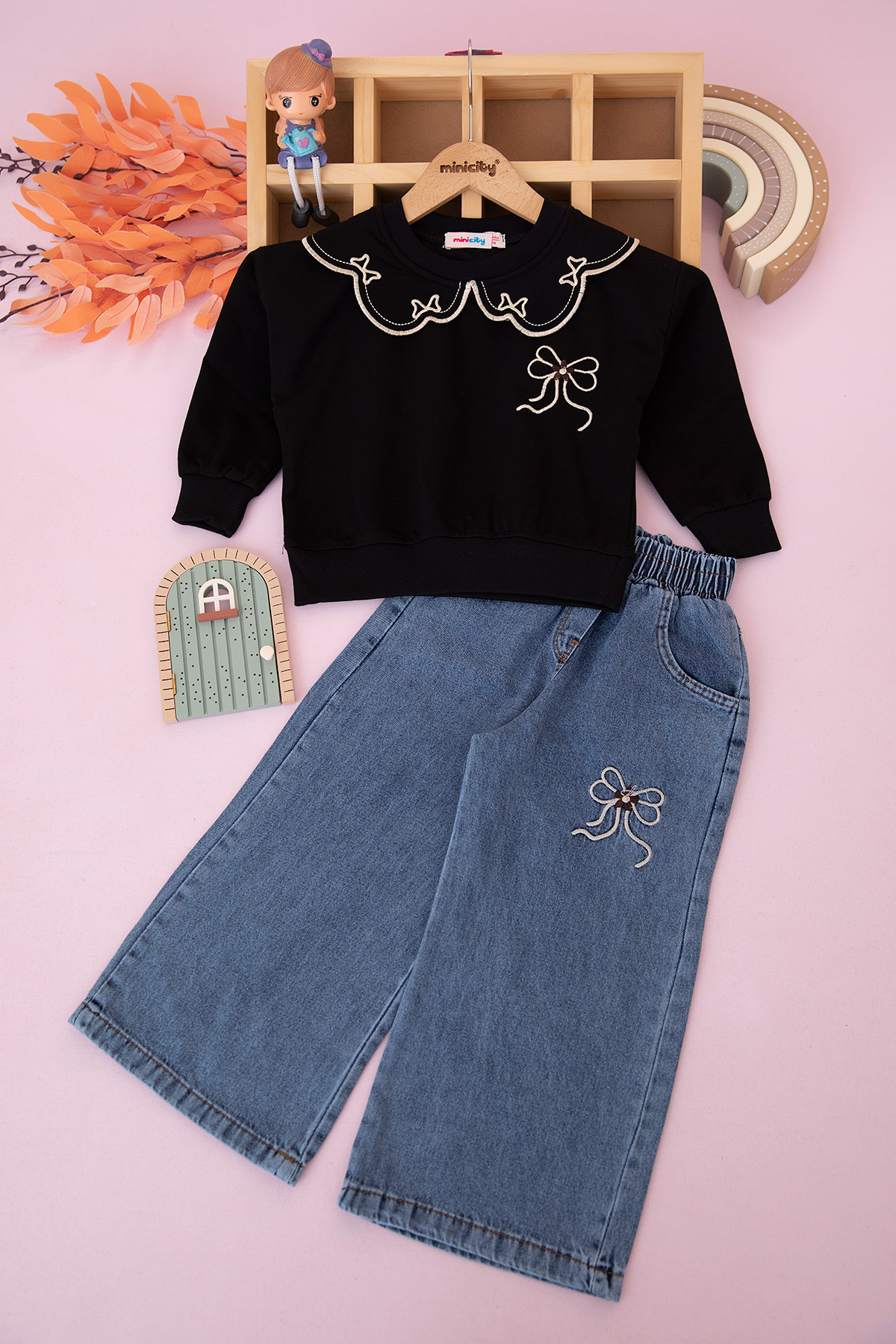 Kız Çocuk Yakası Nakışlı Kot Pantolon Takım - 2685 (3-7 Yaş)