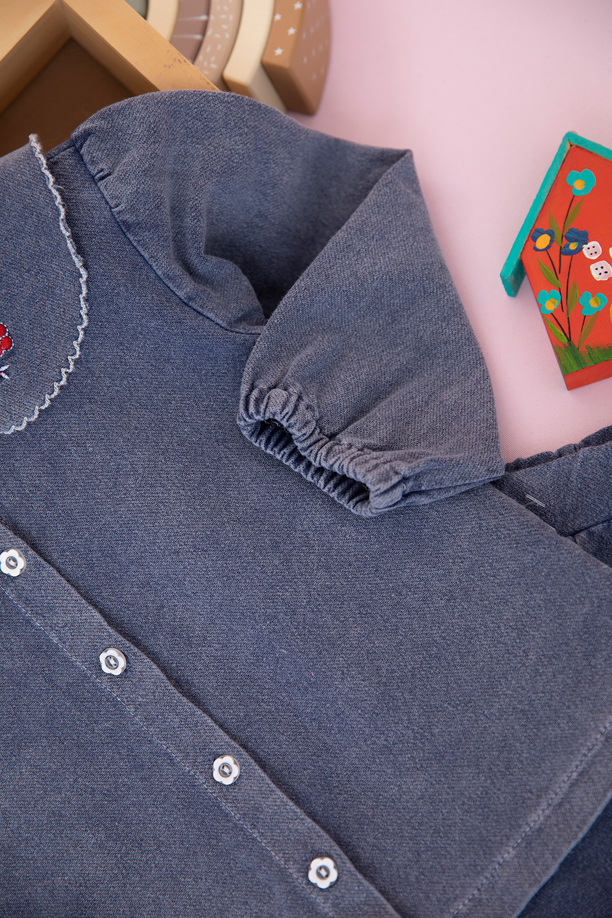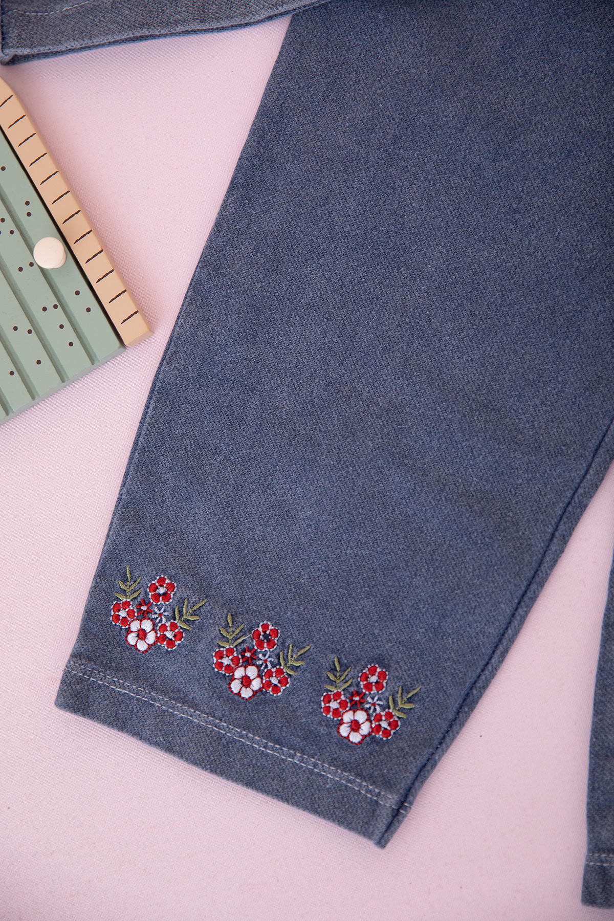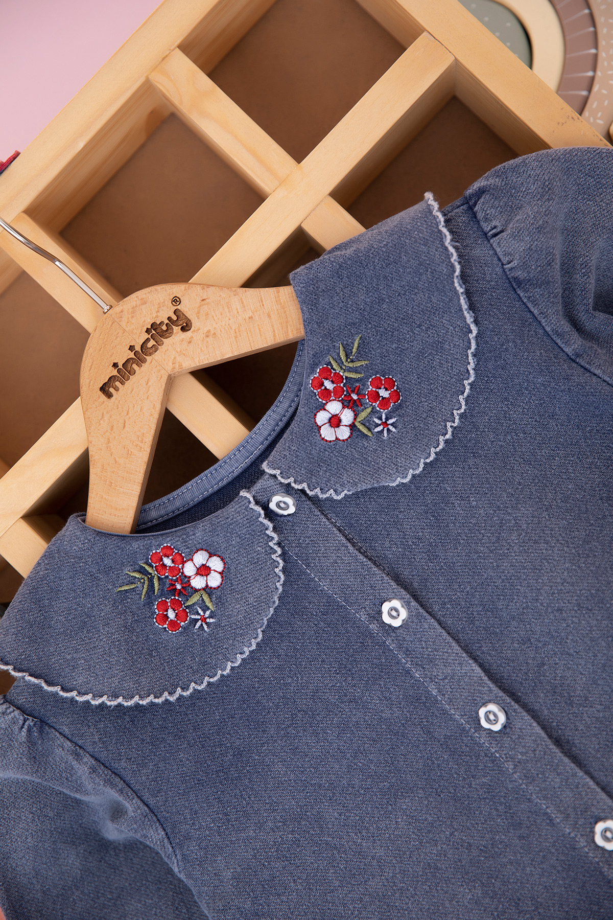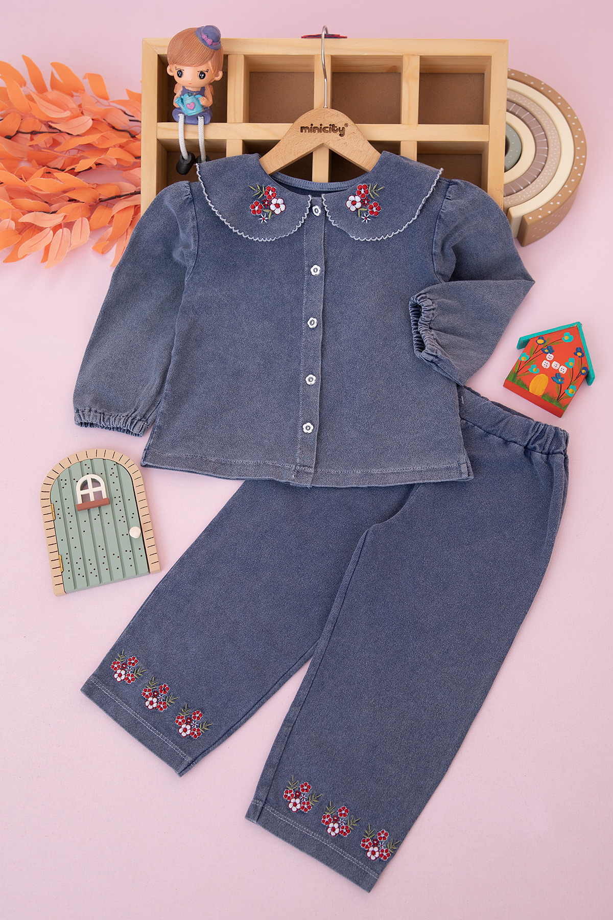 Kız Çocuk Yakası Nakışlı Kot Takım - 3000 (2-5 Yaş)