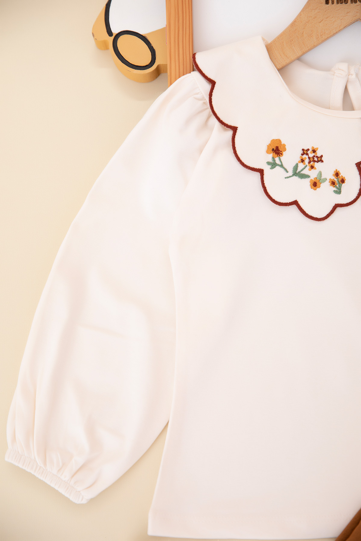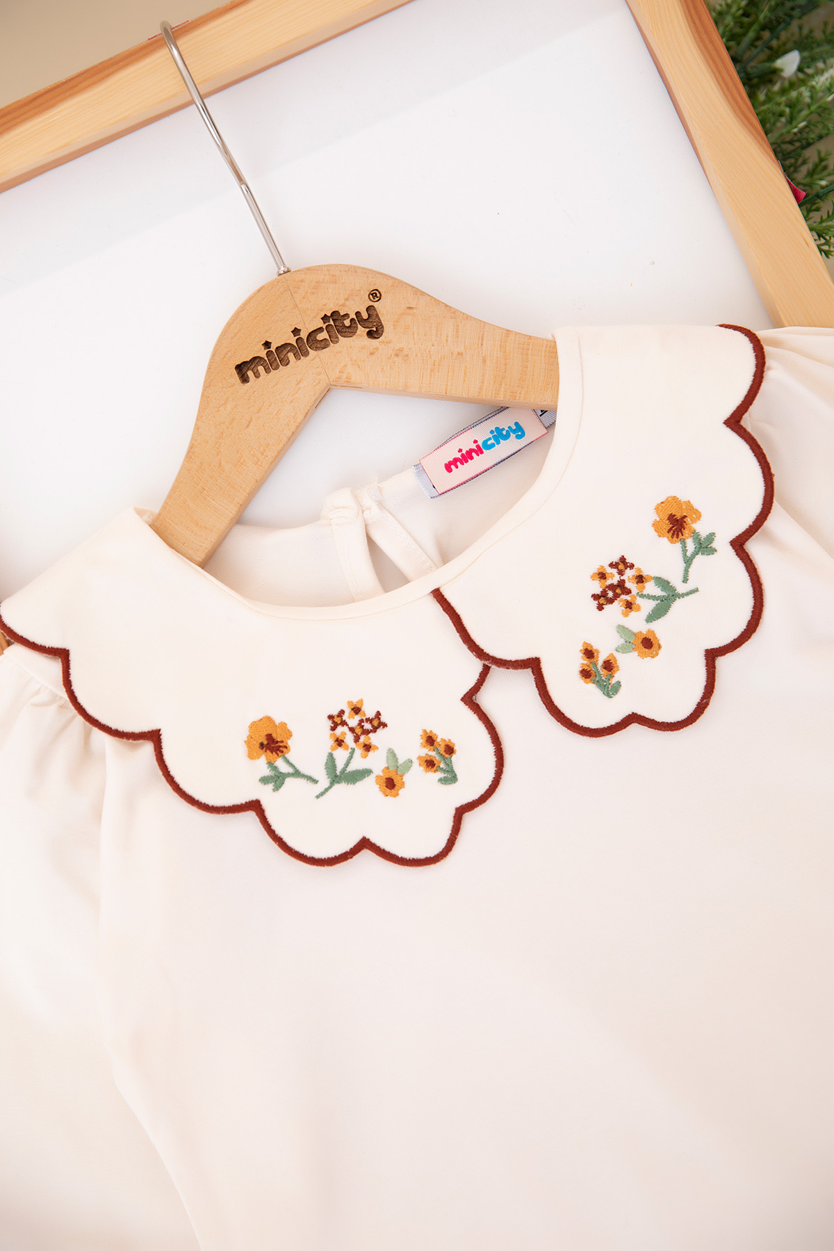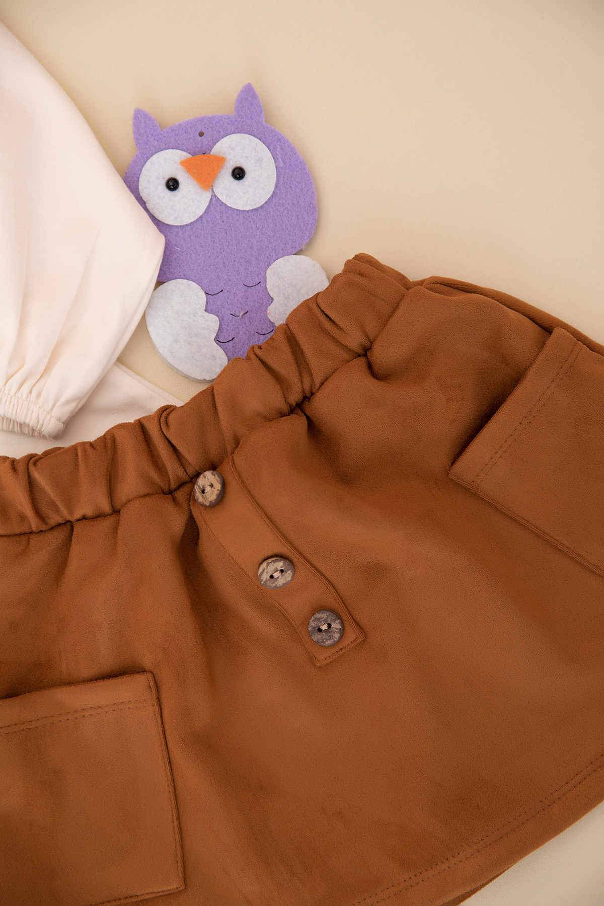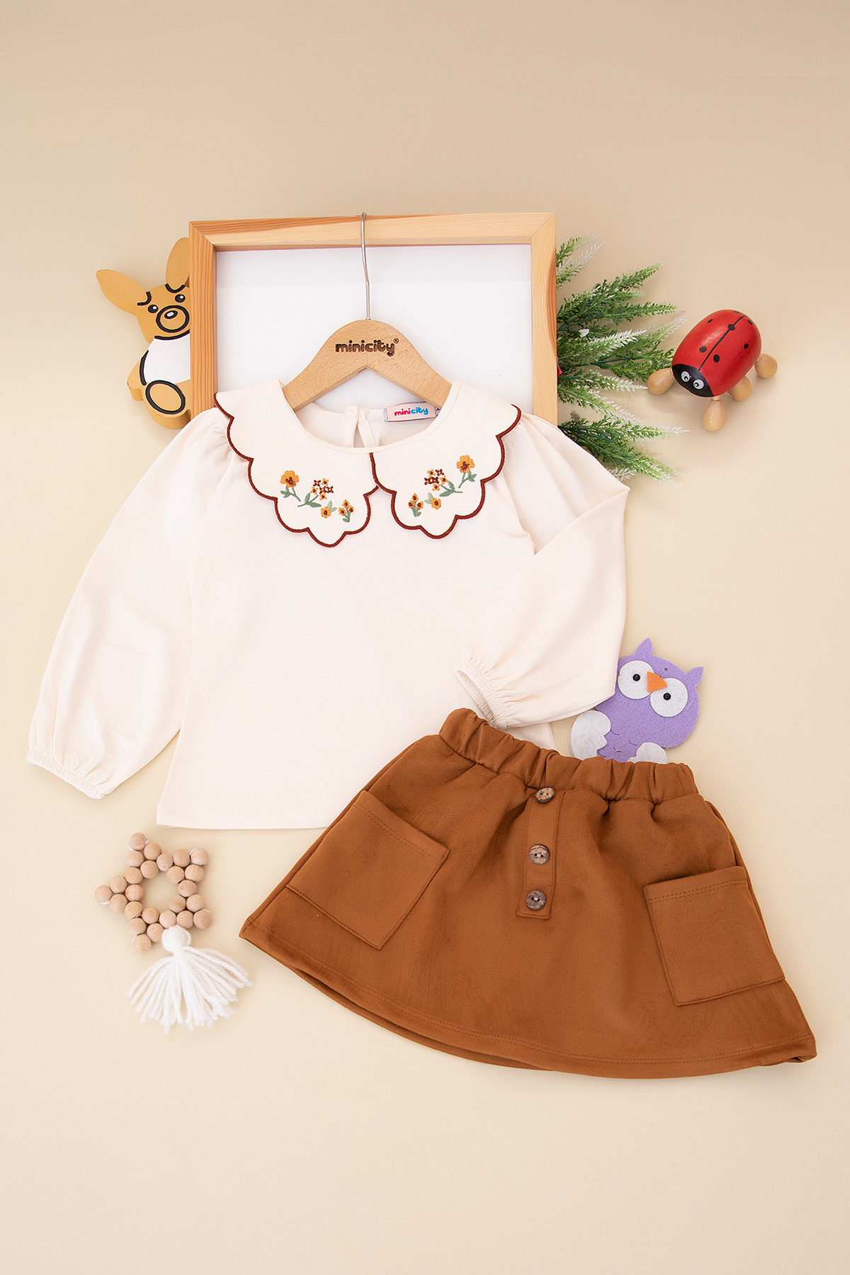 Kız Çocuk Yakası Nakışlı Süet Etekli Takım - J-383 (2-8 Yaş)
