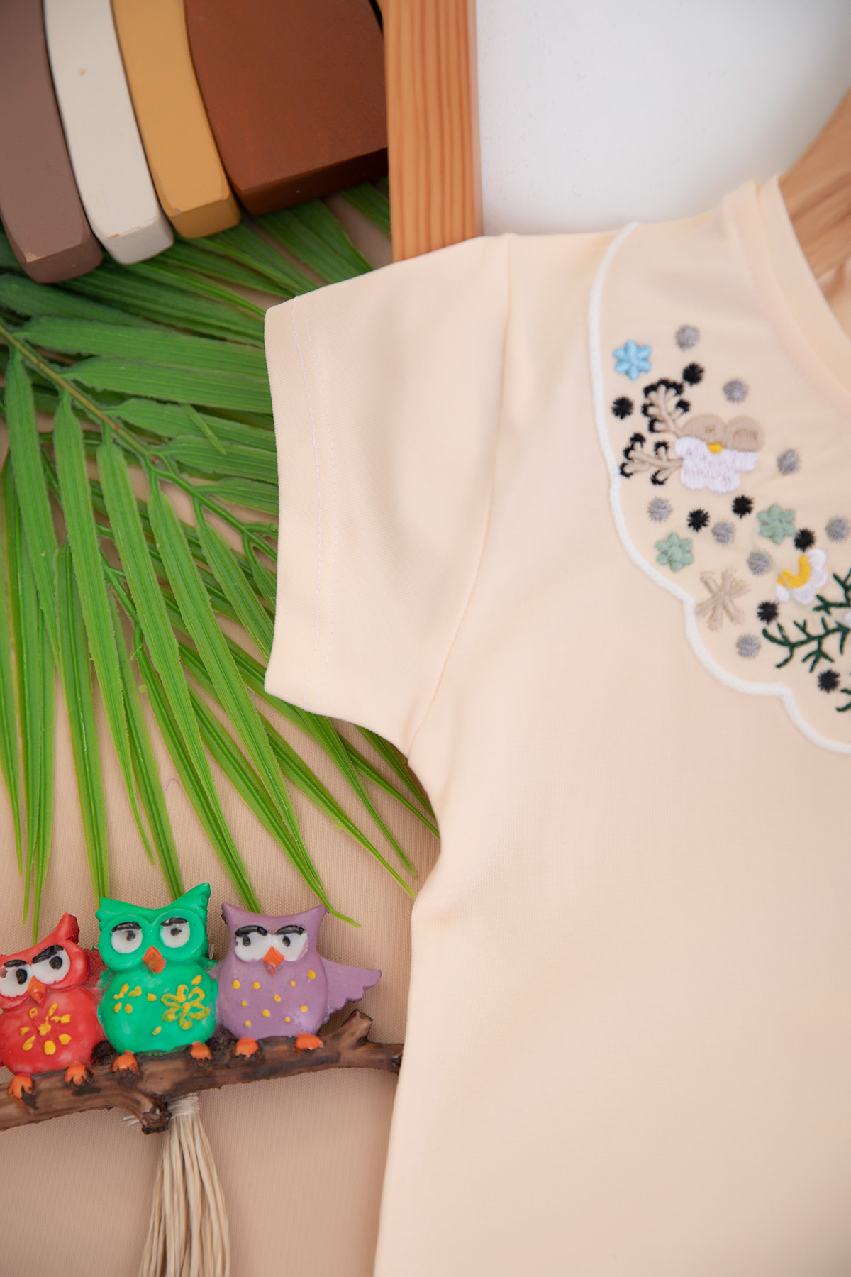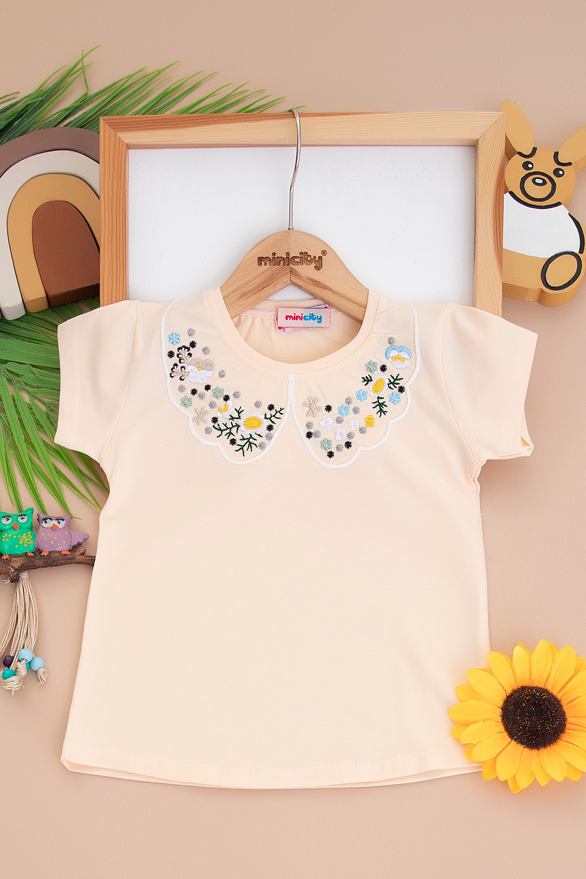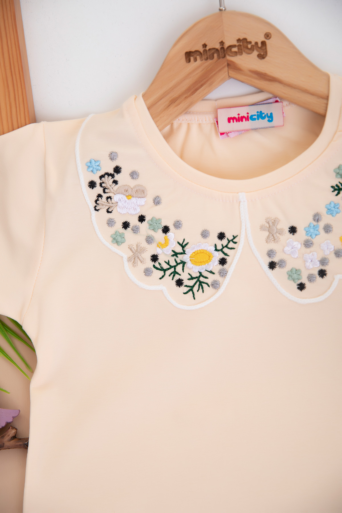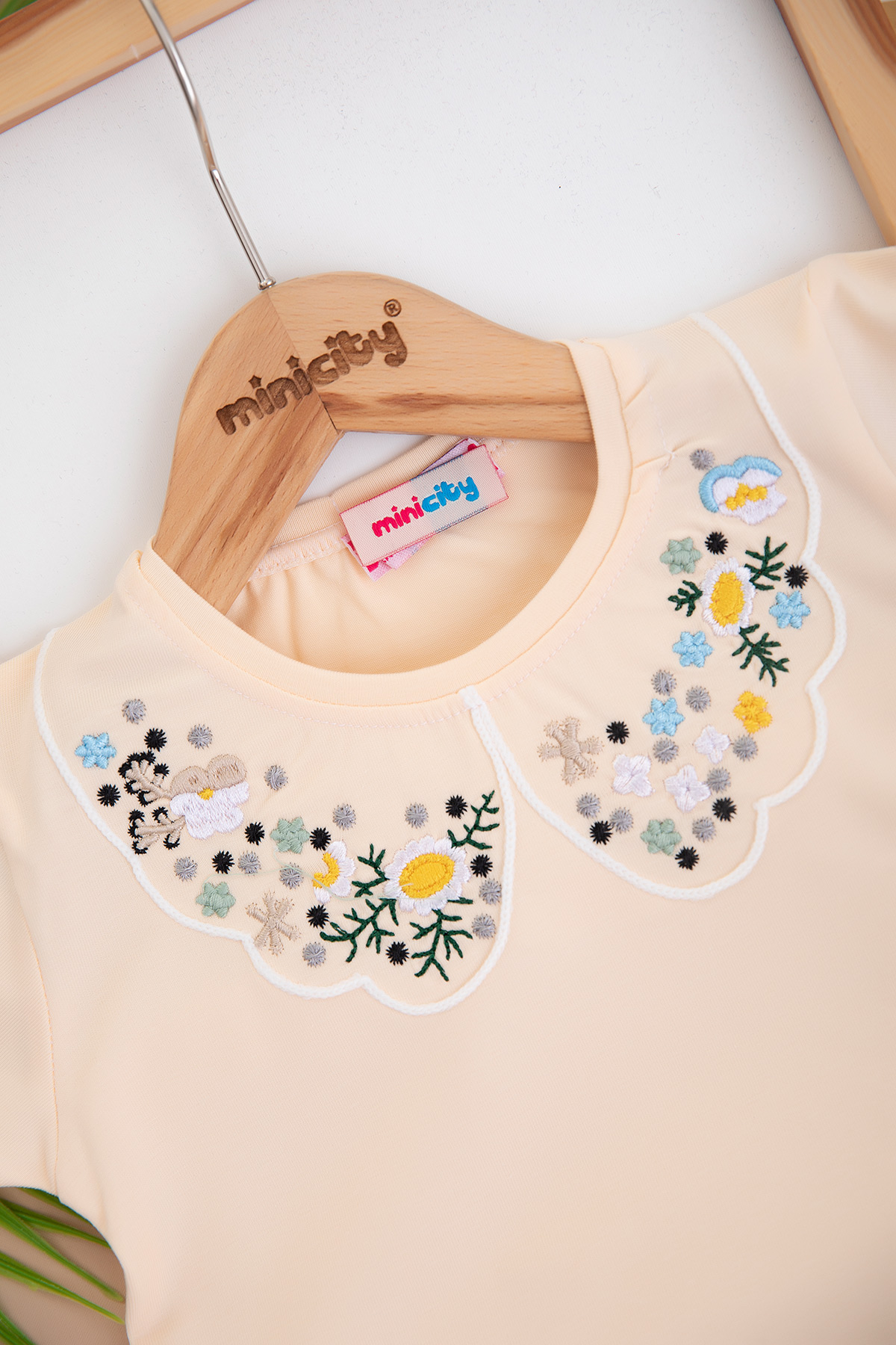 Kız Çocuk Yakası Nakışlı Yarım Kol Badi (3-12 Yaş)