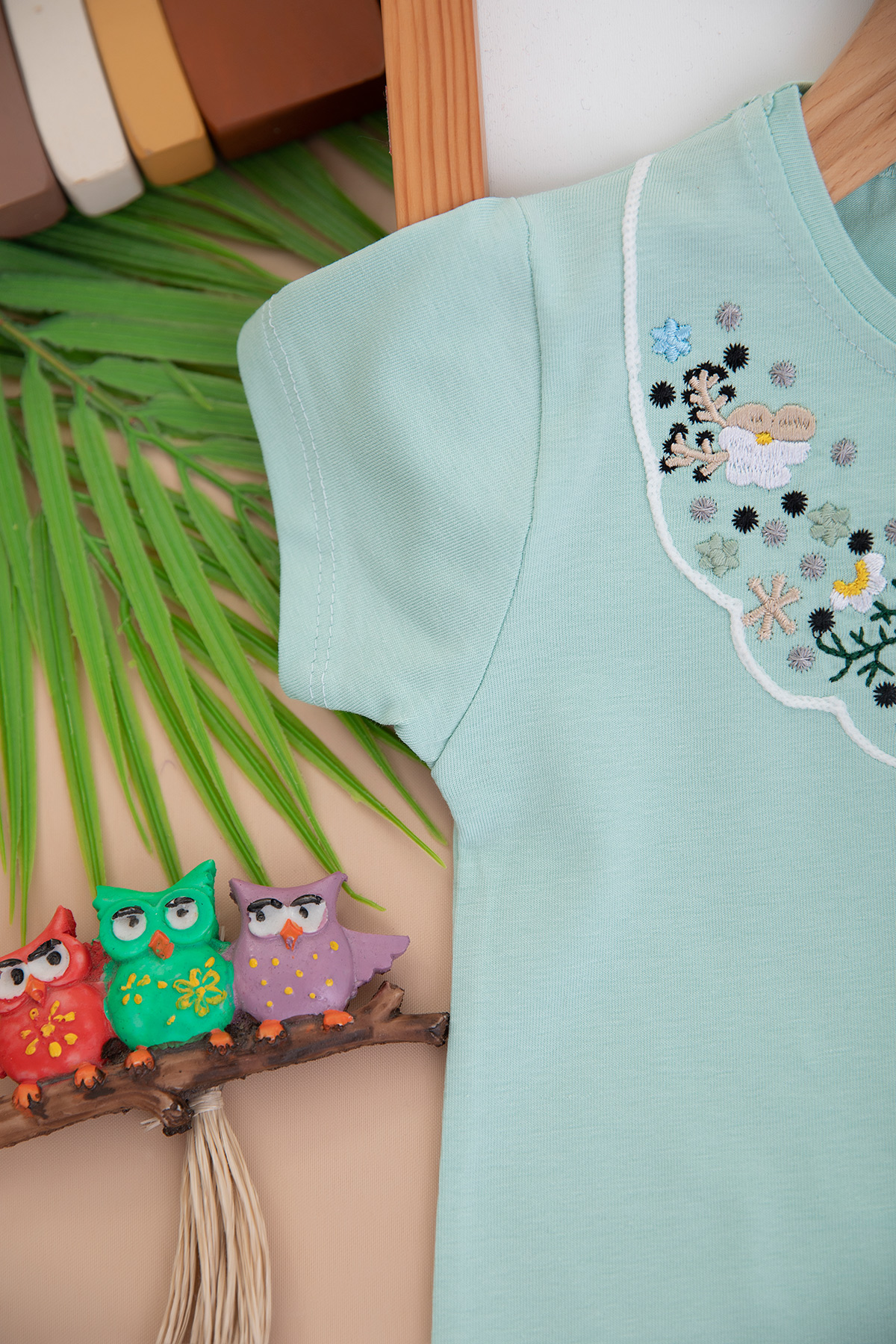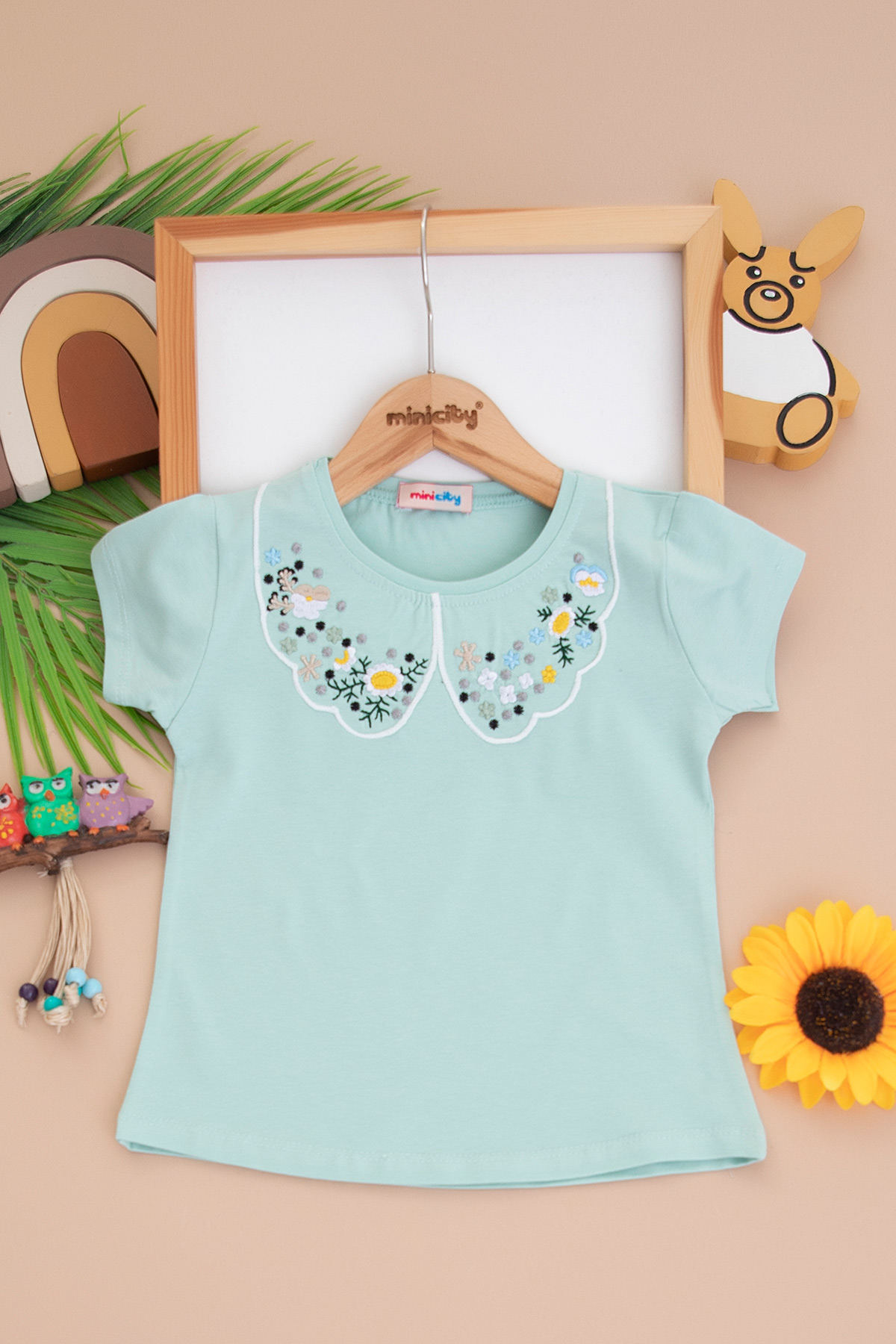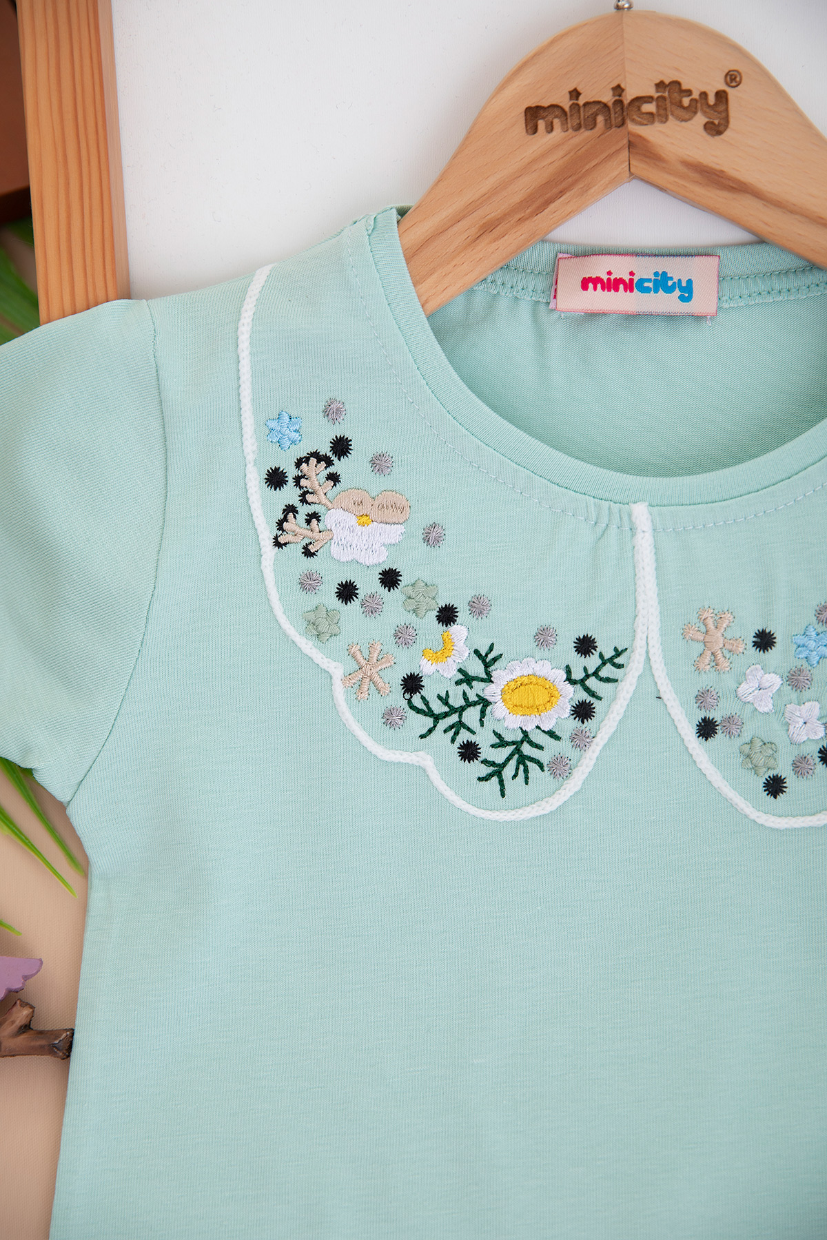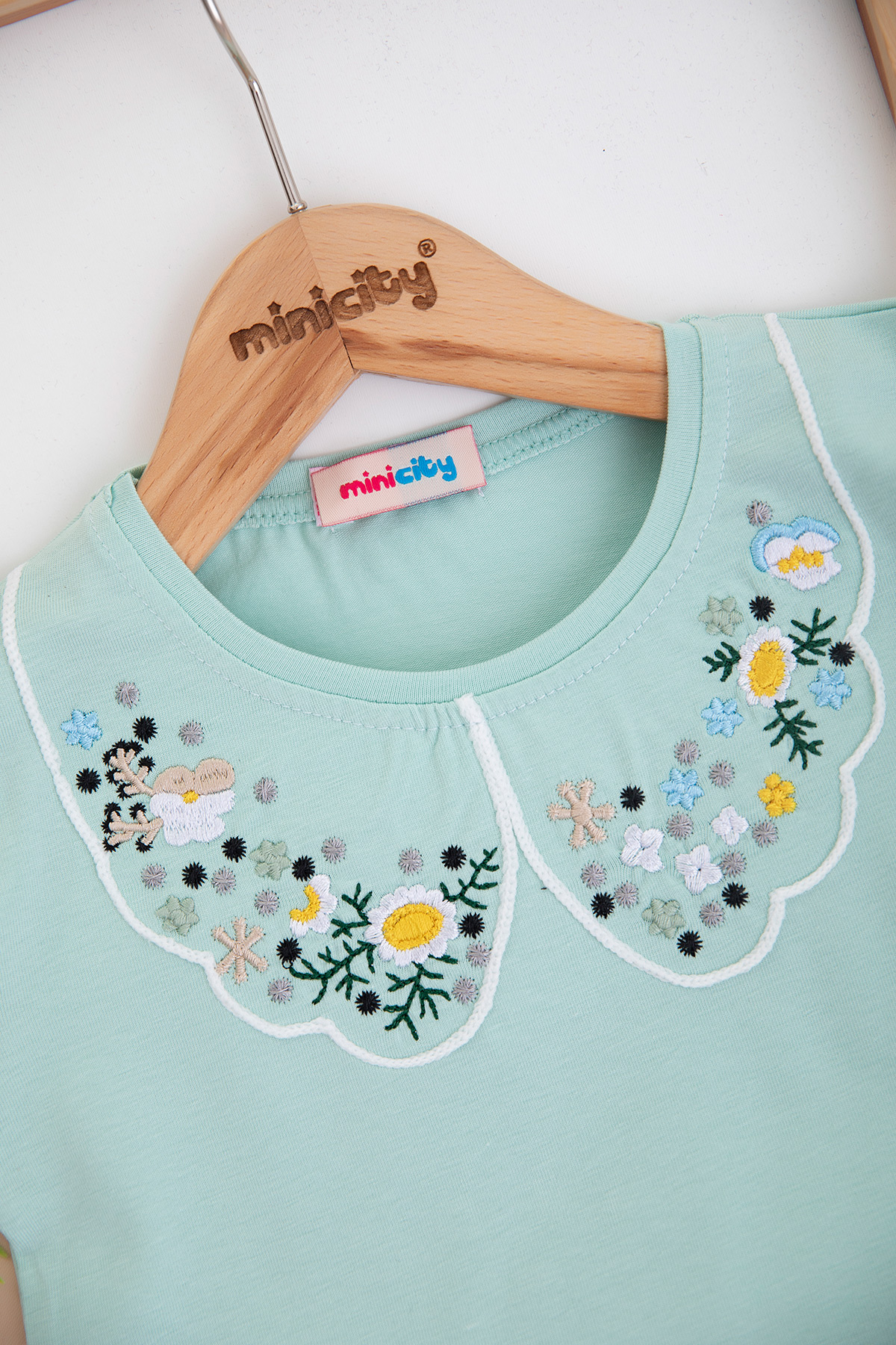 Kız Çocuk Yakası Nakışlı Yarım Kol Badi (3-12 Yaş)