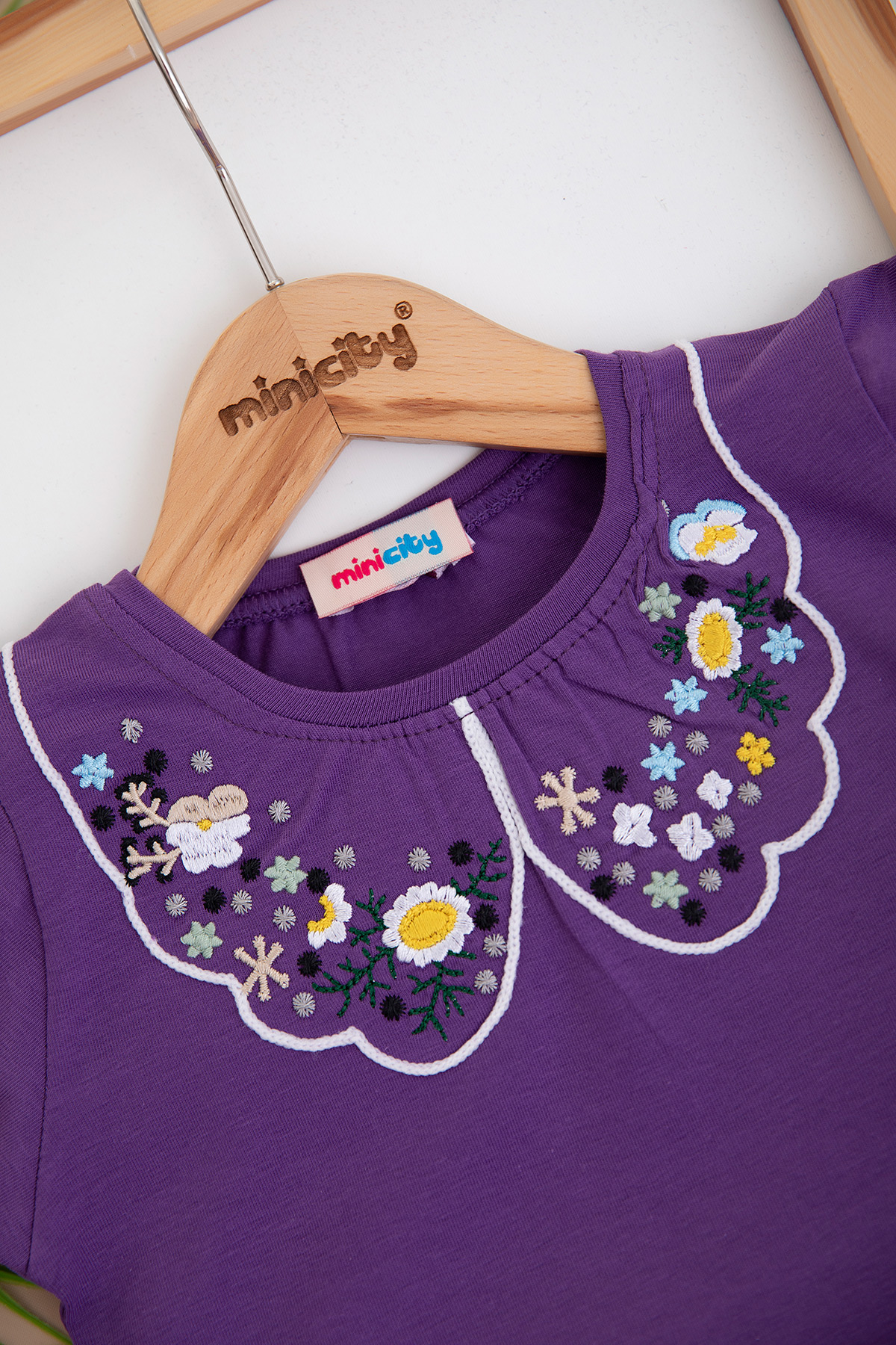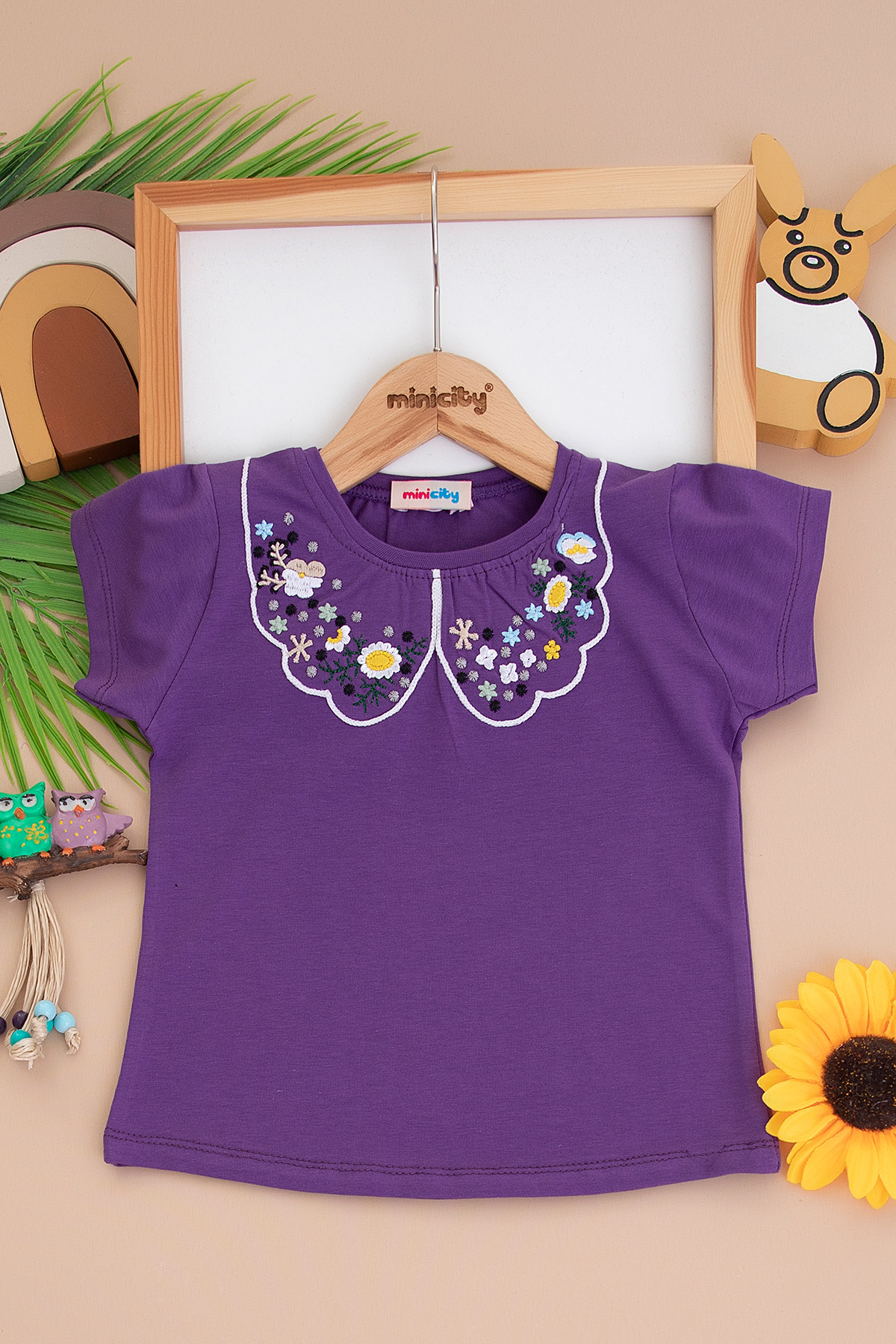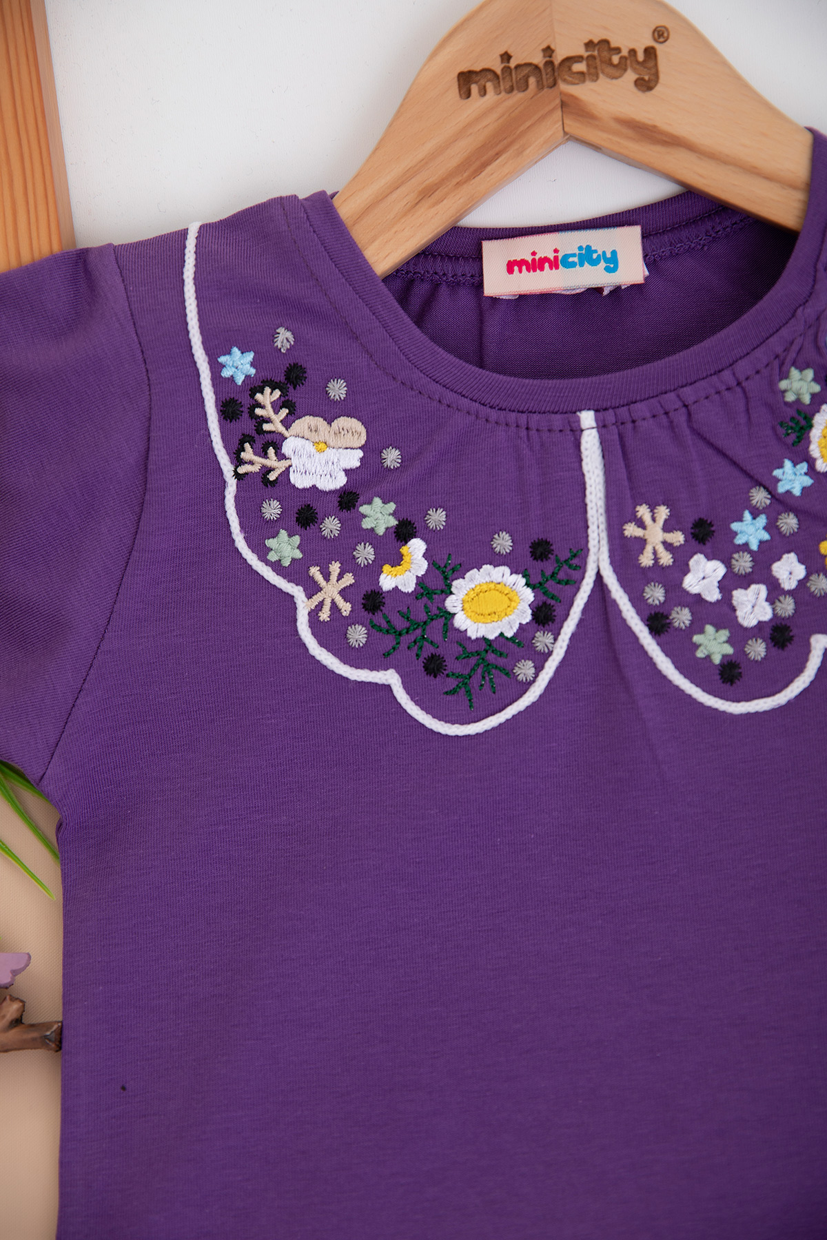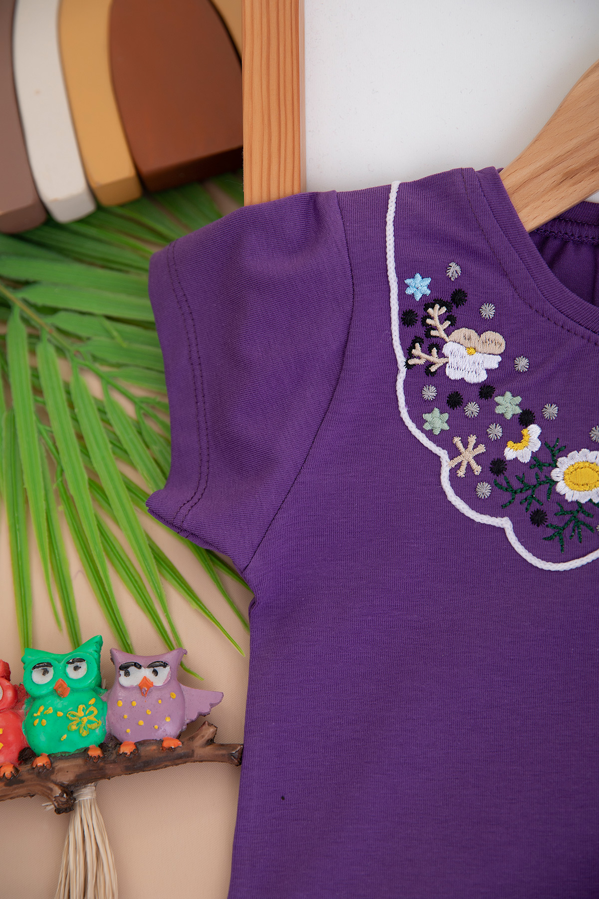 Kız Çocuk Yakası Nakışlı Yarım Kol Badi (3-12 Yaş)