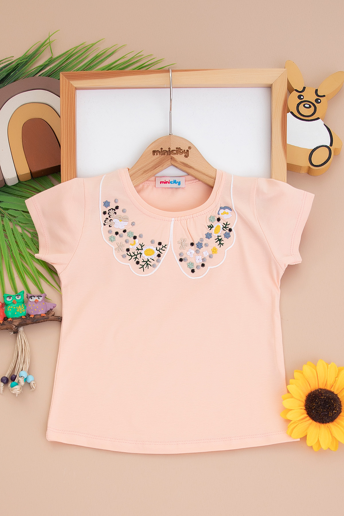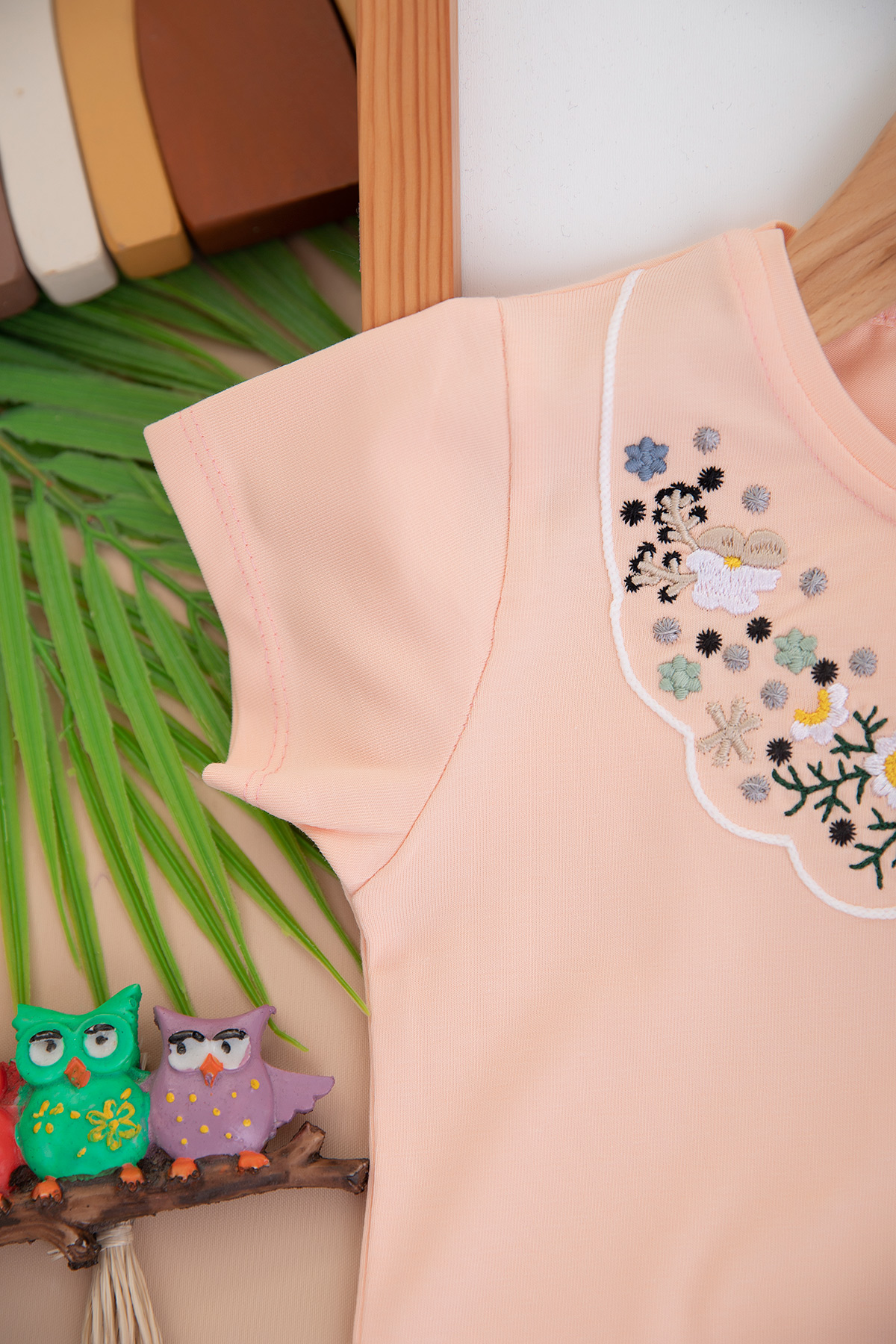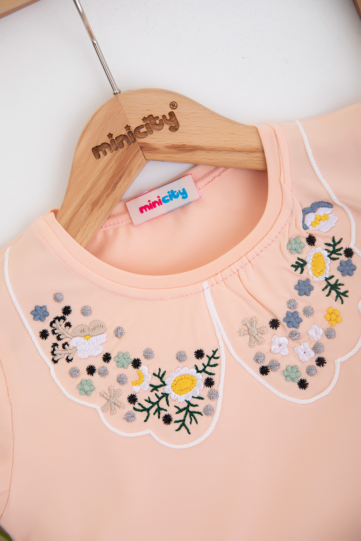 Kız Çocuk Yakası Nakışlı Yarım Kol Badi (3-12 Yaş)
