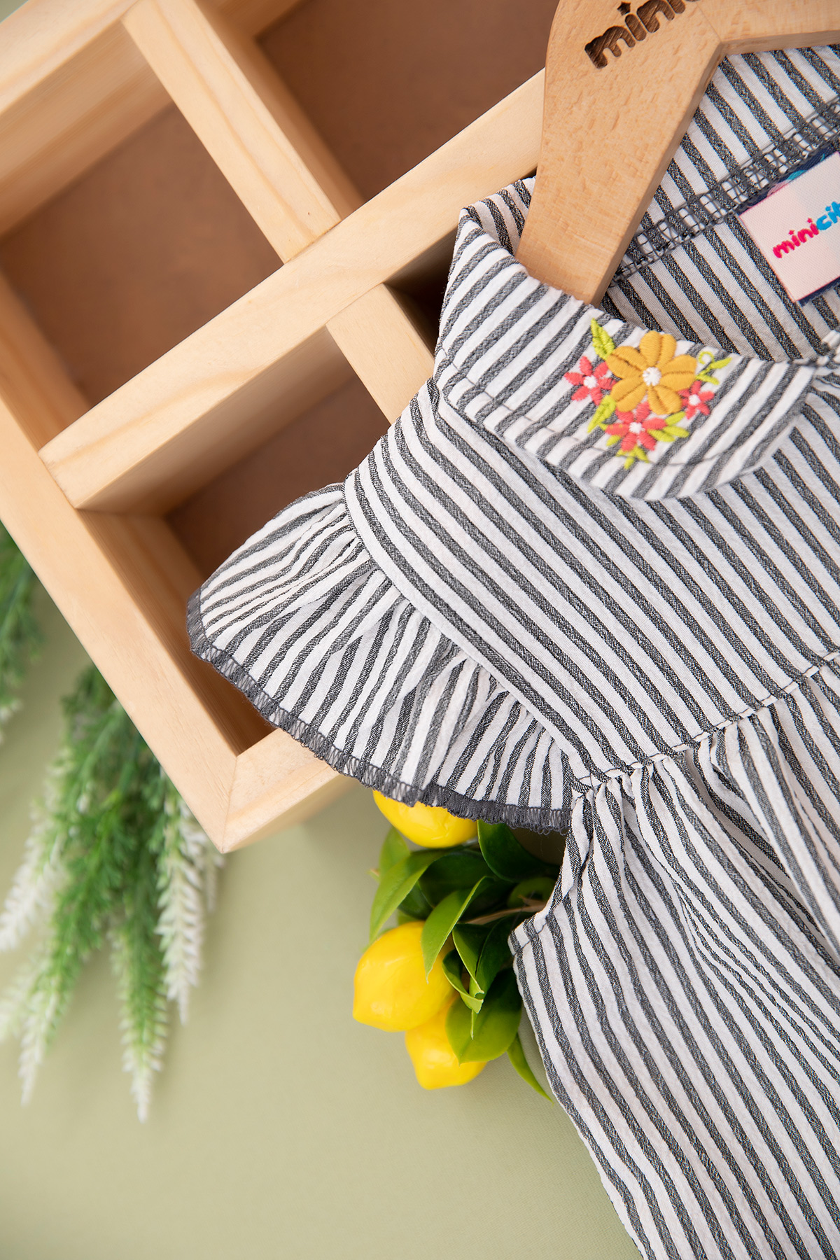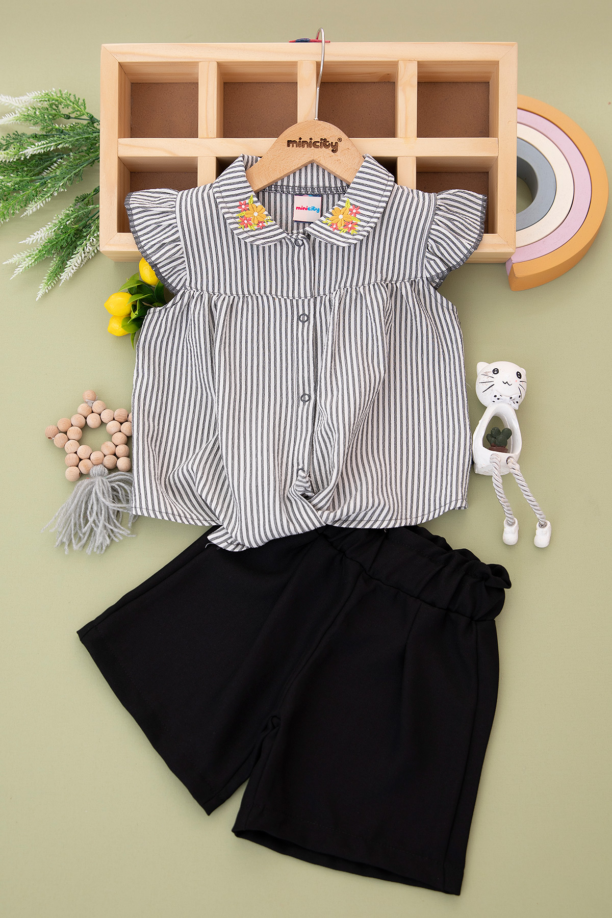 Kız Çocuk Yakası Papatya Nakışlı Şortlu Takım - 24278 (3-6 Yaş)