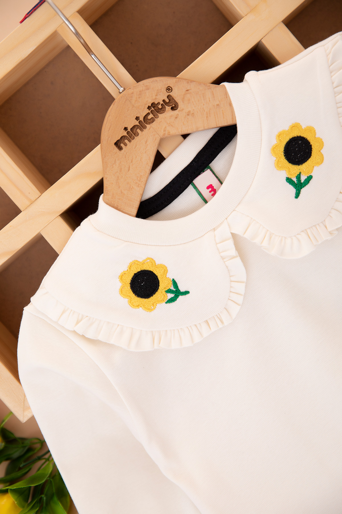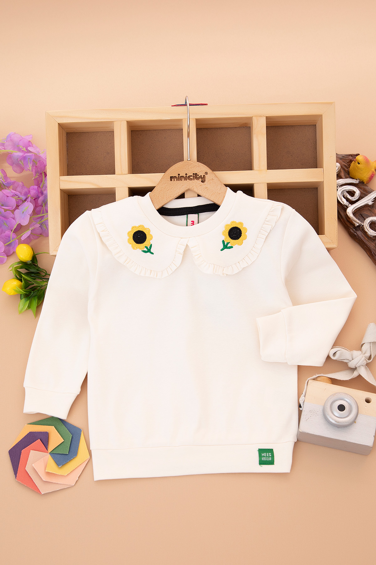 Kız Çocuk Yakası Papatya Nakışlı Sweat (2-10 Yaş)