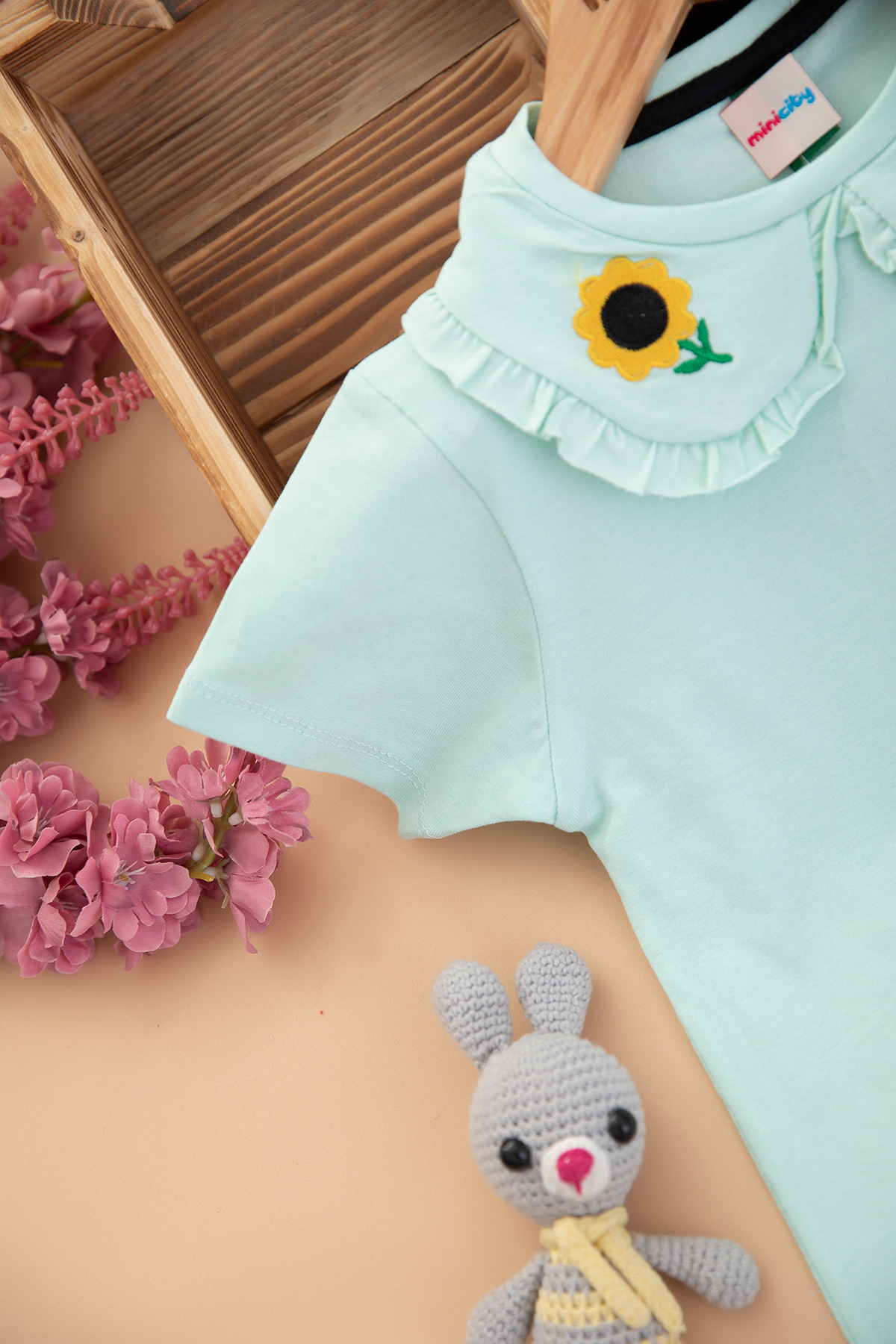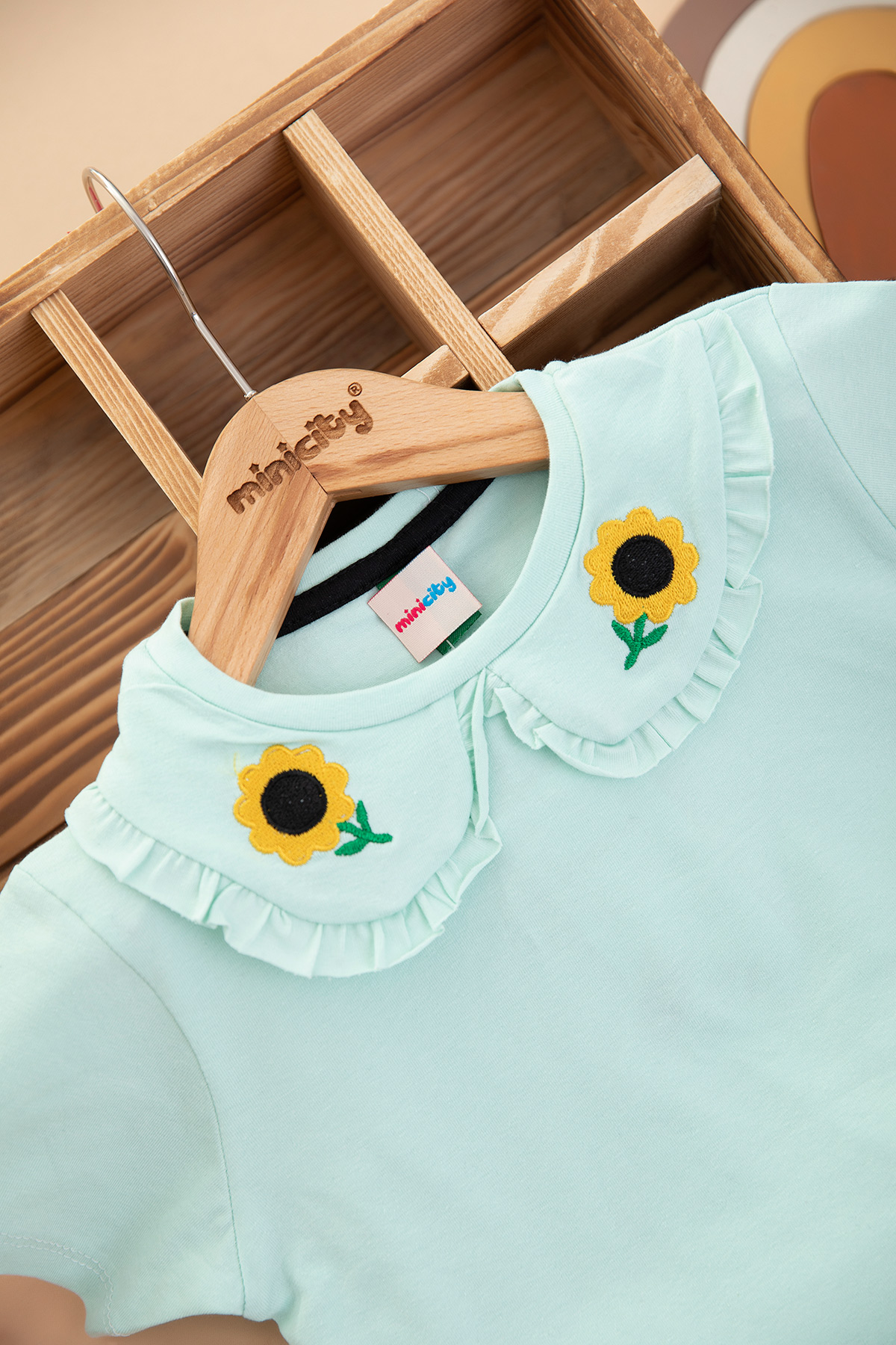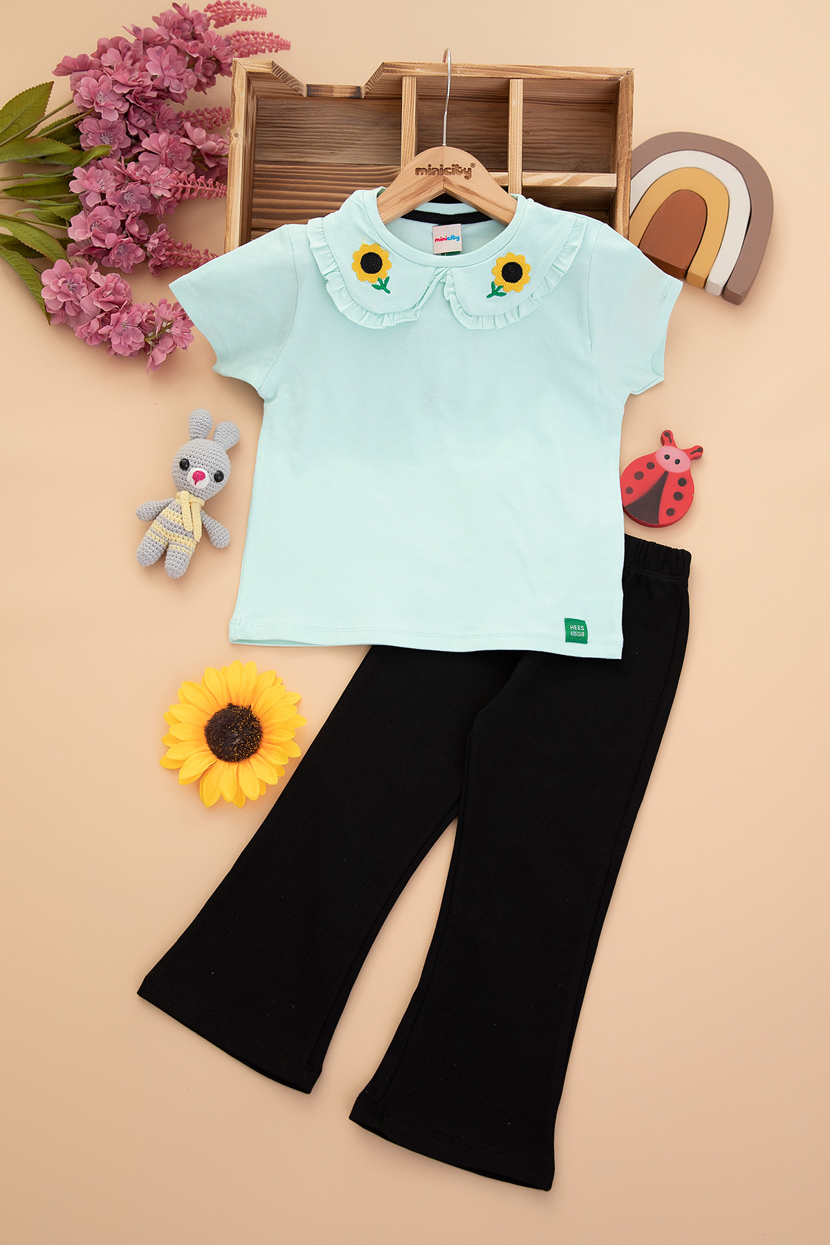 Kız Çocuk Yakası Papatya Nakışlı Taytlı Takım (2-7 Yaş)
