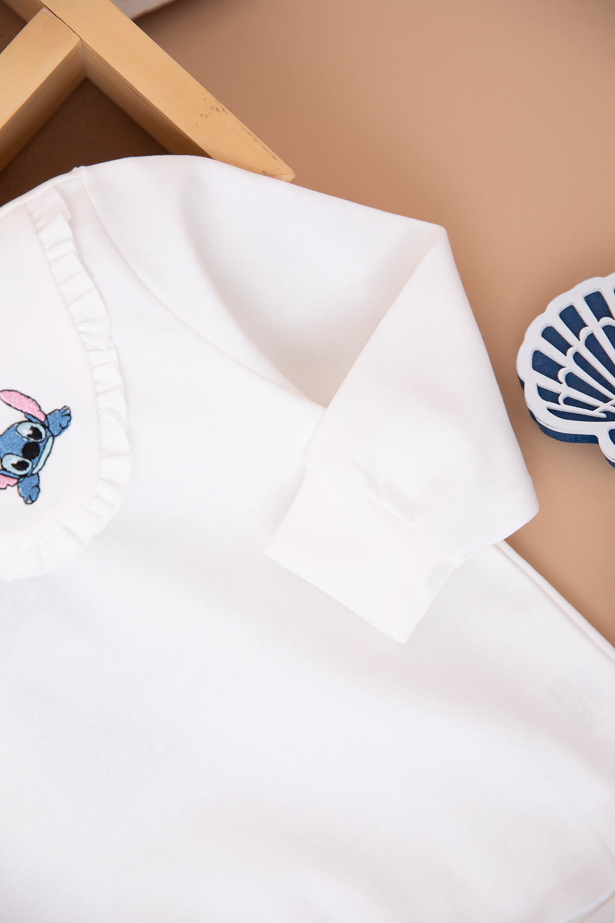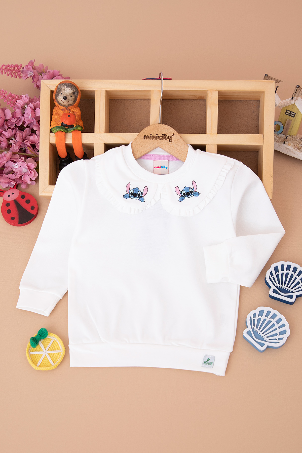Kız Çocuk Yakası Stitch Nakışlı Sweat (2-10 Yaş)