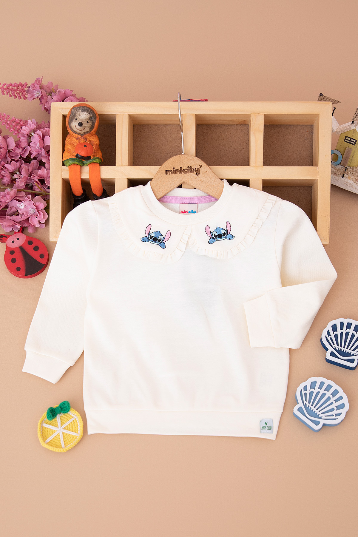 Kız Çocuk Yakası Stitch Nakışlı Sweat (2-10 Yaş)