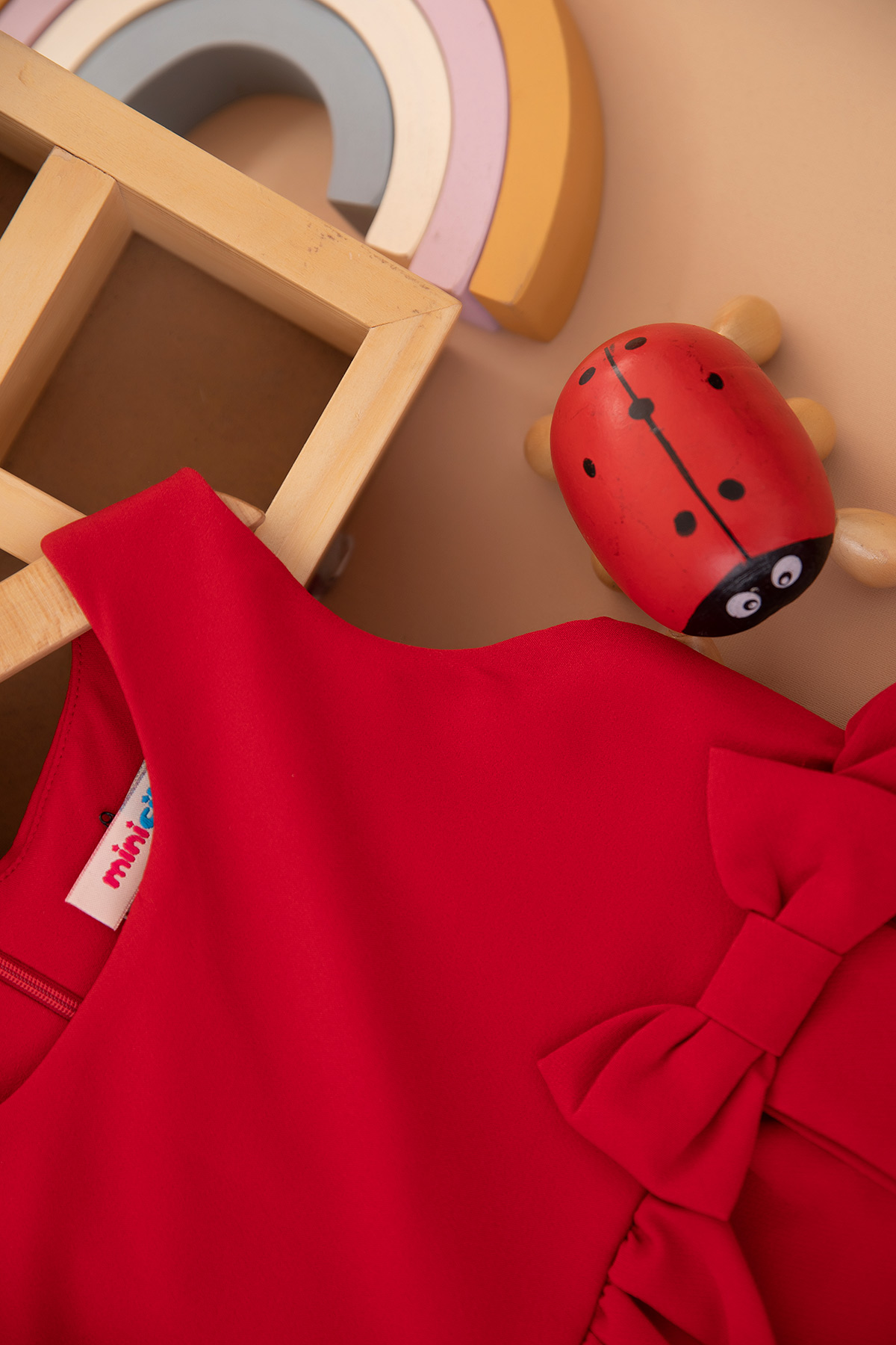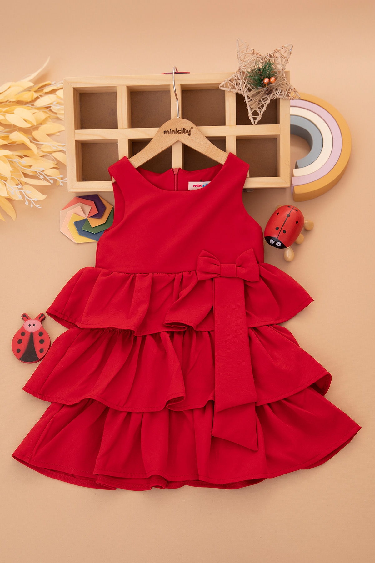 Kız Çocuk Yandan Fiyonklu Katkat Elbise - 622300 (6-9 Yaş)