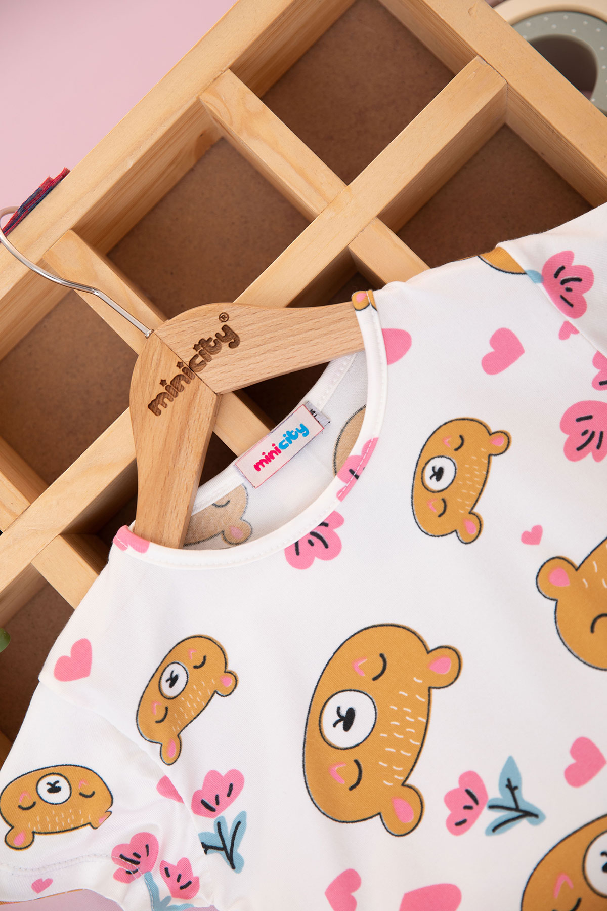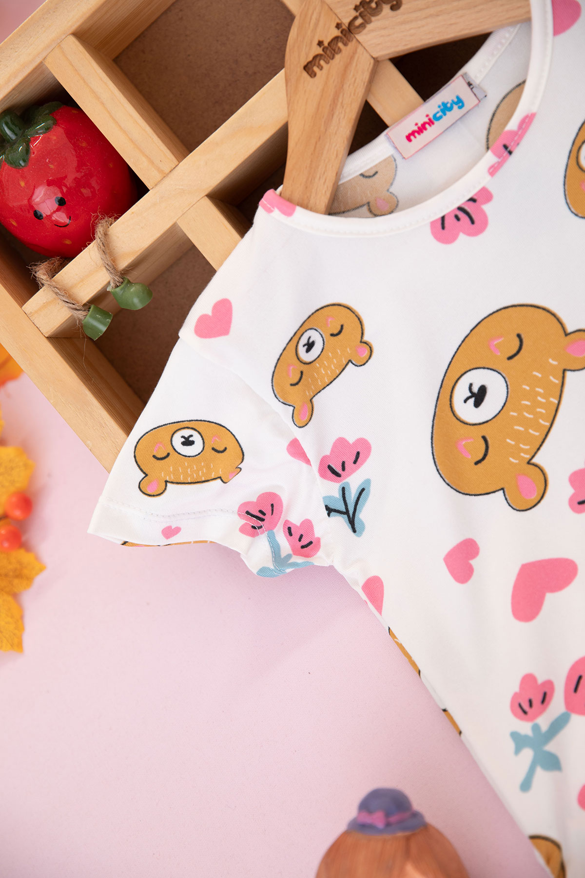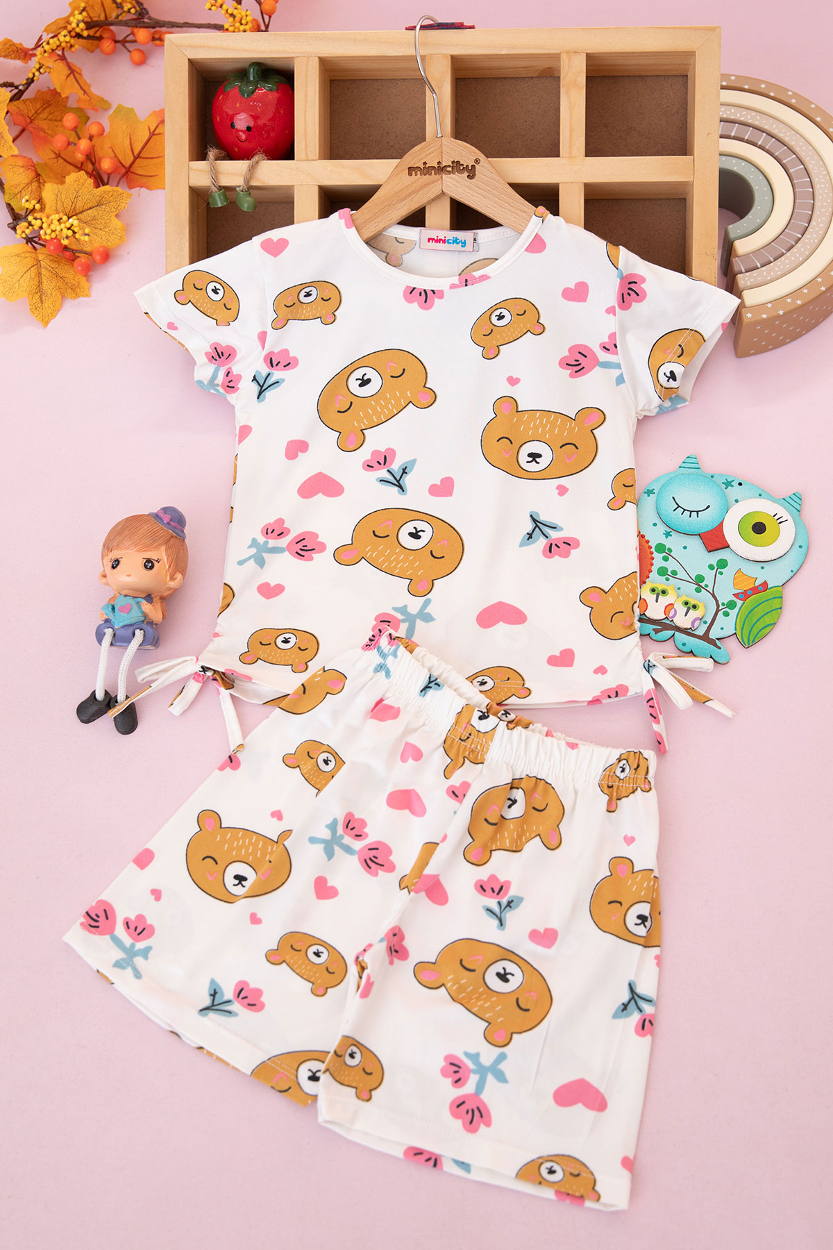 Kız Çocuk Yanı Büzgülü Baskılı Şortlu Takım - 5158 (3-10 Yaş)