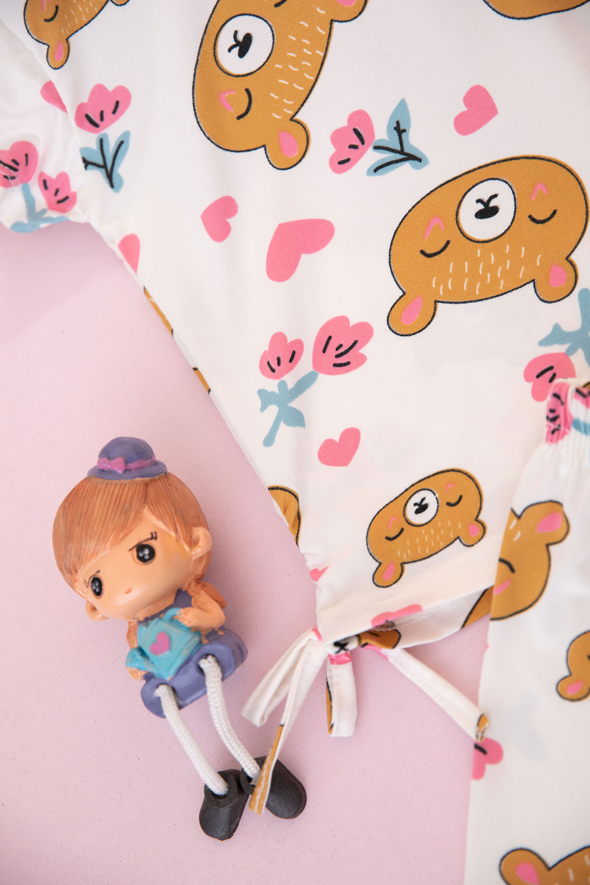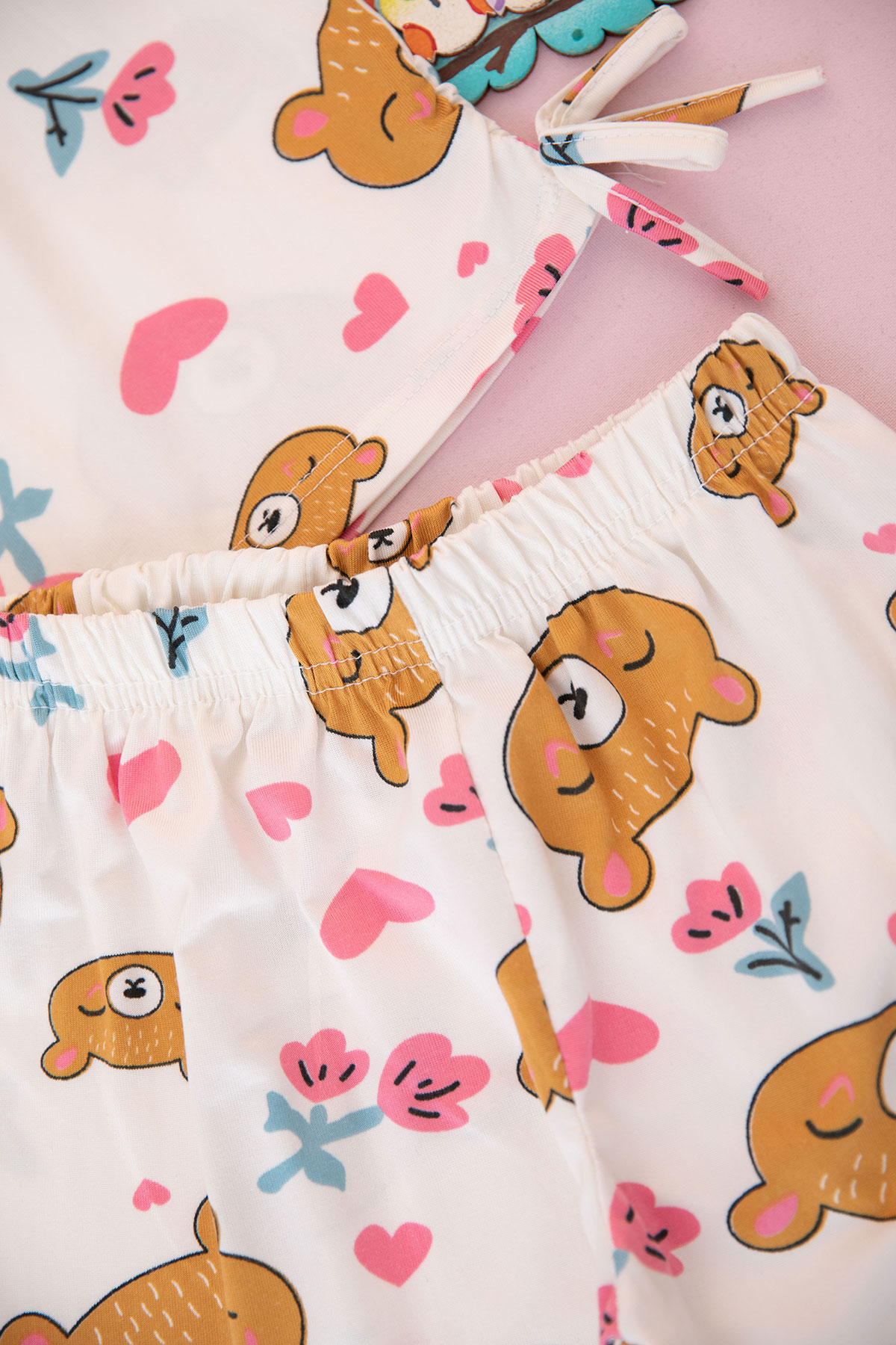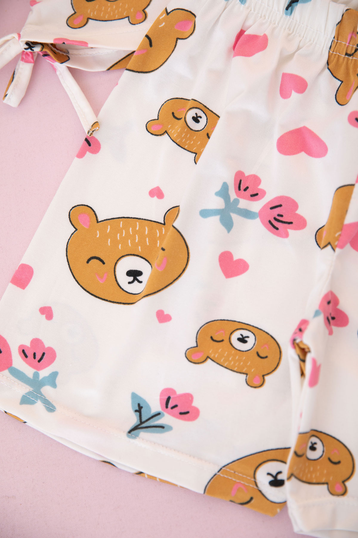 Kız Çocuk Yanı Büzgülü Baskılı Şortlu Takım - 5158 (3-10 Yaş)