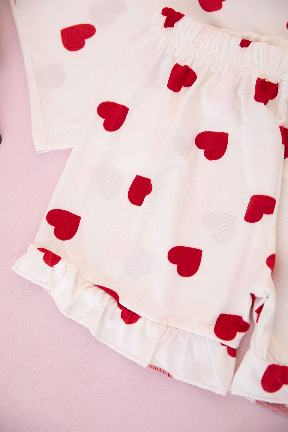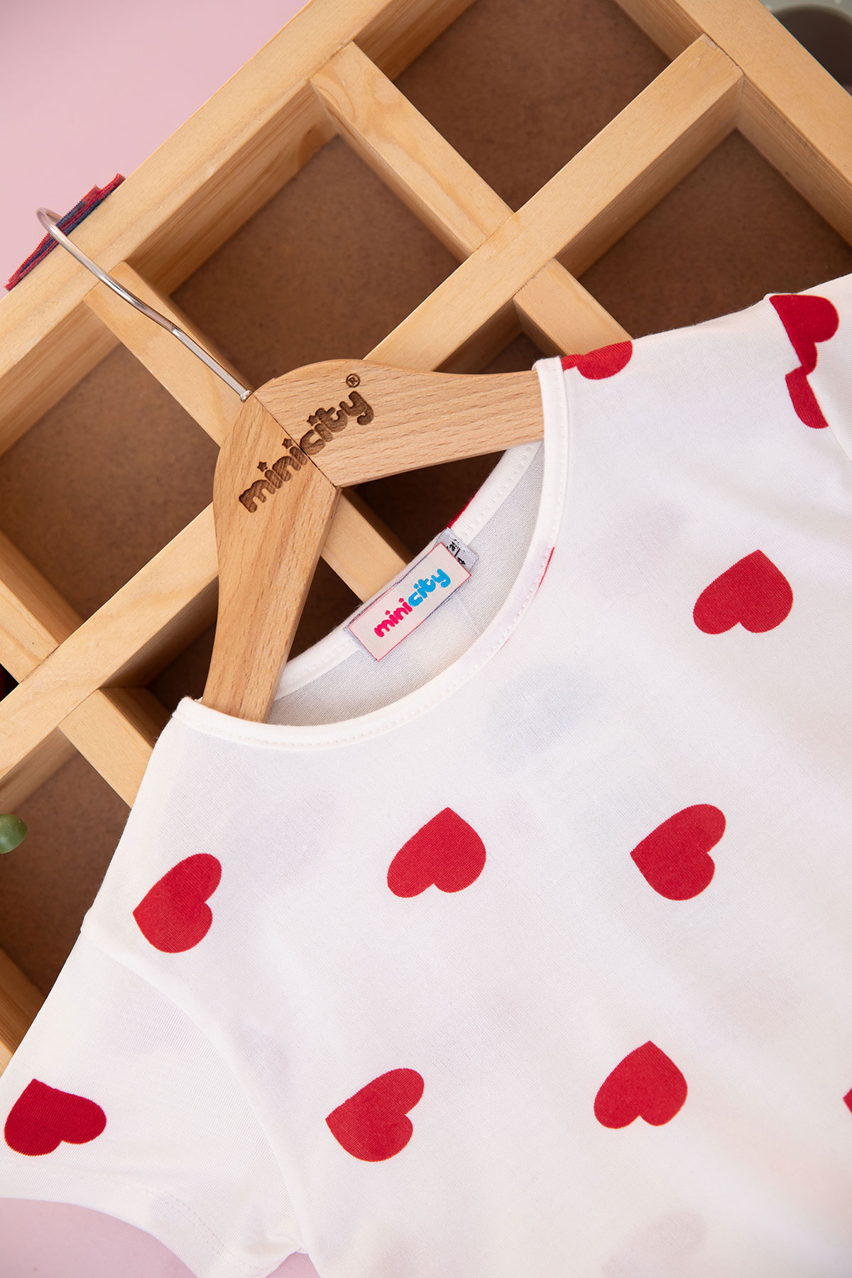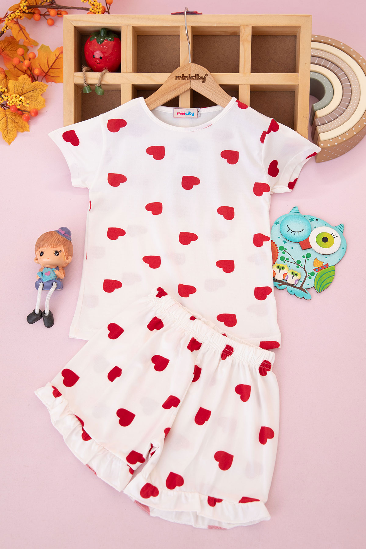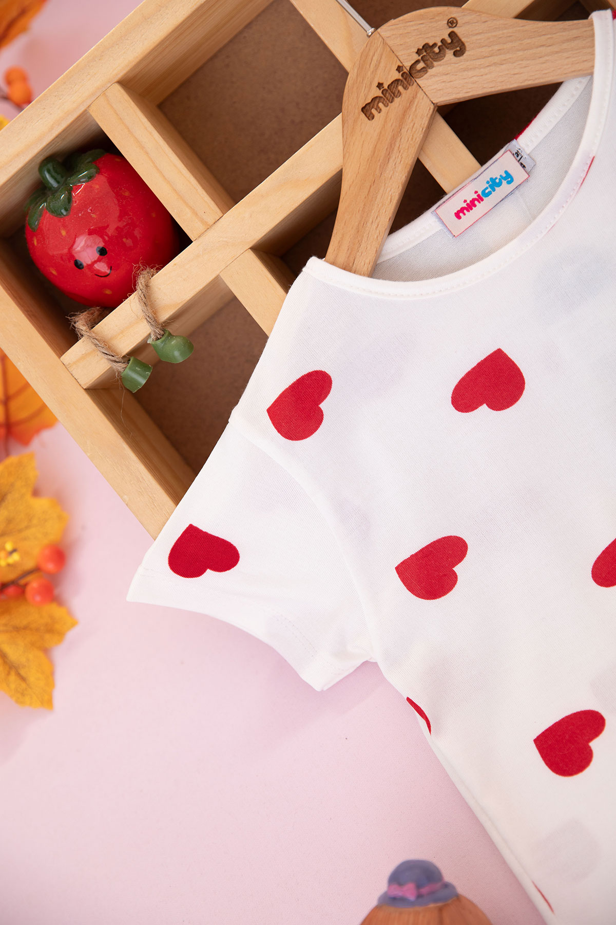 Kız Çocuk Yanı Büzgülü Baskılı Şortlu Takım - 5158 (3-10 Yaş)