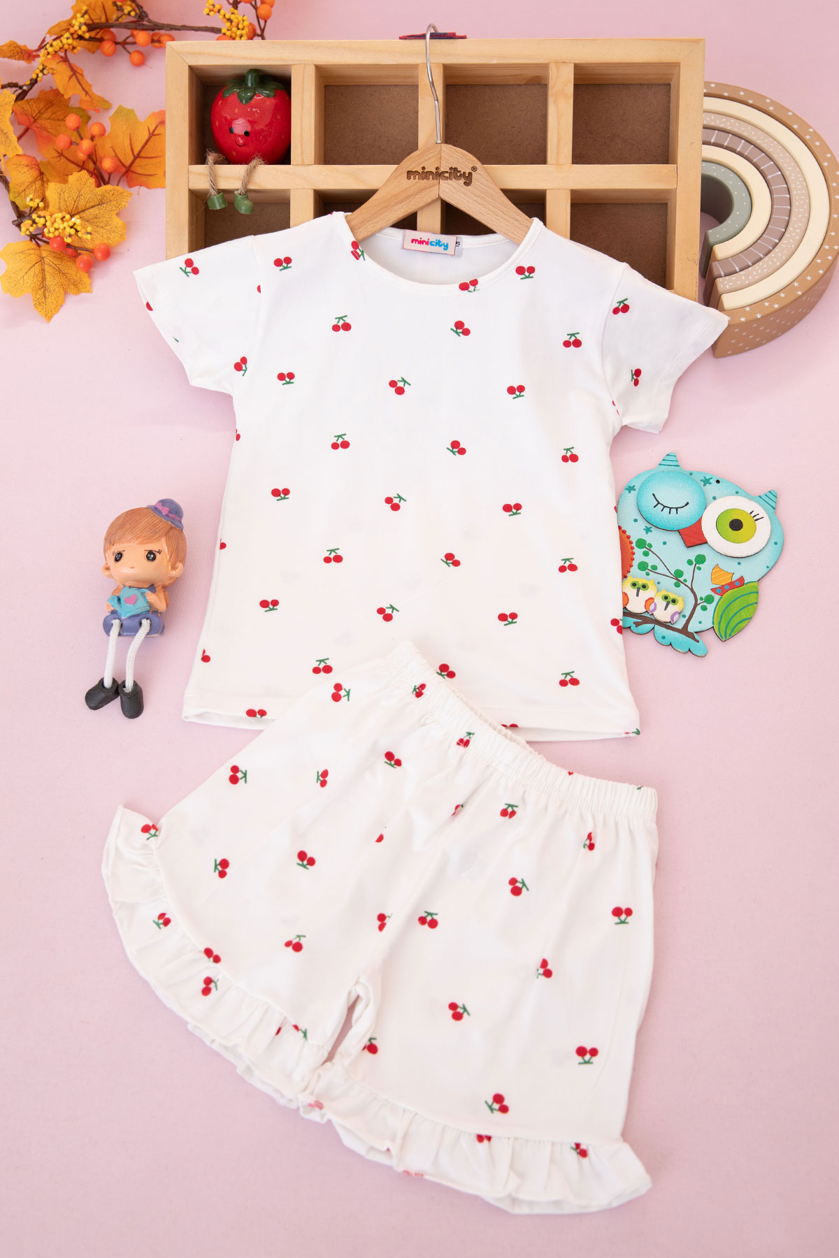 Kız Çocuk Yanı Büzgülü Baskılı Şortlu Takım - 5158 (3-10 Yaş)