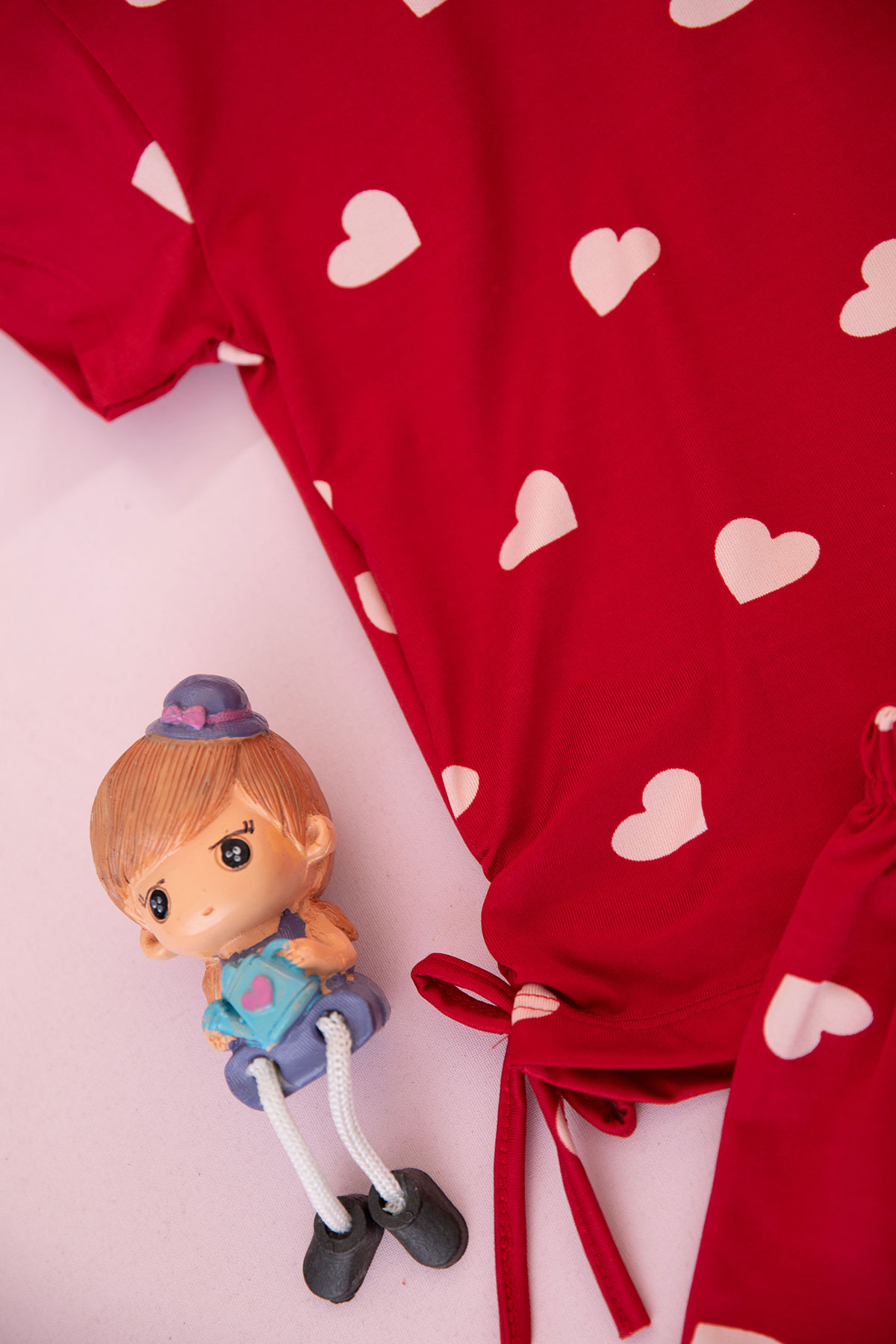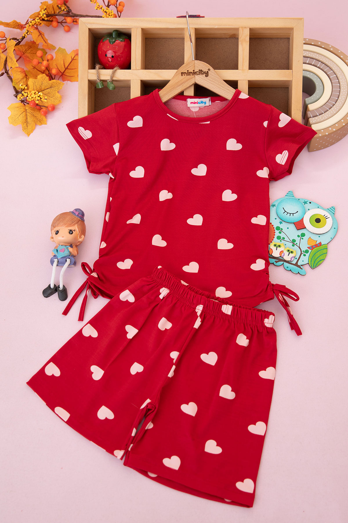 Kız Çocuk Yanı Büzgülü Baskılı Şortlu Takım - 5158 (3-10 Yaş)