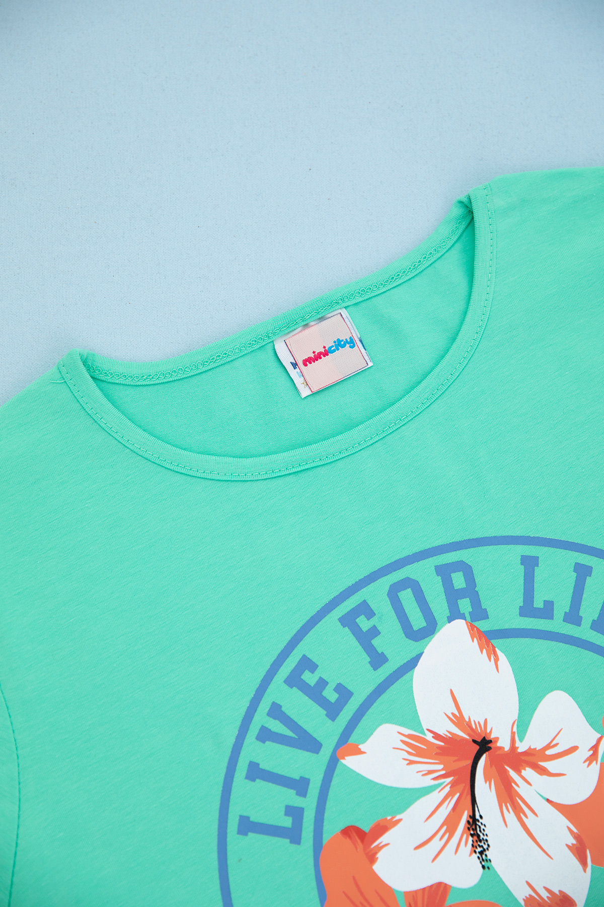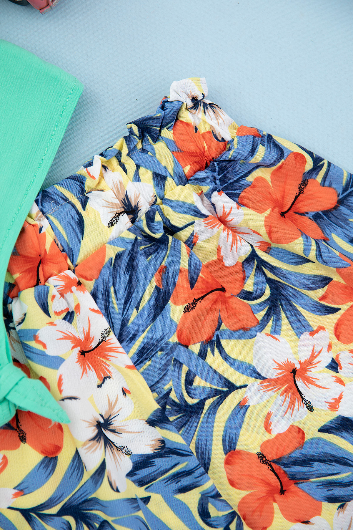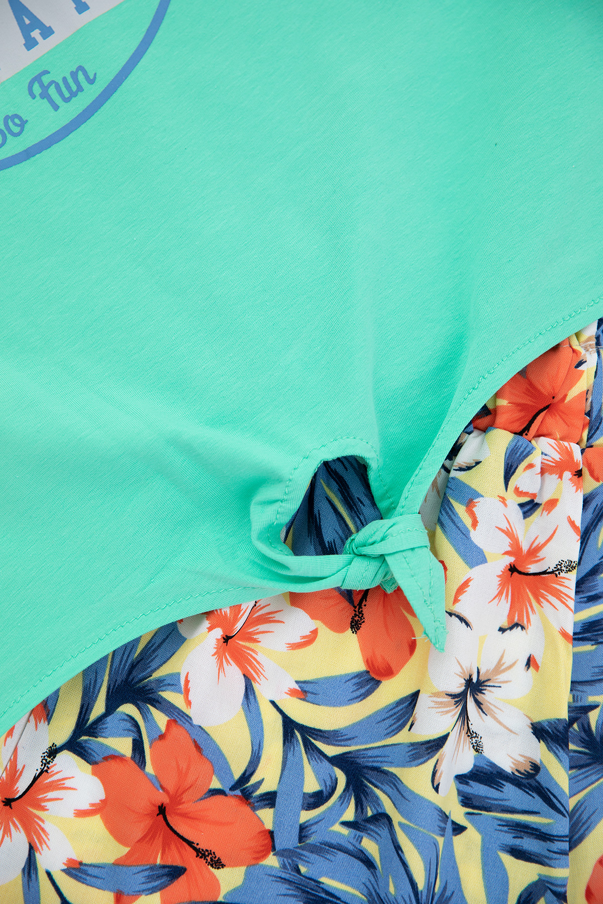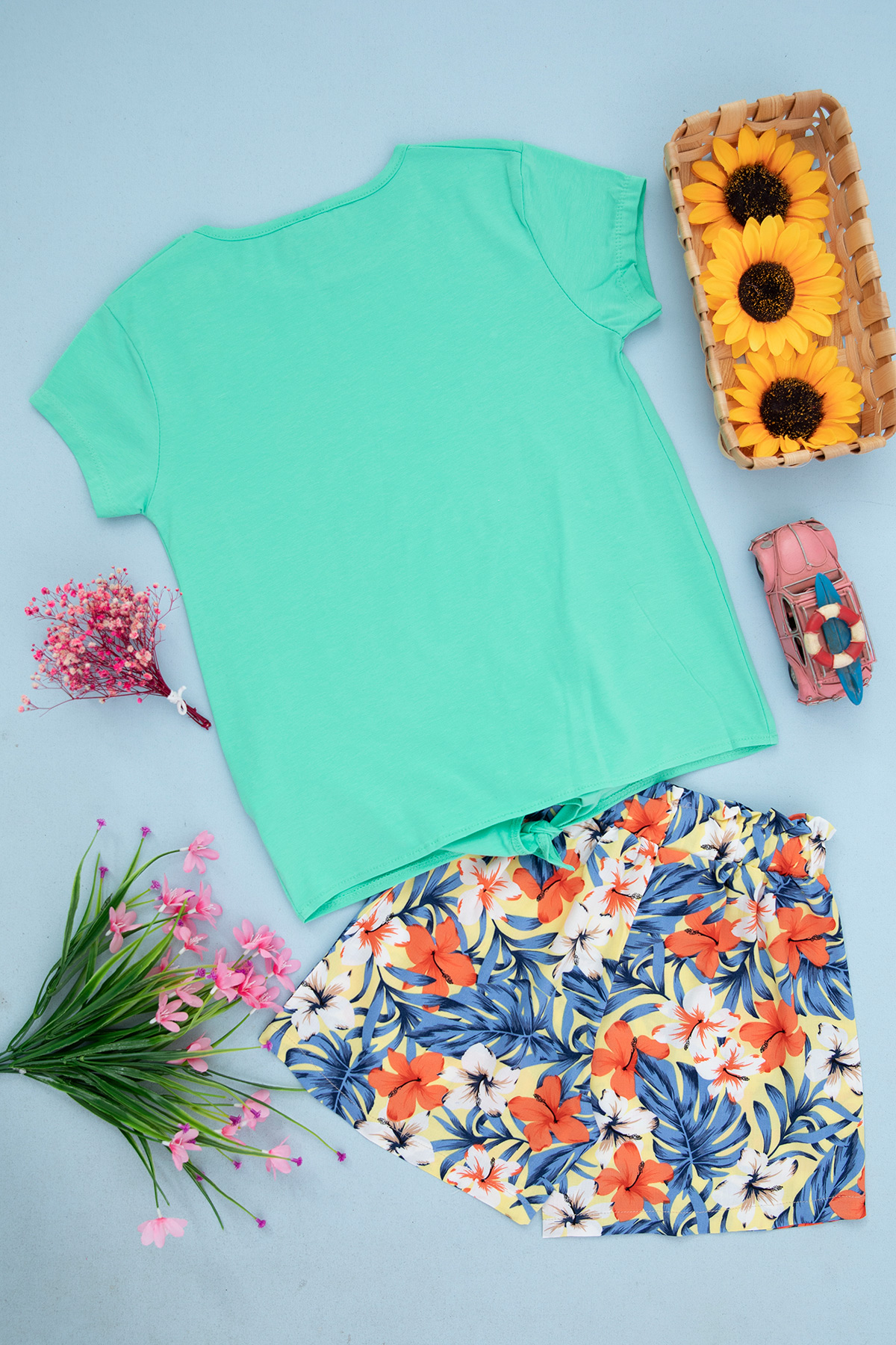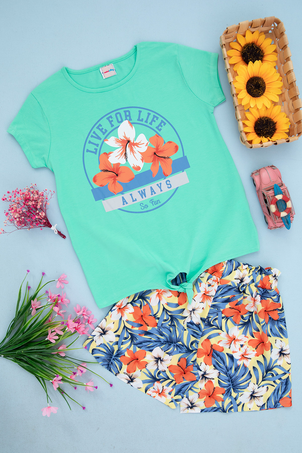 Kız Çocuk Yaprak Baskılı Şortlu Takım - 22152 (11-14 Yaş)