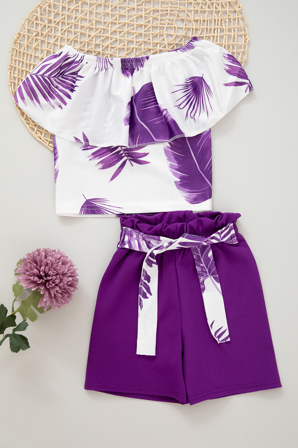 Kız Çocuk Yaprak Desenli Şortlu Takım (3-10 Yaş)