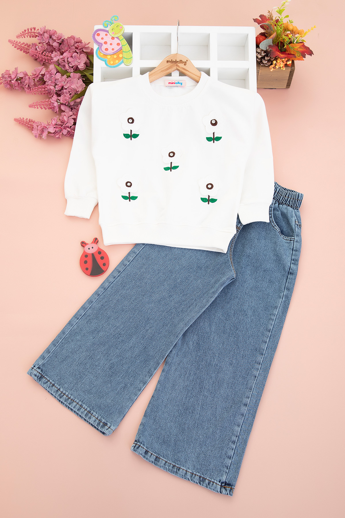 Kız Çocuk Yapraklı Papatya Pantolon Takım - 2686 (6-10 Yaş)