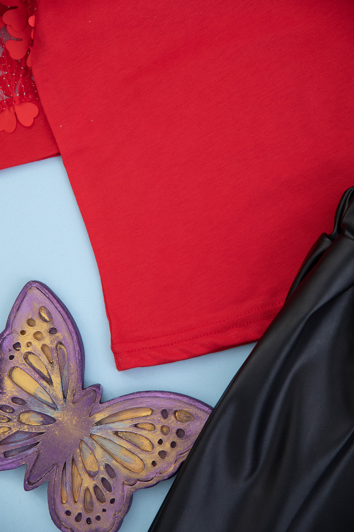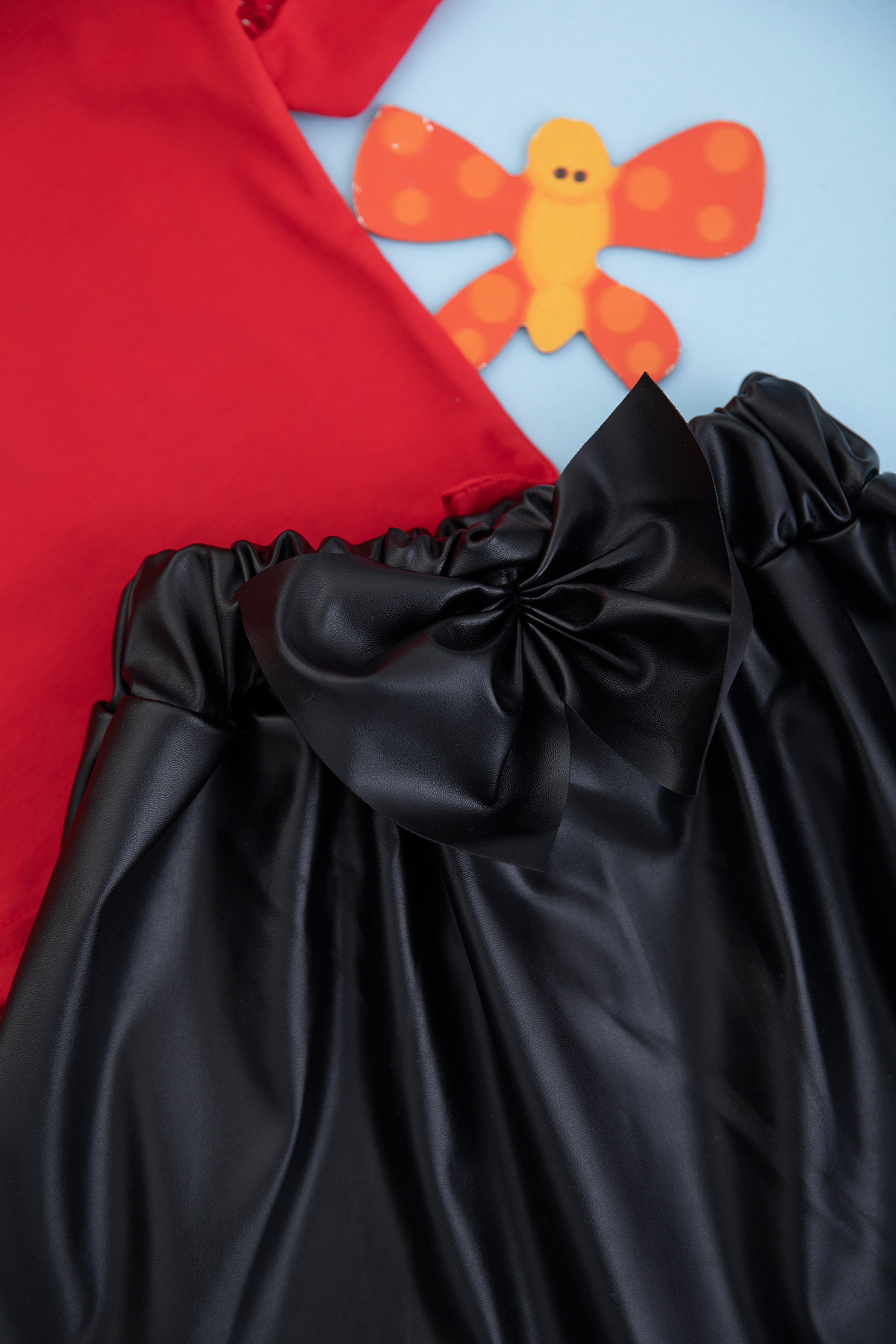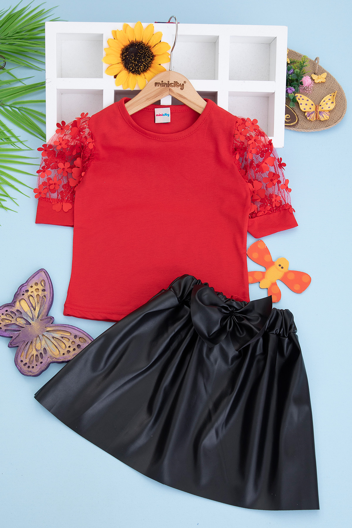 Kız Çocuk Yarım Kol Dantelli Badi Deri Etekli Takım (3-10 Yaş)