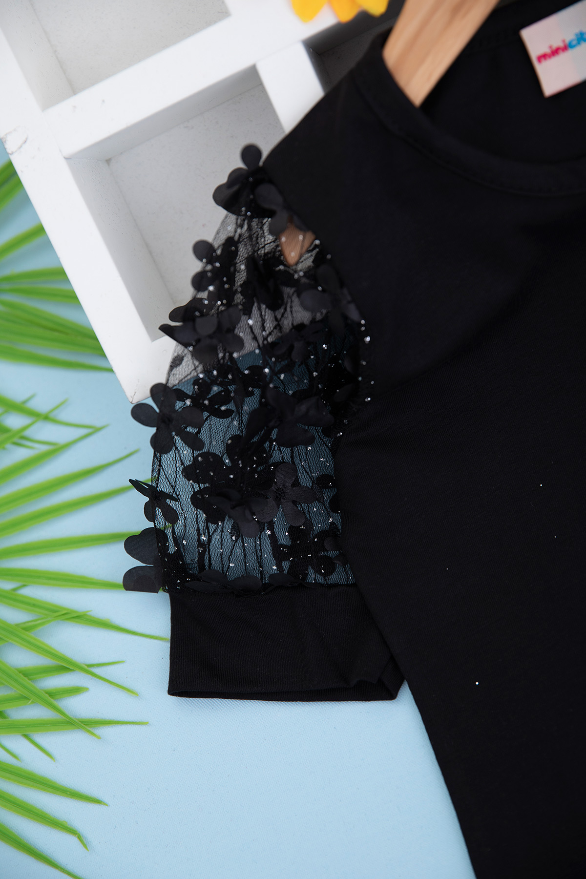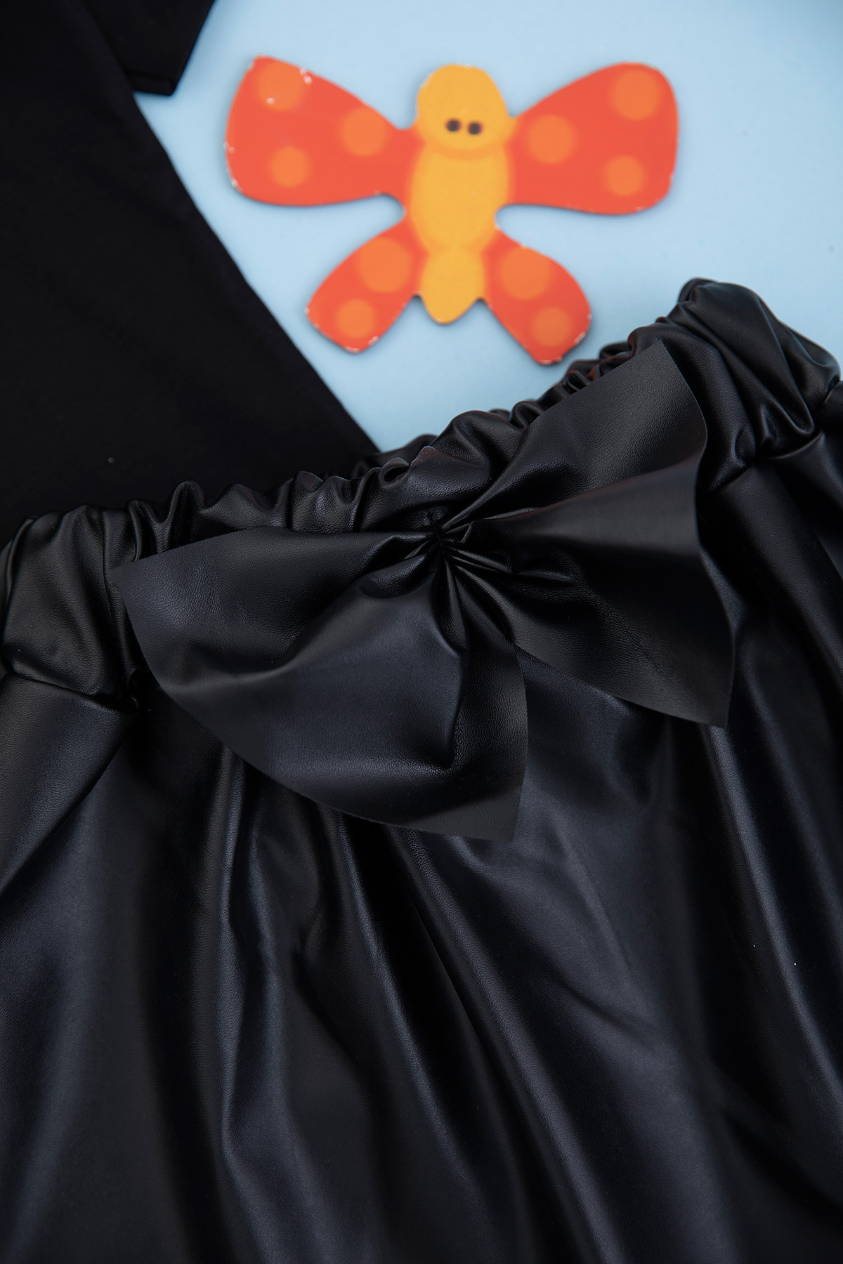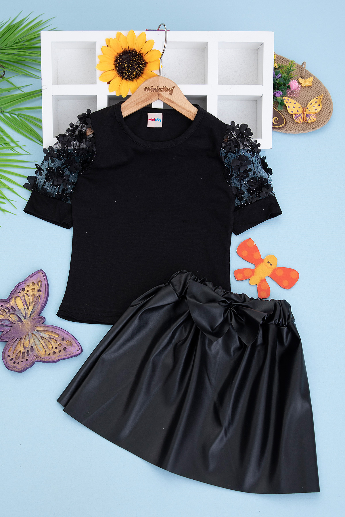 Kız Çocuk Yarım Kol Dantelli Badi Deri Etekli Takım (3-10 Yaş)