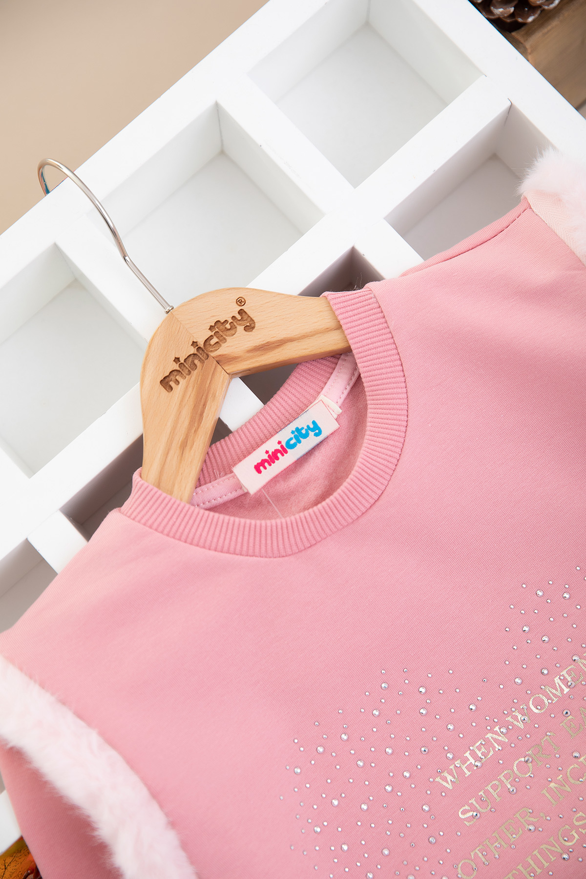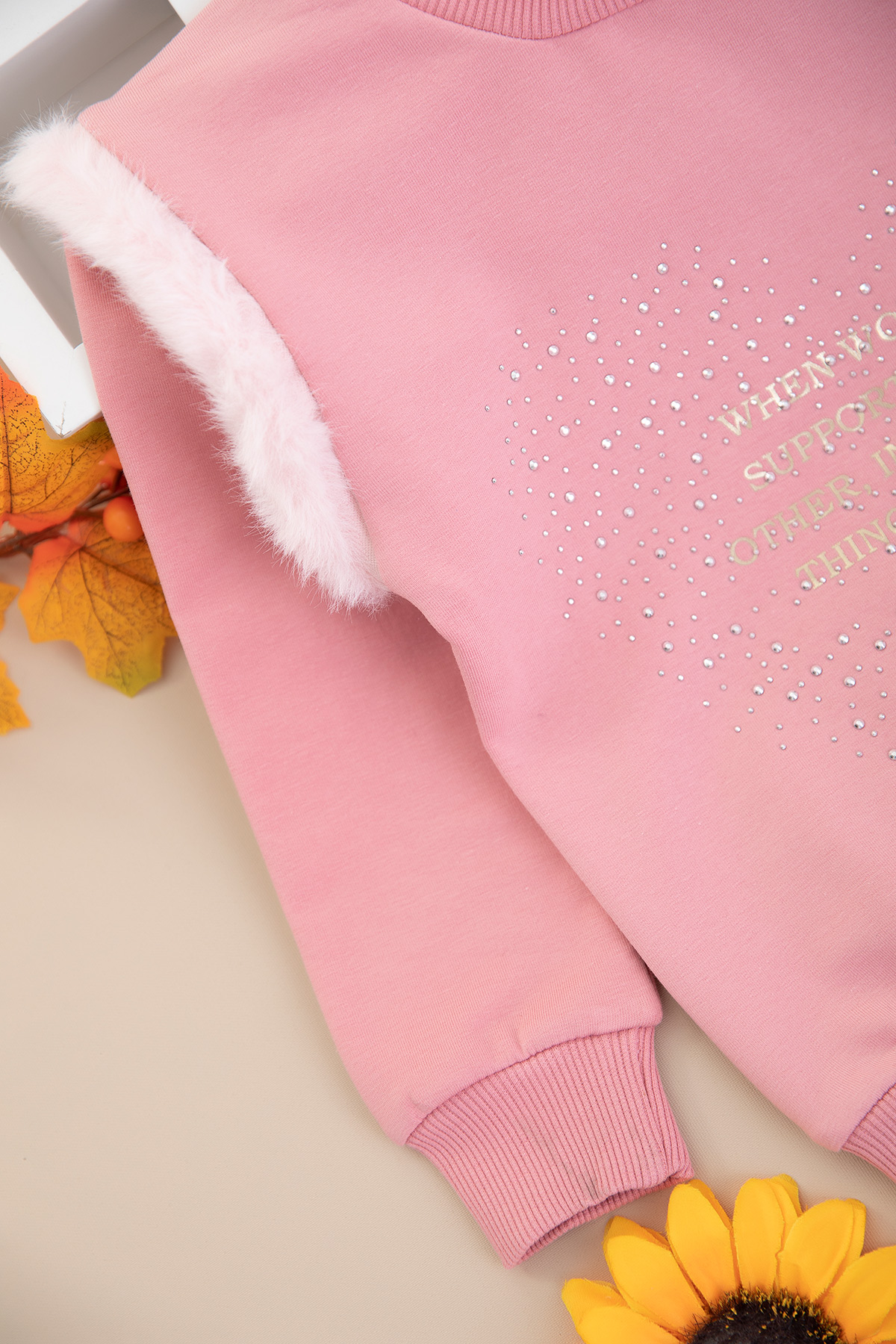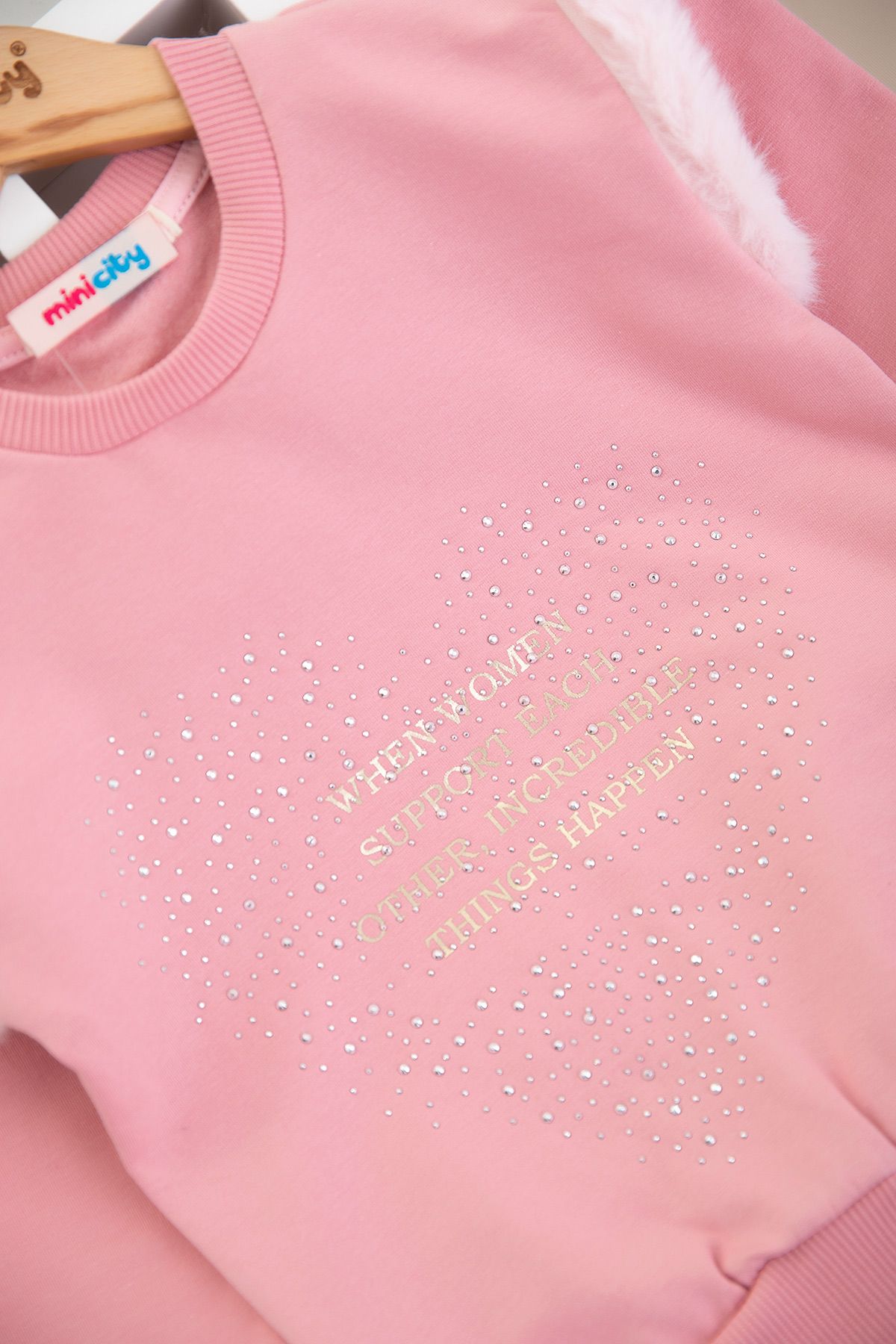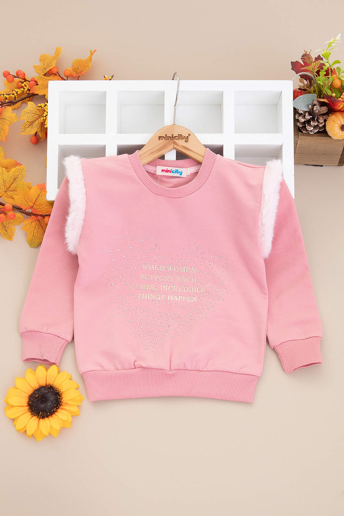 Kız Çocuk Yazı Varak Kalp Taşlı Sweat - 7638 (5-8 Yaş)