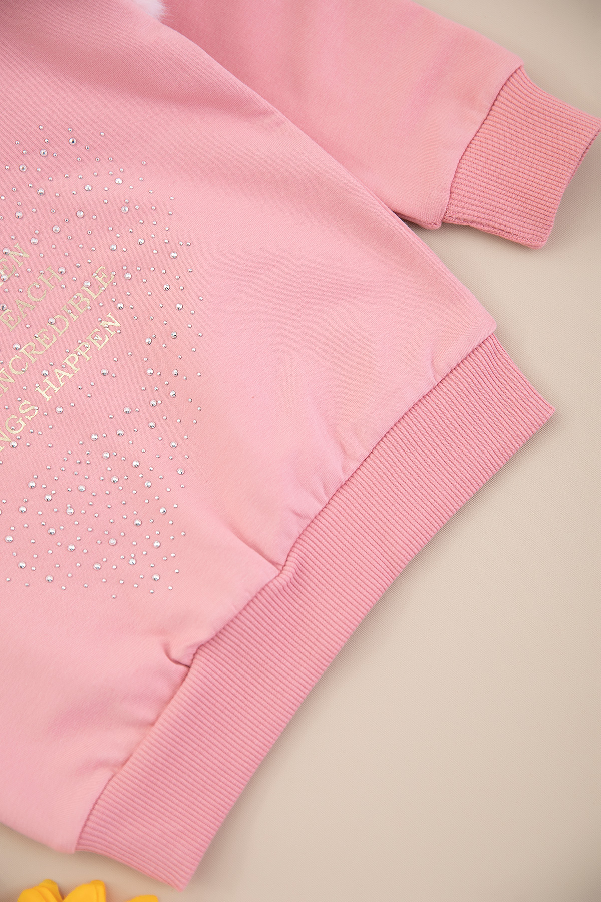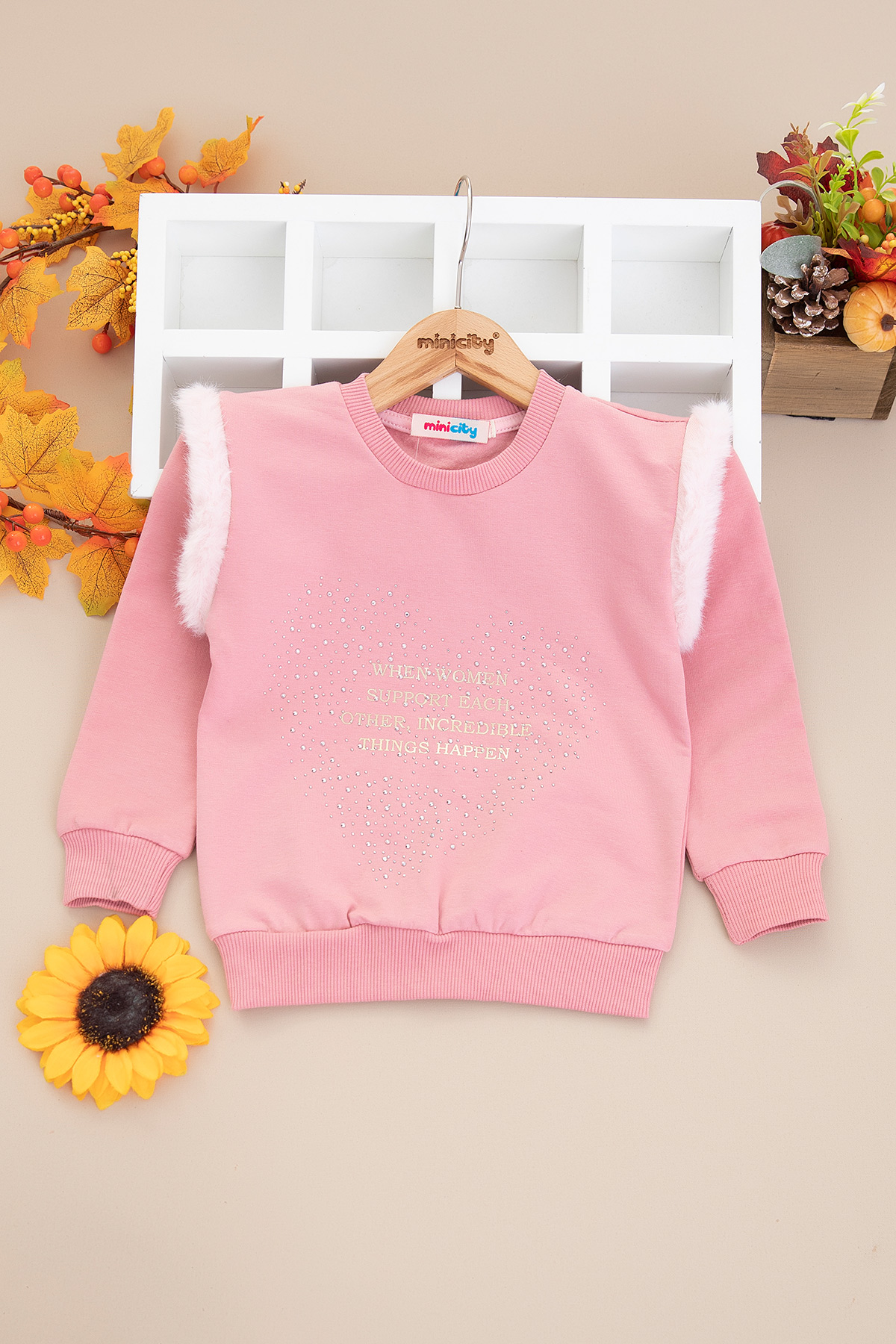 Kız Çocuk Yazı Varak Kalp Taşlı Sweat - 7639 (9-12 Yaş)