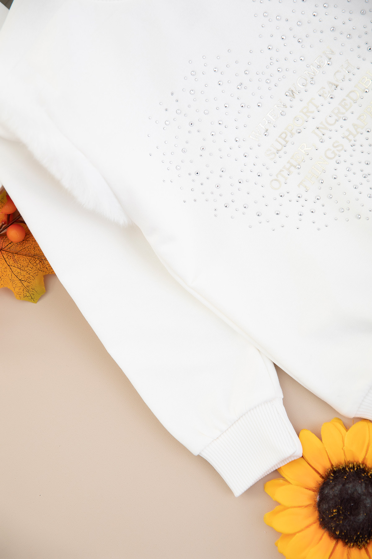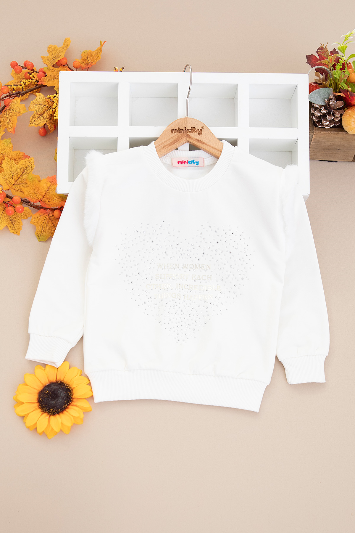 Kız Çocuk Yazı Varak Kalp Taşlı Sweat - 7639 (9-12 Yaş)
