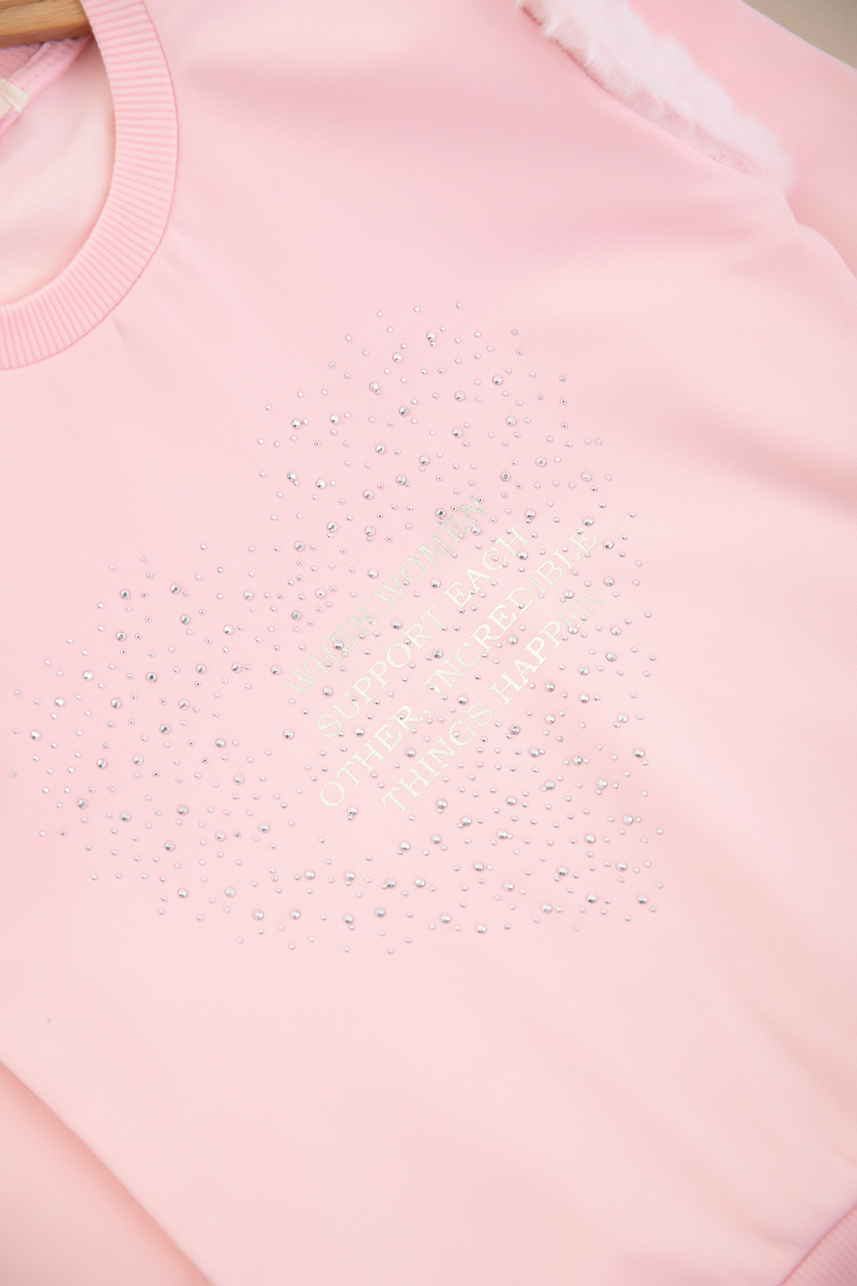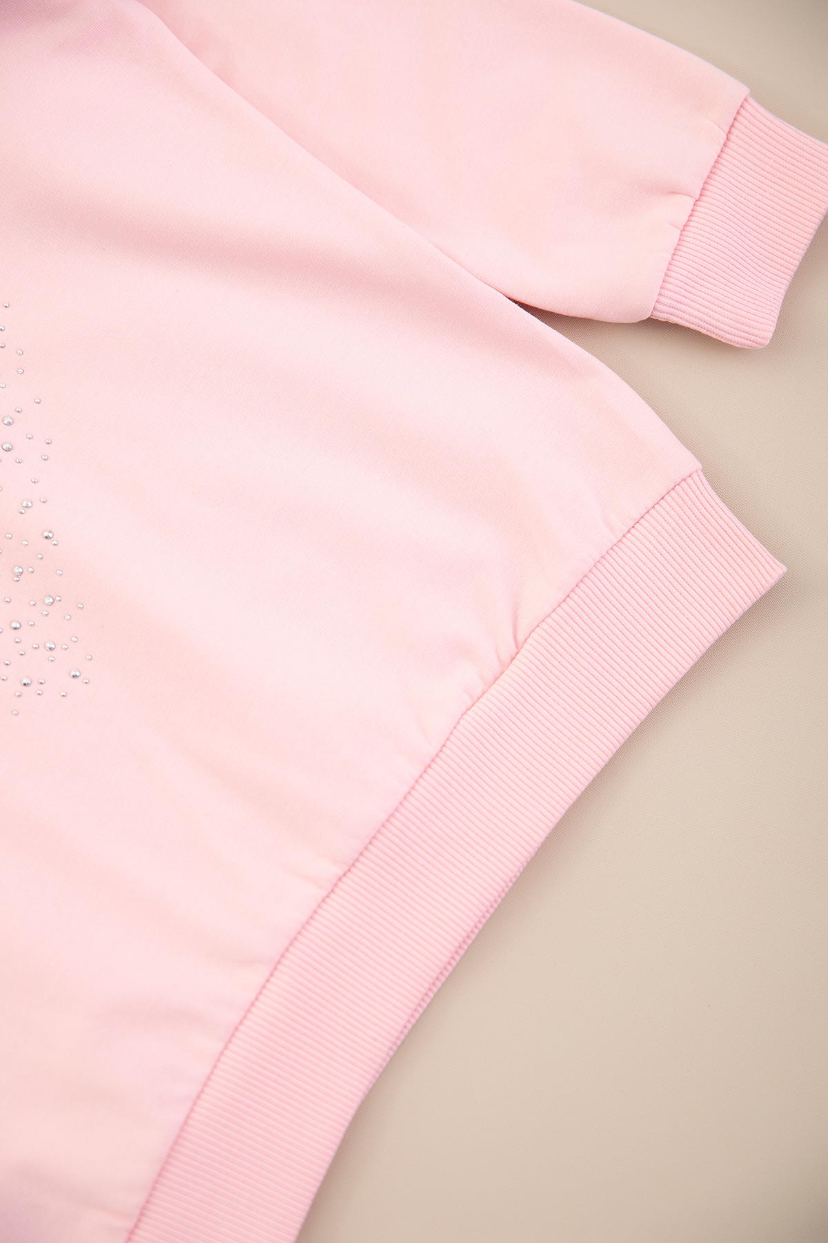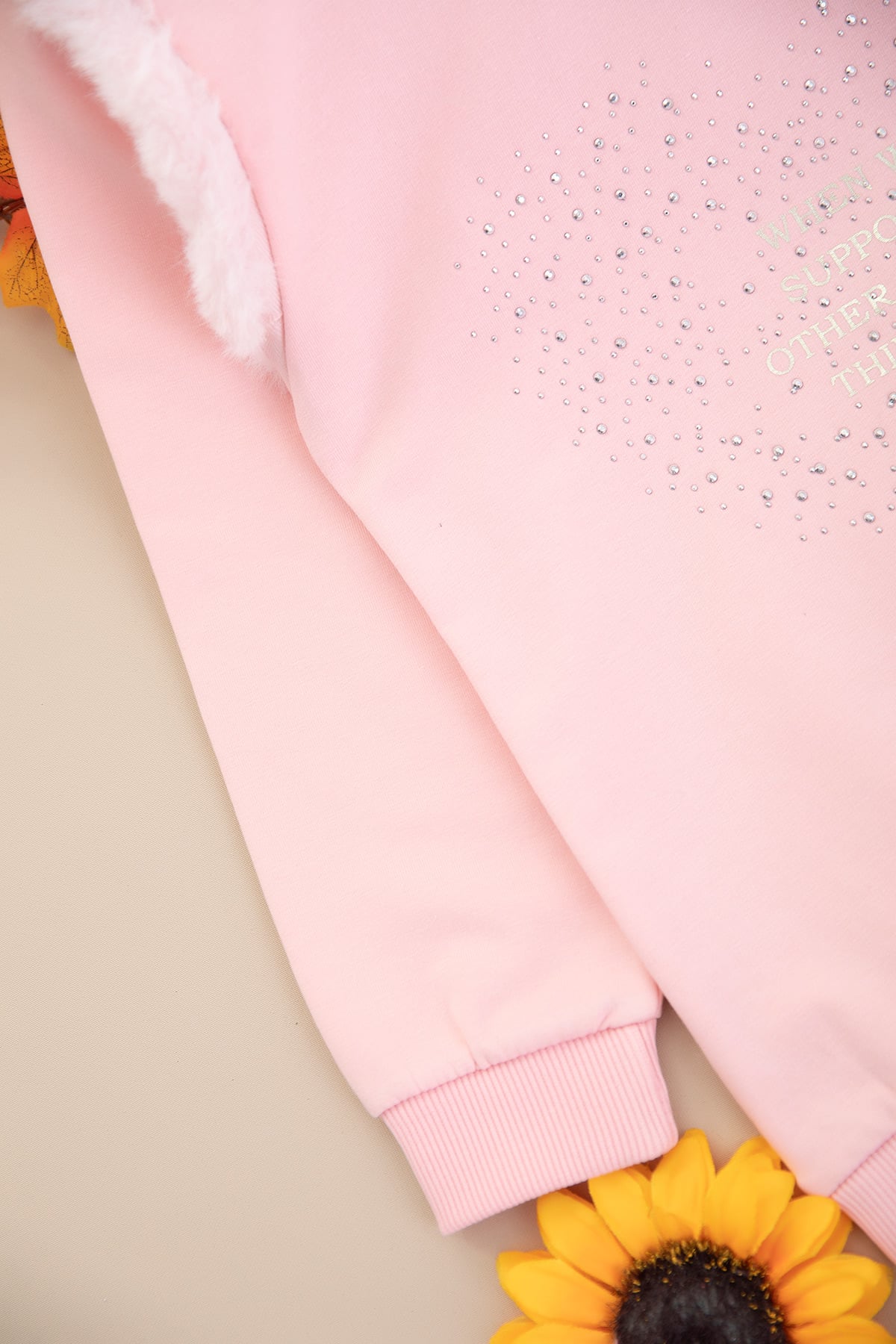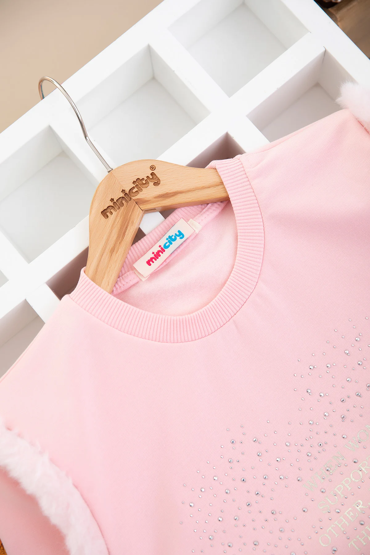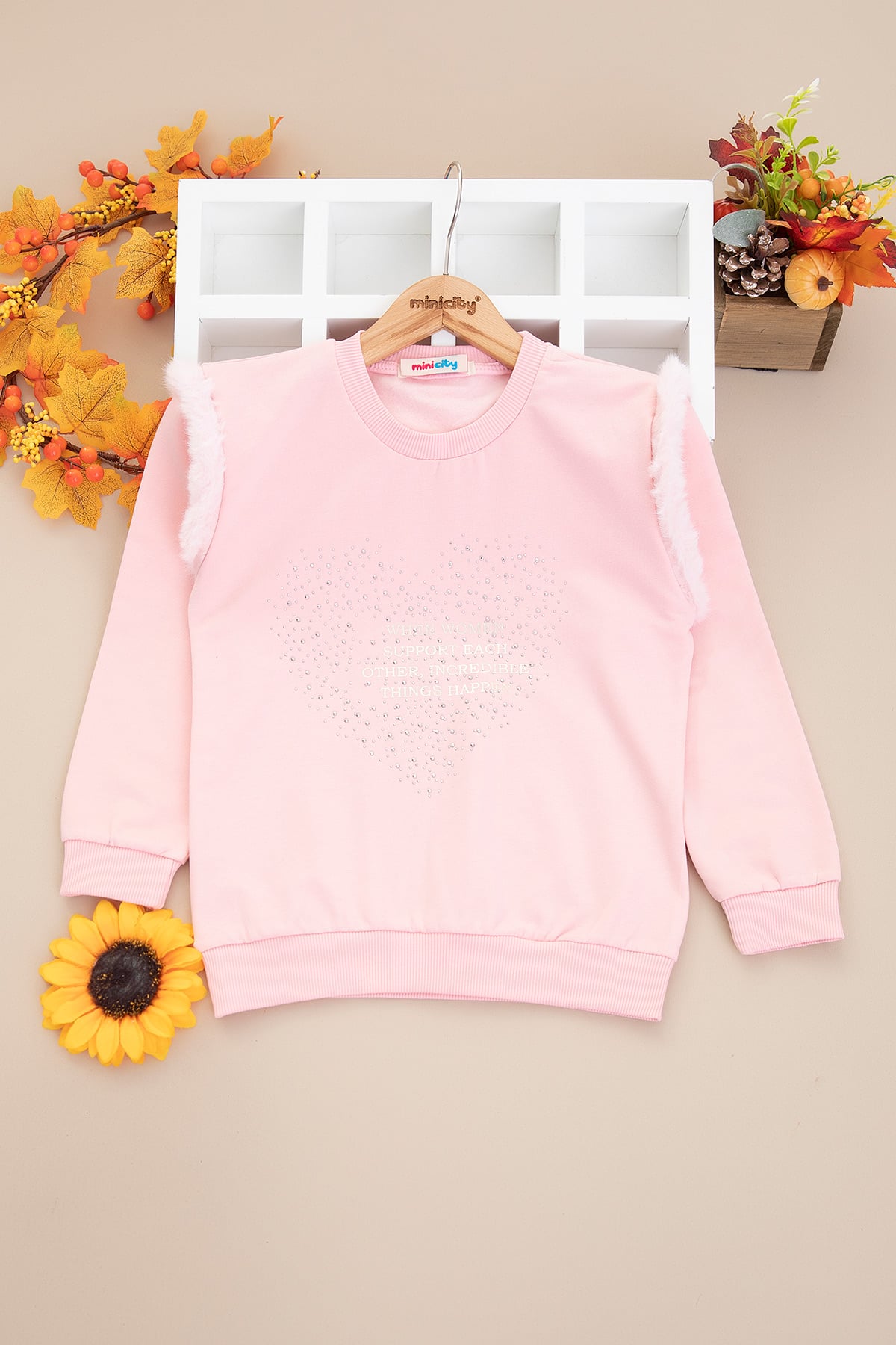 Kız Çocuk Yazı Varak Kalp Taşlı Sweat - 7639 (9-12 Yaş)