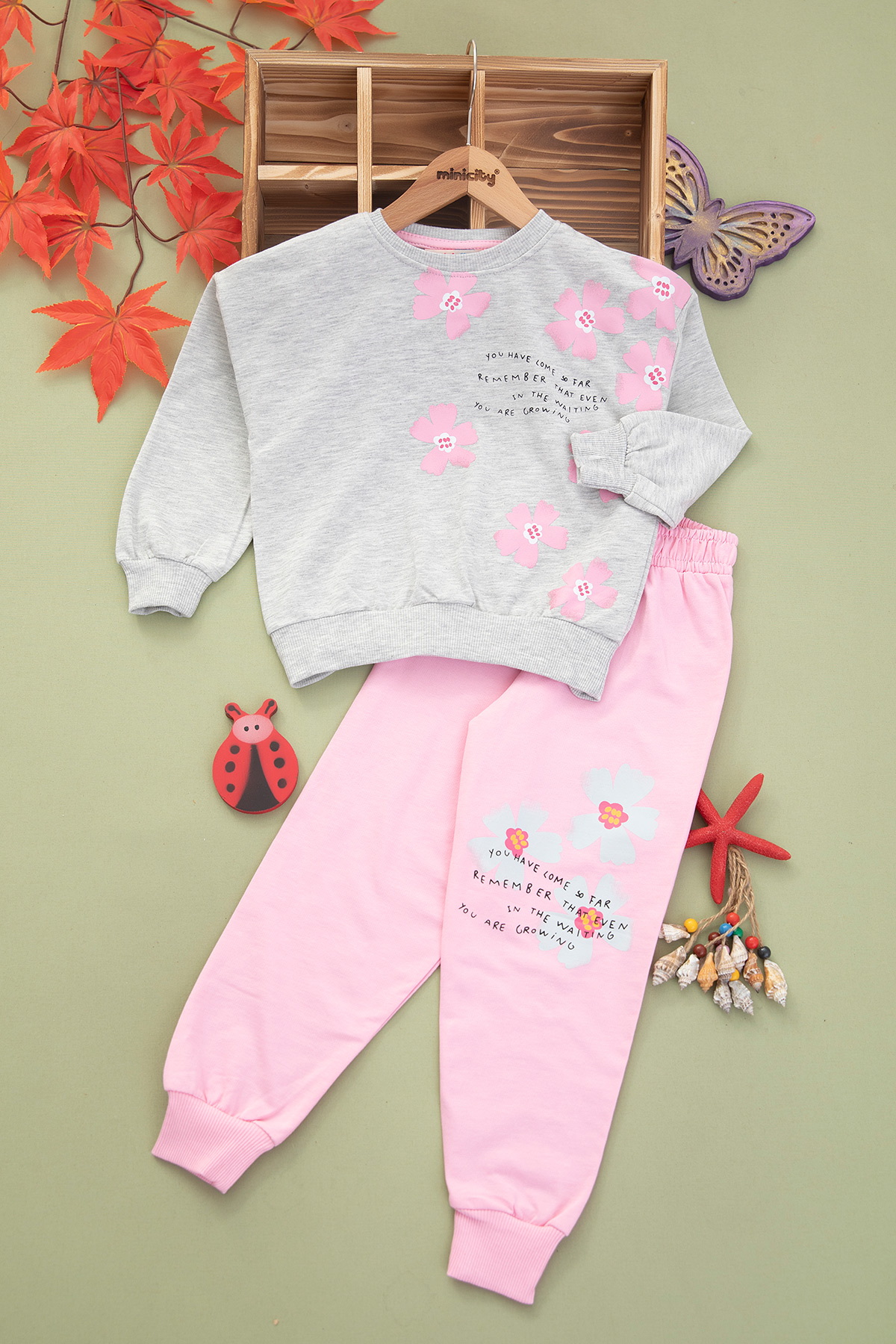 Kız Çocuk Yazı Ve Çiçek Baskılı Mevsimlik Takım (4-10 Yaş)