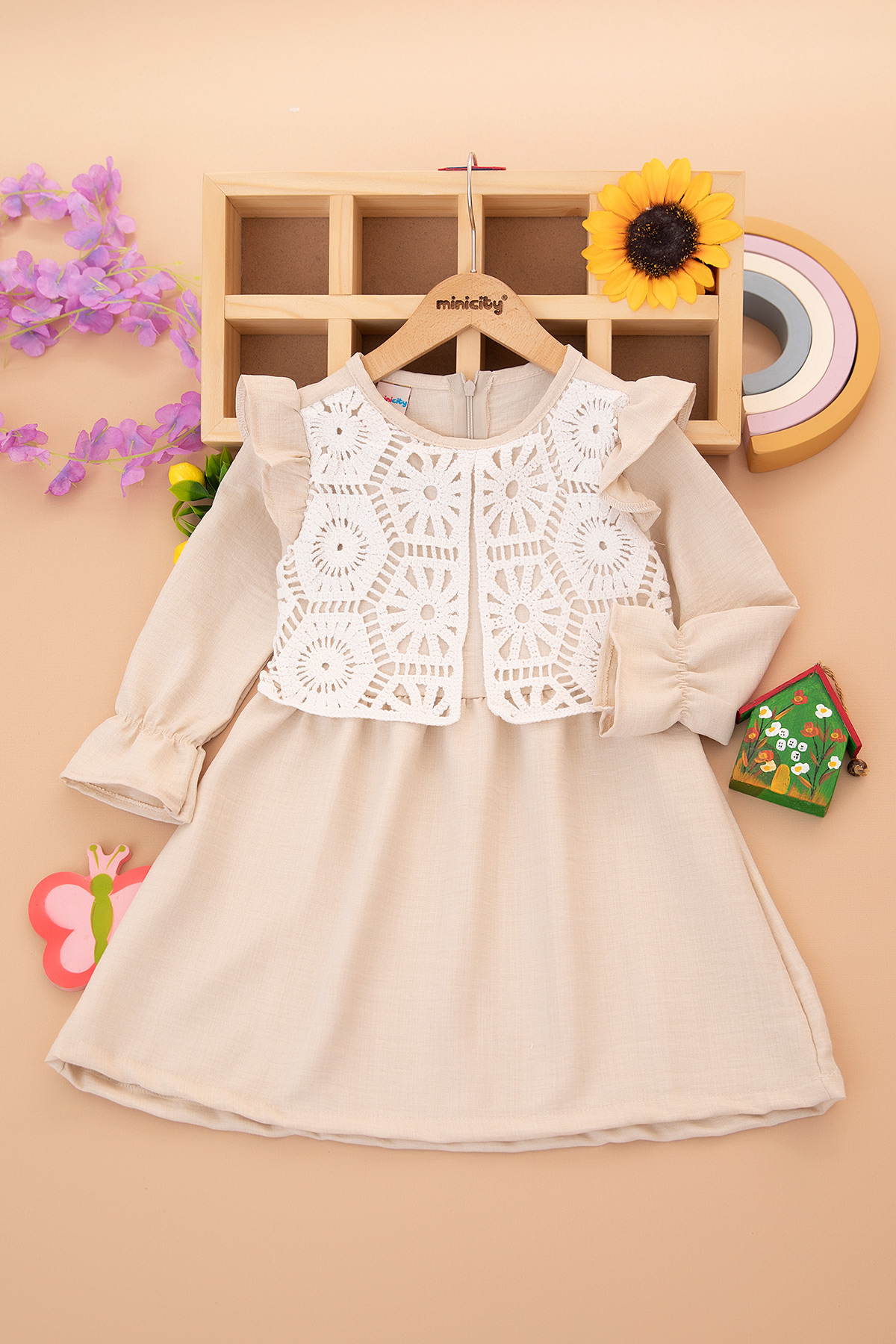 Kız Çocuk Yelek Süzene Nakışlı Elbise - 12025 (5-9 Yaş)