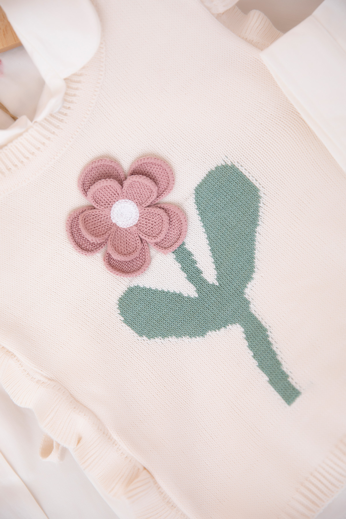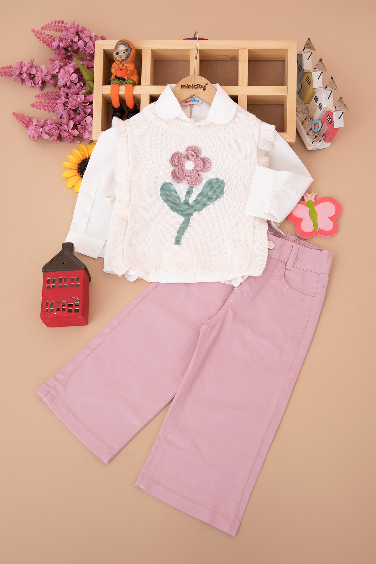 Kız Çocuk Yelekli Üçlü Takım - 4460 (6-9 Yaş)