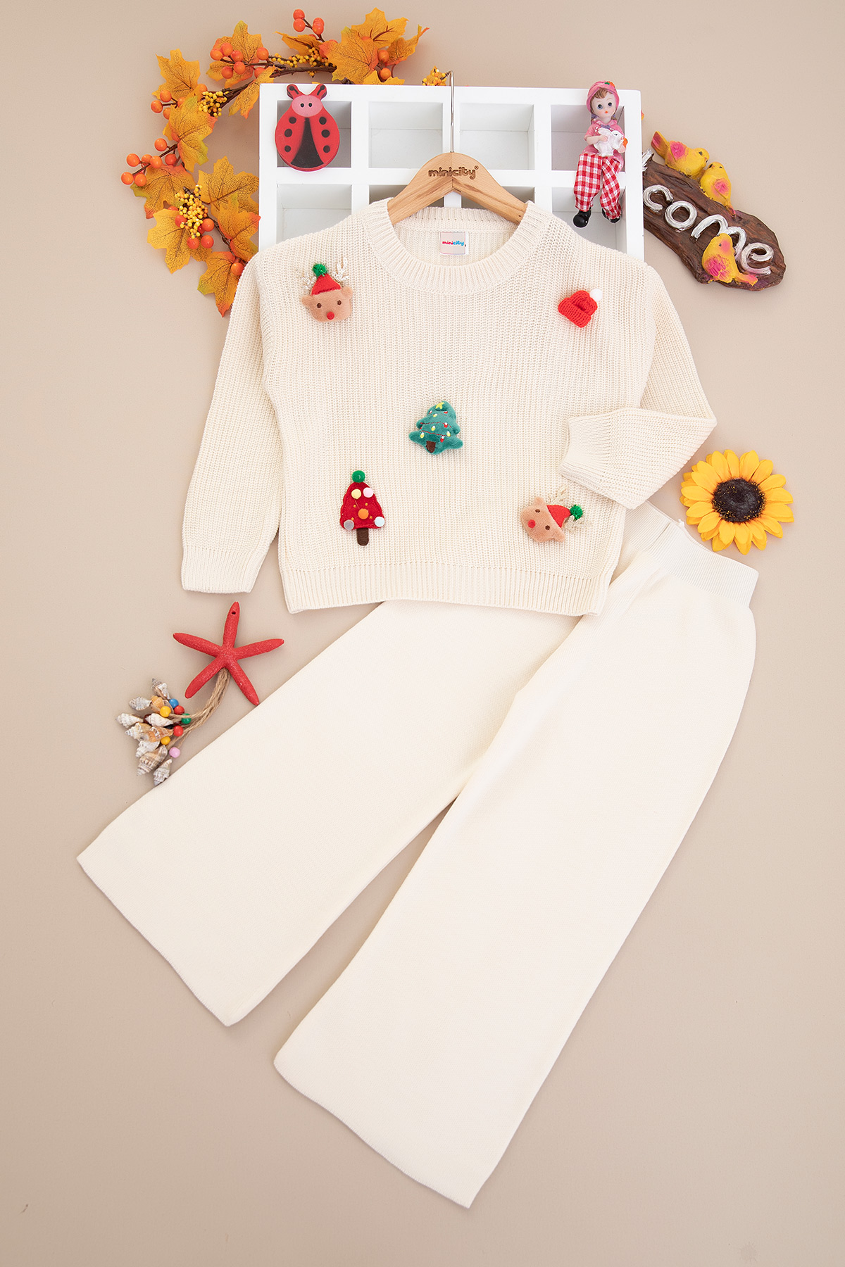 Kız Çocuk Yılbaşı Figürlü Triko Takım (3-10 Yaş)