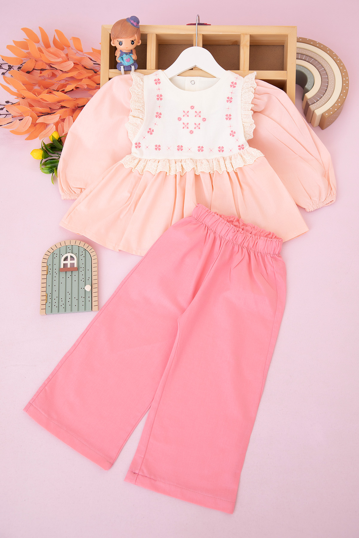 Kız Çocuk Yıldız Nakışlı Fistolu Takım - 3010 (2-6 Yaş)