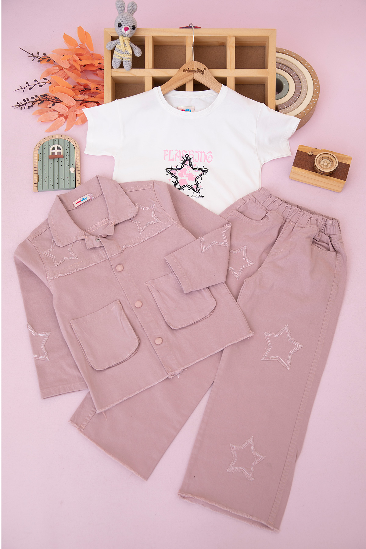 Kız Çocuk Yıldız Nakışlı Montlu Takım - 70705 (5-12 Yaş)