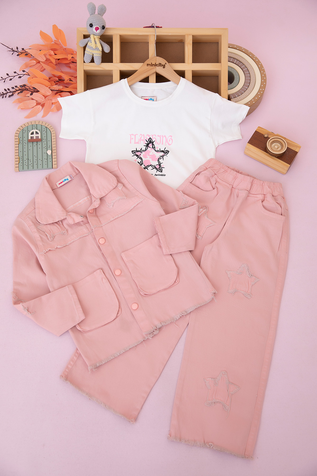 Kız Çocuk Yıldız Nakışlı Montlu Takım - 70705 (5-12 Yaş)