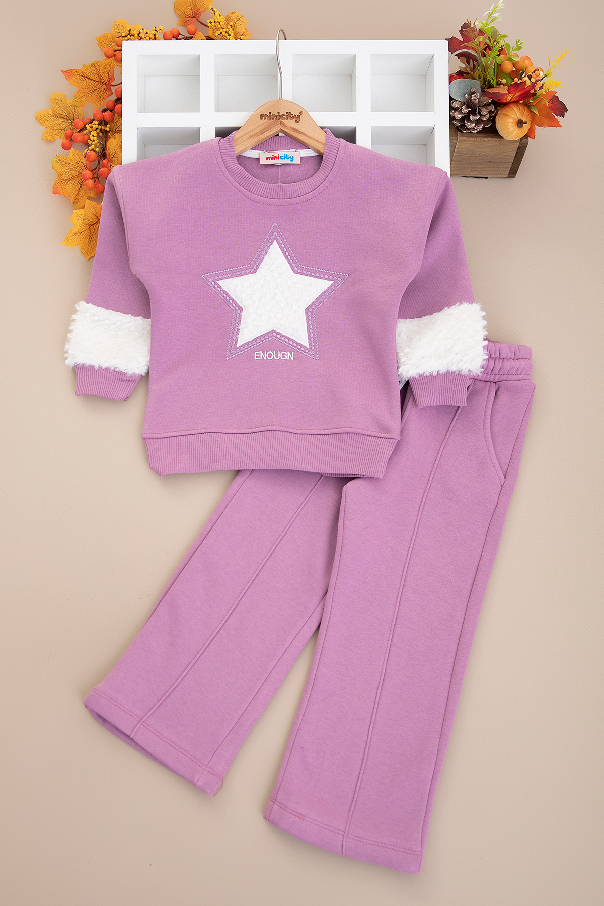 Kız Çocuk Yıldız Peluşlu Üçip Takım - 5071 (3-10 Yaş)