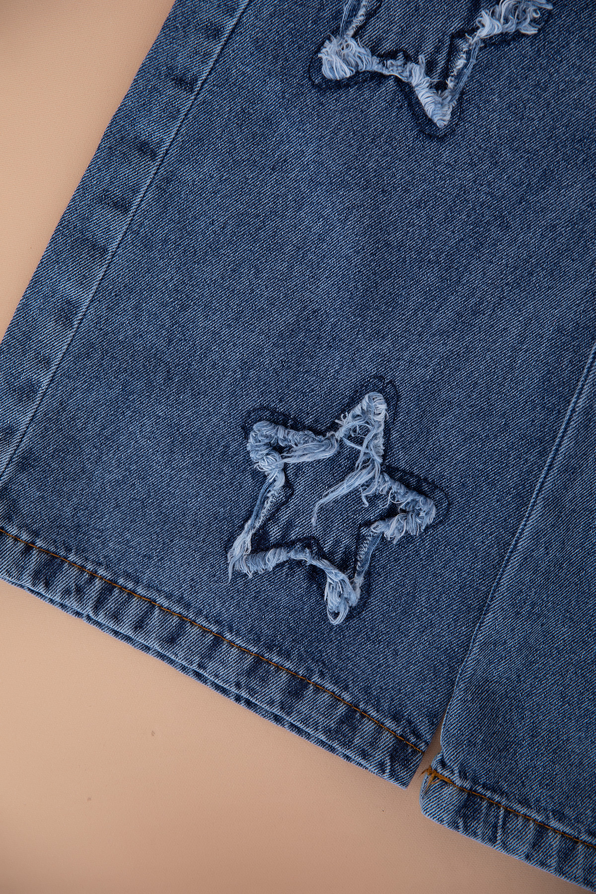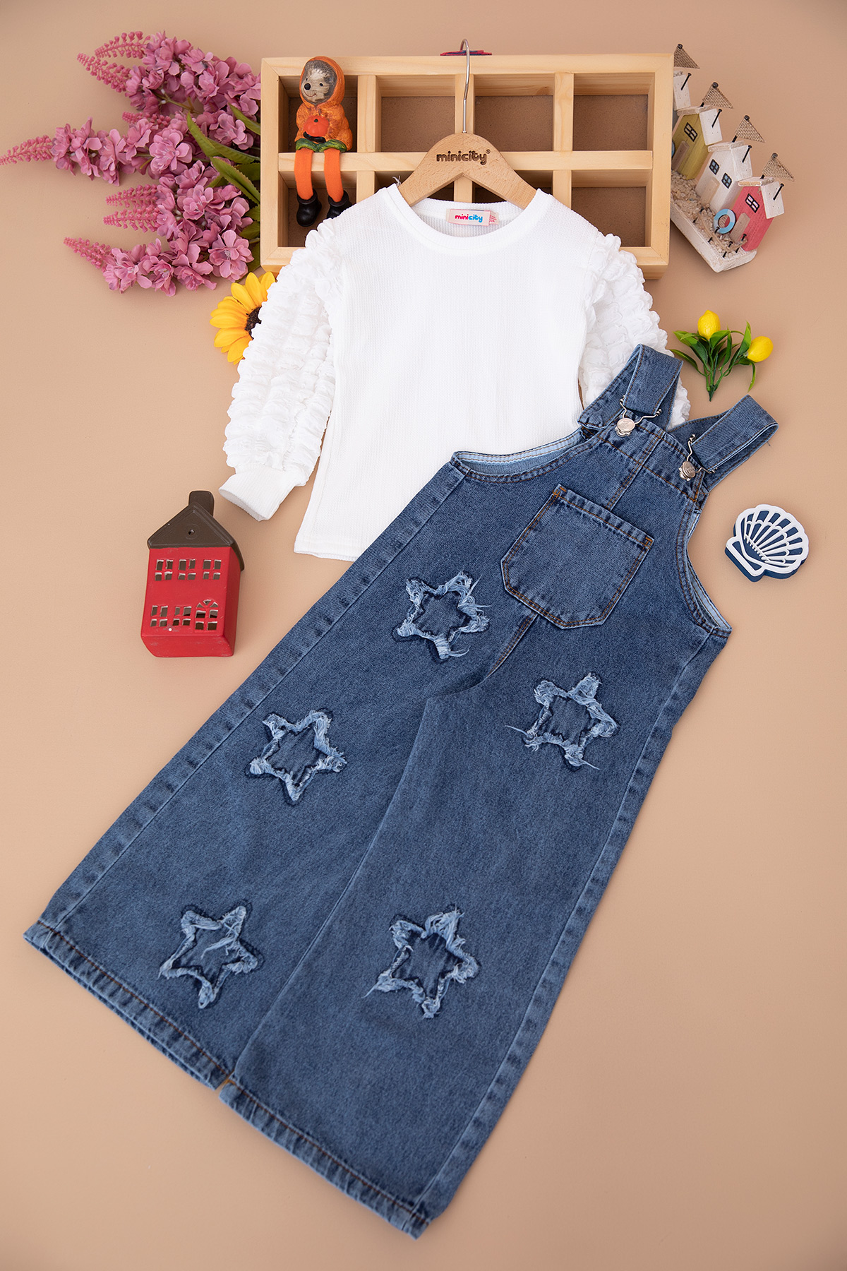 Kız Çocuk Yıldızlı Badili Kot Salopet - 2652 (3-7 Yaş)