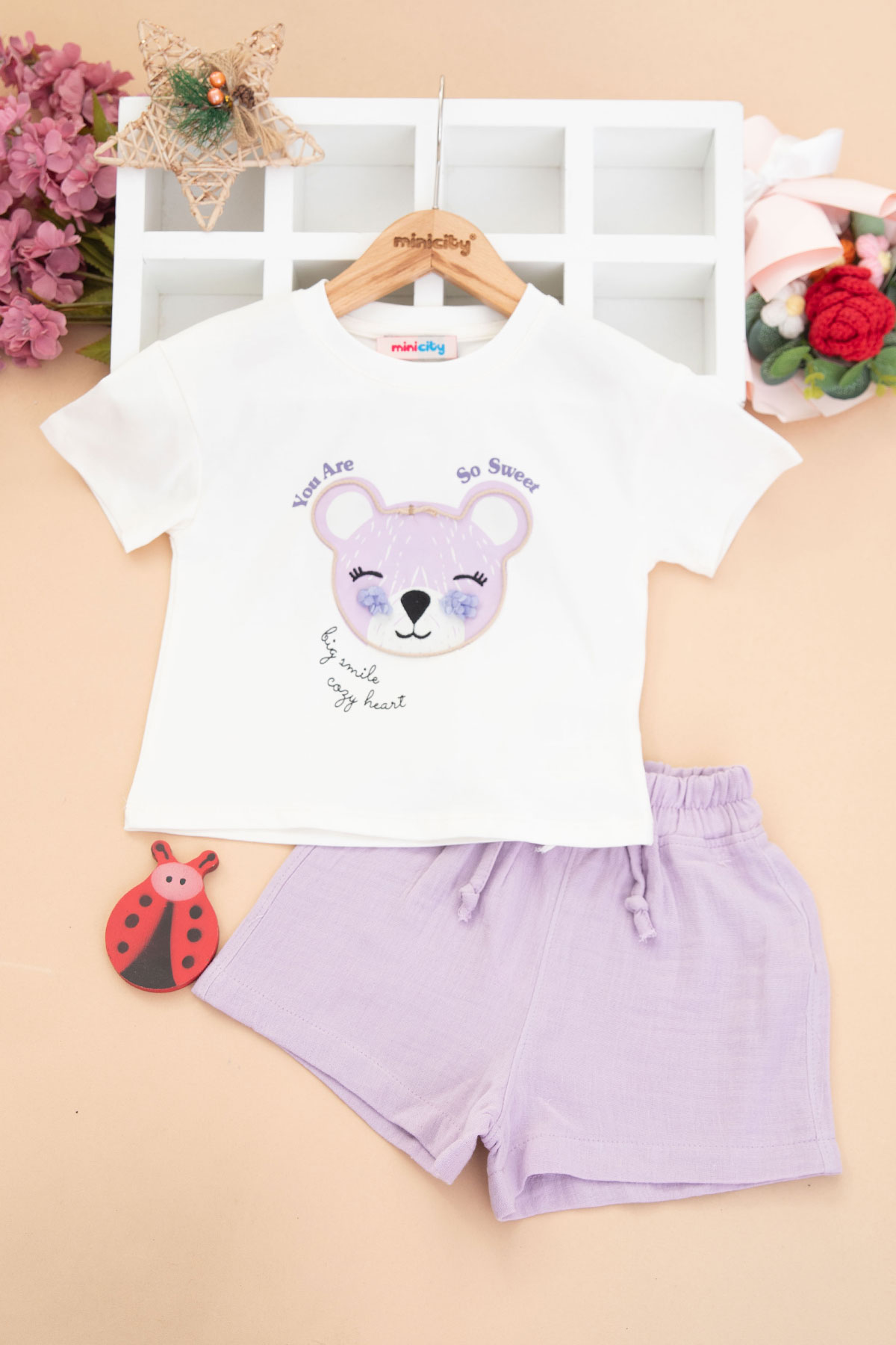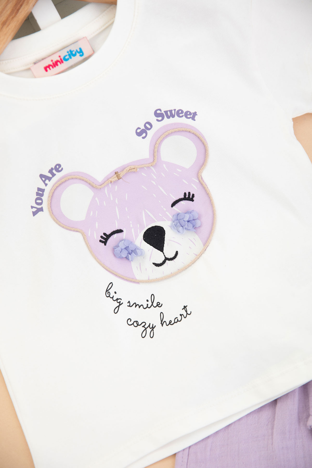 Kız Çocuk You Are Ayı Nakışlı Şortlu Takım - 5264482 (2-5 Yaş)