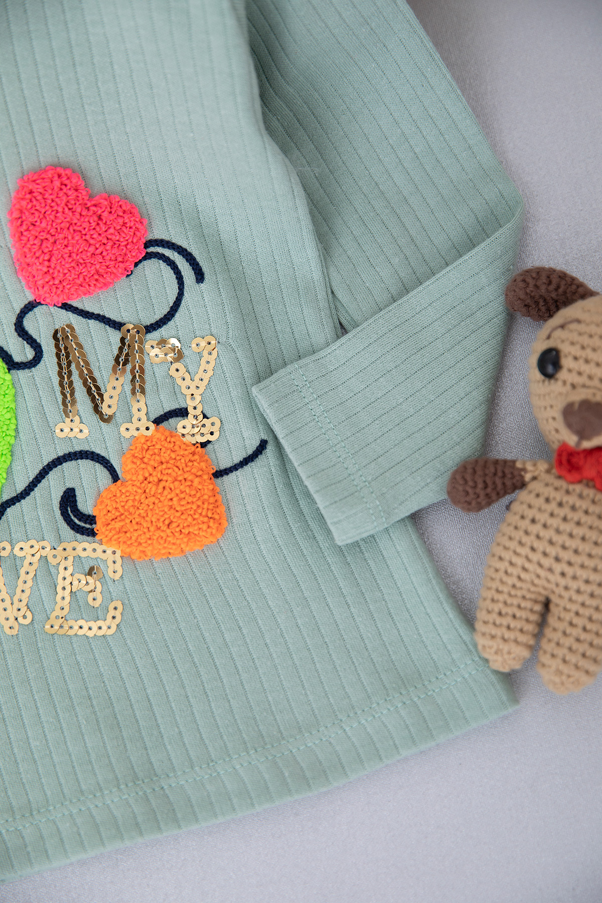 Kız Çocuk You My Love Nakışlı Body (3-7 Yaş)