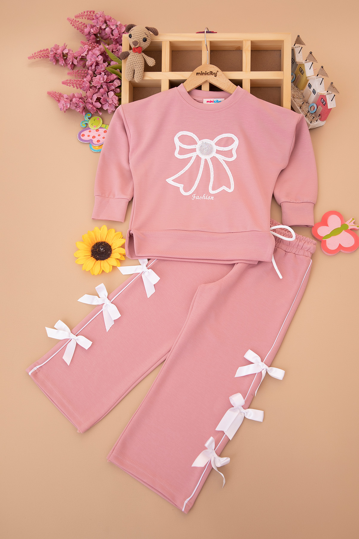 Kız Çocuk Zincir Fiyonk Nakışlı Takım - 5107 (4-11 Yaş)