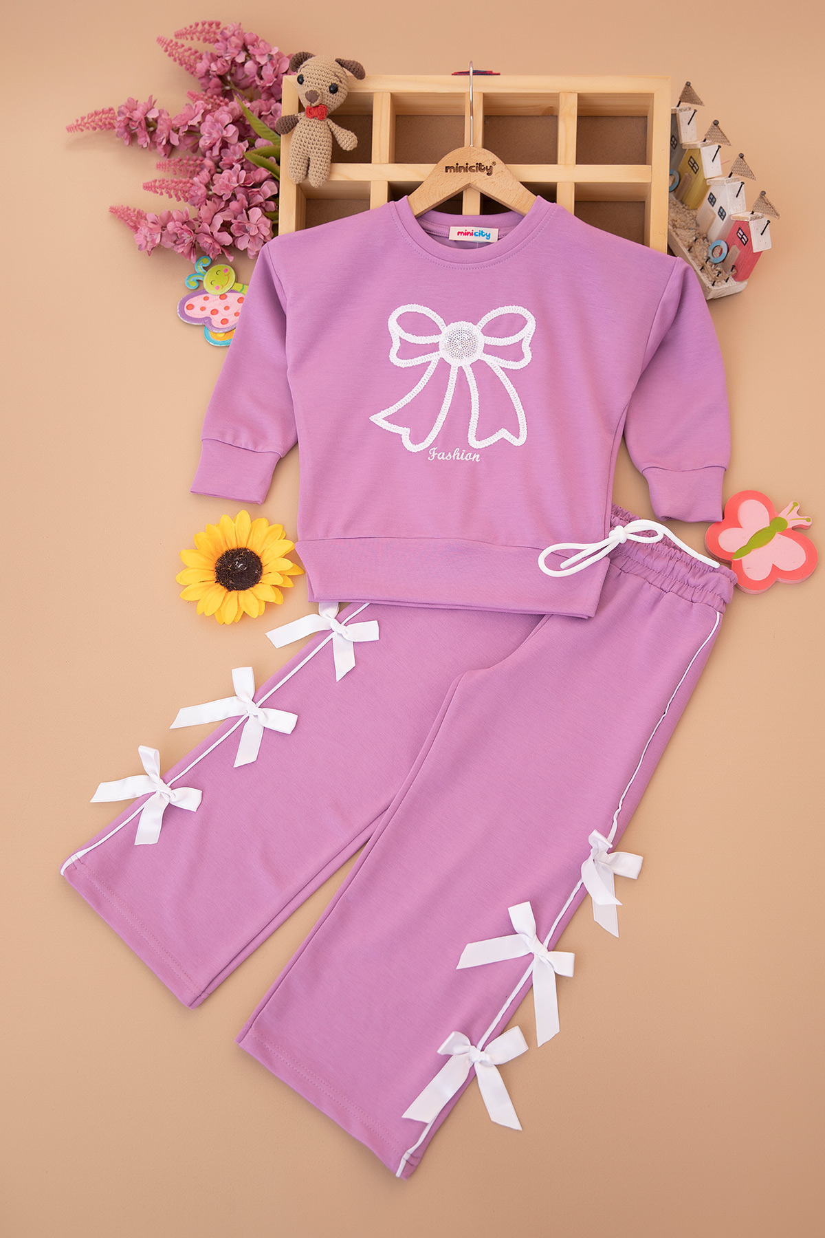 Kız Çocuk Zincir Fiyonk Nakışlı Takım - 5107 (4-11 Yaş)